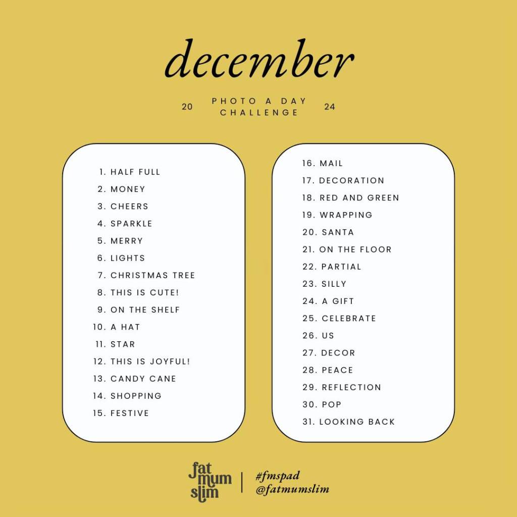 December…..the last month of the year! Here are the photos I chose to represent each of the Daily Photo Challenge Topics listed in the graphic above.
