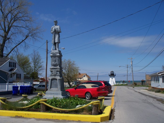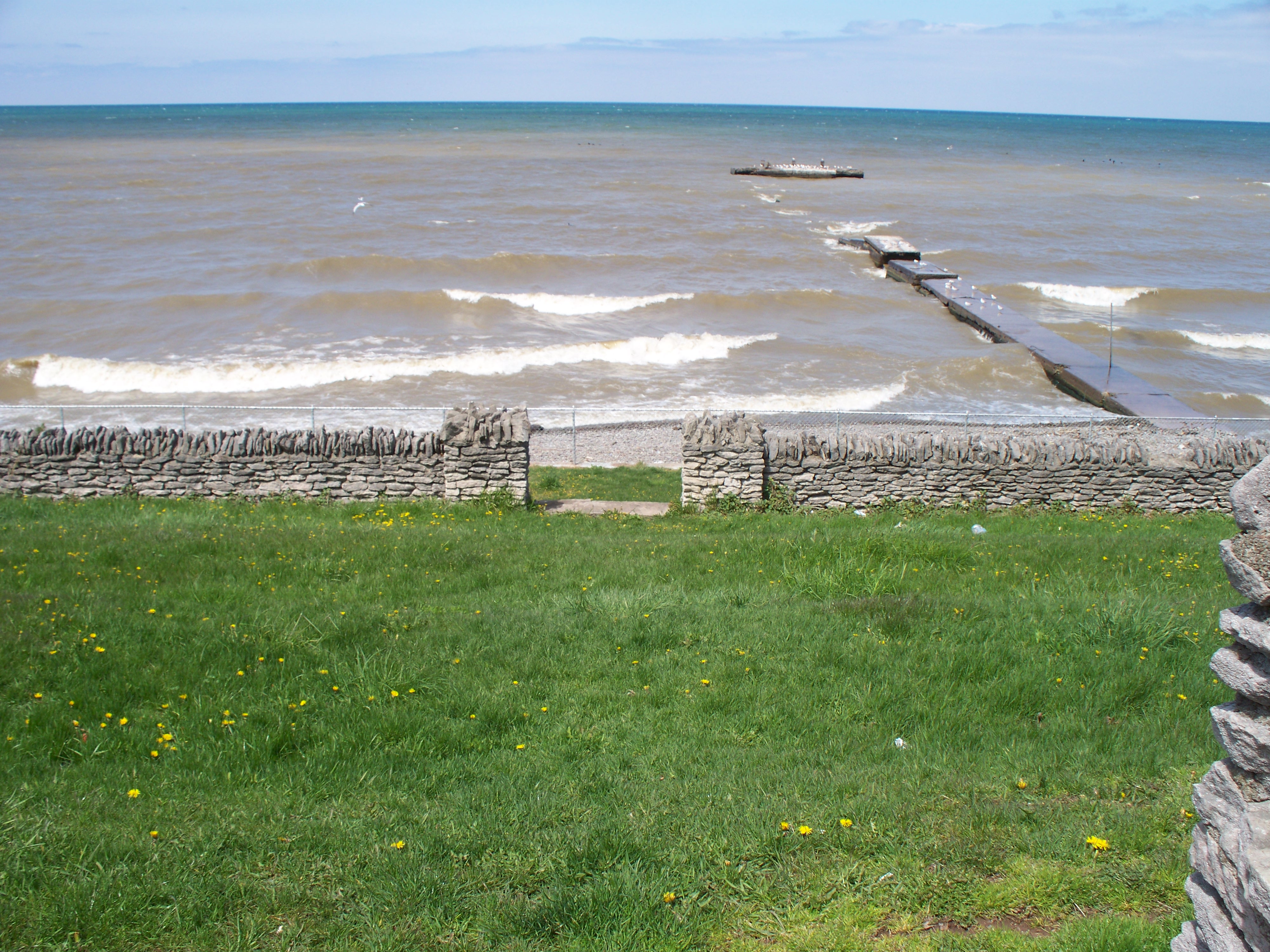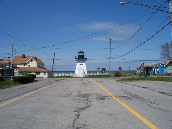 And then there is the lake! I talk a lot on here about how much I love Point Breeze, but there is a lot more to Lake Ontario to love! After all, it is one of the Great Lakes! Last week, I went to Newfane to the nursery that is doing the landscaping I’m having done. I went to pick out the trees and finalize the types of plants I wanted. Newfane is north of the Ridge towards the lake just inside Niagara County. If you take the road that goes through Newfane all the way to the lake, you run right into Olcott…and right into Lake Ontario, if you don’t stop when you’re supposed to. My Mom, my brother, and I used to go to Olcott a lot when I was little. It was so much fun – lots of rides and arcade games and hot dog stands and ice cream and, of course, the lake! So, when I was done at the nursery, I went on down to Olcott to look around. It was very quiet – not the busy place it tends to be in the summer season, but there were several crews hard at work getting things ready for the visitors that will soon be making their way down there. Building exteriors were being painted, streets were being cleaned, landscapers were sprucing up all around, and other odds and ends were being taken care of. It was a fairly warm day, but very windy and it had rained the night before, so the lake was rough and churned up – but it was still a joy to see.