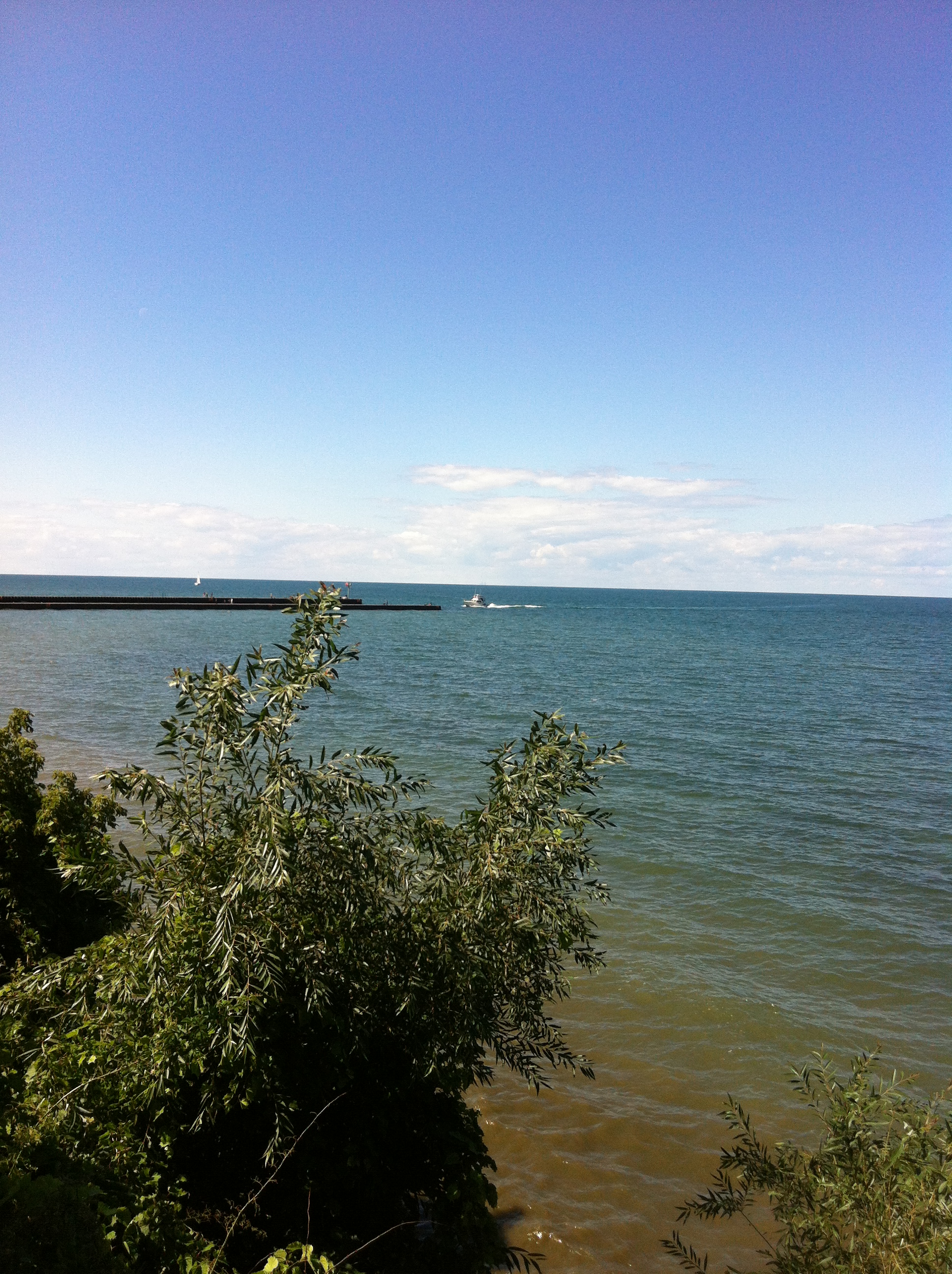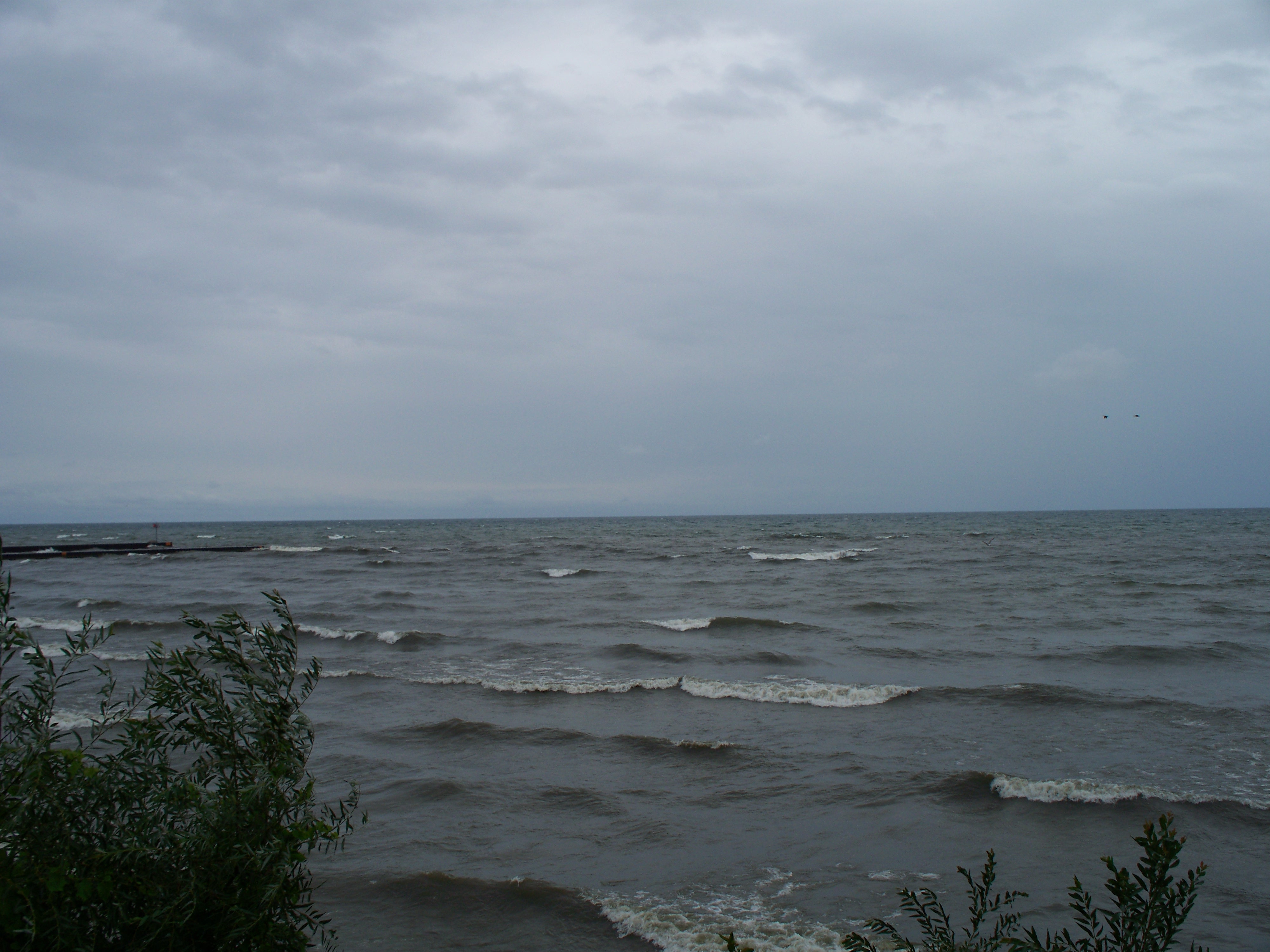 So, that brings us to today — the third of the big adventures! I got up and went to church – it was a lovely service – we had a farewell reception for a gentleman who has been a life long member of our church for almost 93 years and is moving away to be near his children. It was also the first day of Sunday School – the adult class I joined is reading and discussing 90 Minutes in Heaven by Don Piper. After church, I decided to go back to Olcott Beach to finish the shopping I had planned to do yesterday, but the weather kinda put a wrench in that plan. Today was a much nicer day! The warm sun mixed perfectly with the cool breeze coming off the lake. The lake was calm and the sky was beautiful! And the shoppes were all open!!! I strolled through the shoppes and found a gorgeous handmade necklace and earring set from VacantiArts and a pretty stone ring at another shop. I sat on the boardwalk looking out onto the lake and watching the boats for a while – just loving being near the water. Then, I went to Mariner’s Landing for a late lunch/early dinner. I had a shrimp cocktail, which was perfect – the shrimp were huge and plump and delicious! I also had a very nice salad and they brought me a small loaf of fresh, hot bread that was so dense and yeasty – YUM! For my entrée I chose the broiled scallops with mashed potatoes. If a chef is not careful, they can ruin scallops in a split second — just a hair too long on the heat and they can be rubbery and chewy! These were done to perfection — amazing and scrumptious!!! I strolled around a little longer and then headed back home, where I curled up with the girls for a little nap! Another absolutely perfect day! Here are some photos I took today to show the contrast of the two days – what a difference a day makes!