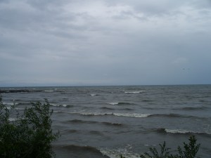 I left Marjim Manor and headed to Olcott Beach. Unfortunately, only one shop was open – I thought it was due to the weather, but later discovered it was because I was too early – the shoppes don’t open until noon. It was a little chilly and very damp, so I looked through the one shop, found a couple nice pins, and headed back home. I got home in time to whip up a batch of baked macaroni and cheese to take to the pot luck family dinner at the church to wrap up the day. Here are a couple of photos I took at Olcott showing how rough the lake was and how dark and damp the day was. But, I still enjoyed myself – it was a great day – I discovered a unique winery, tasted some amazing wines, and it is always a great pleasure to be near the lake, no matter what the weather is!