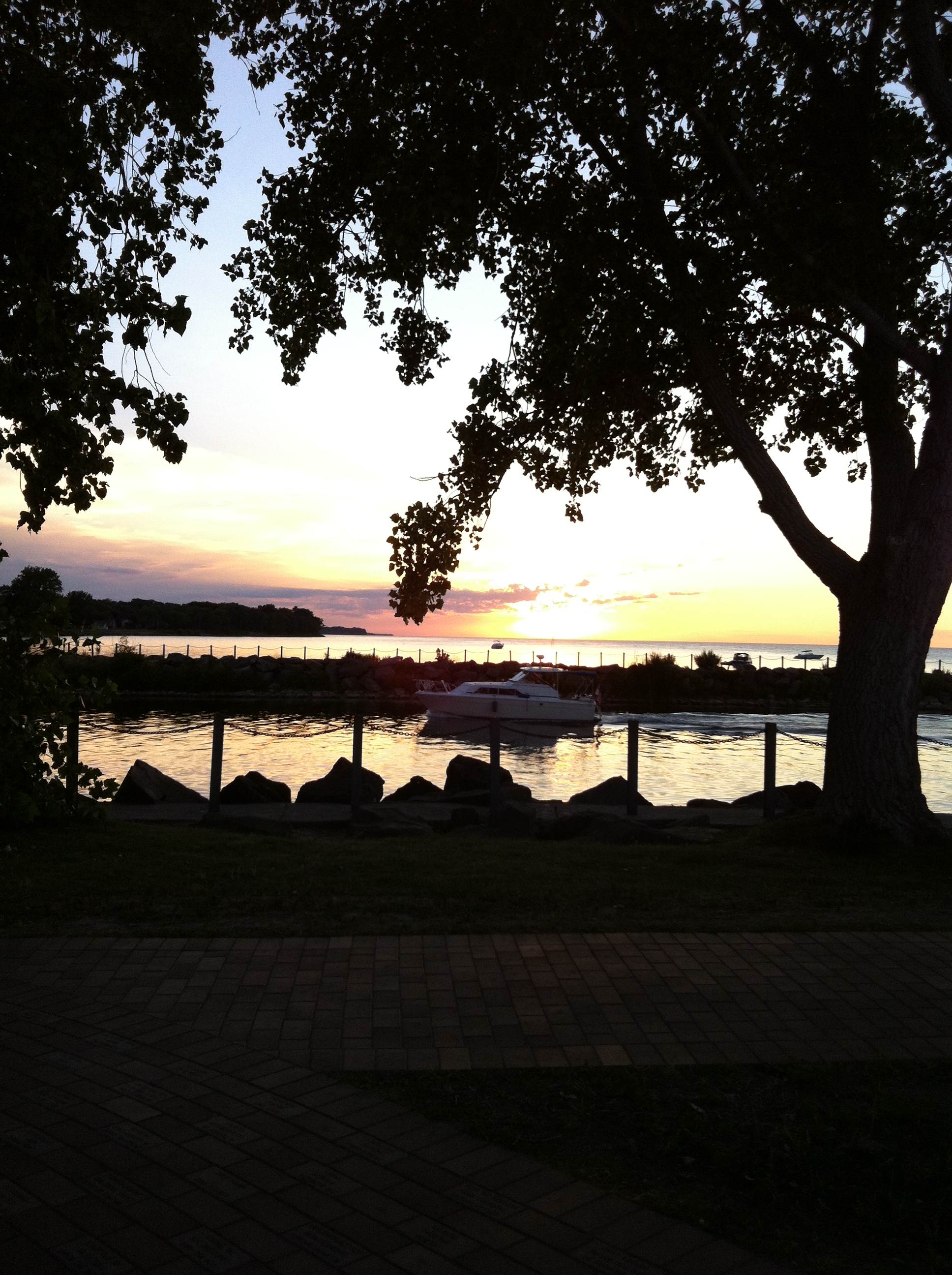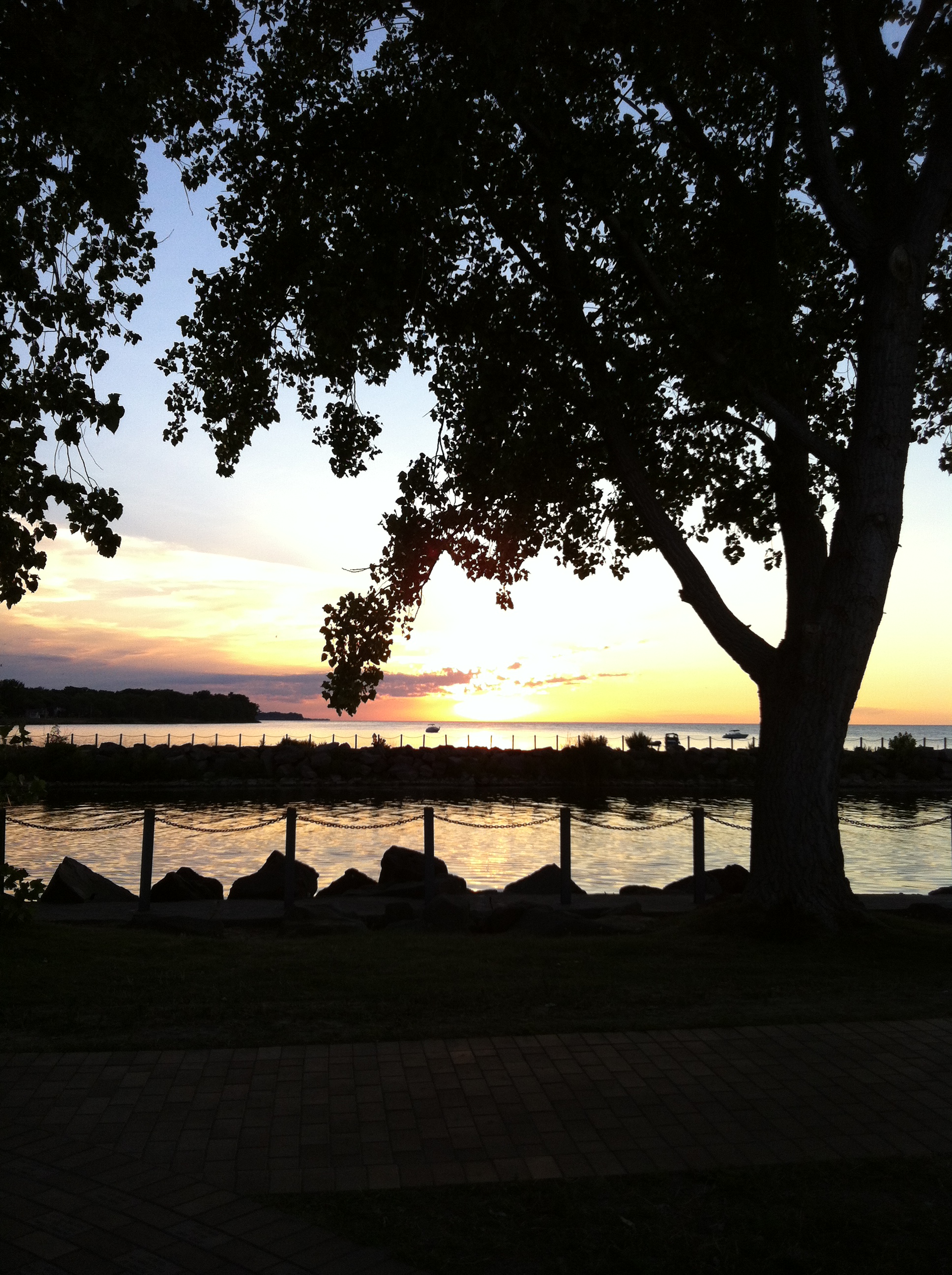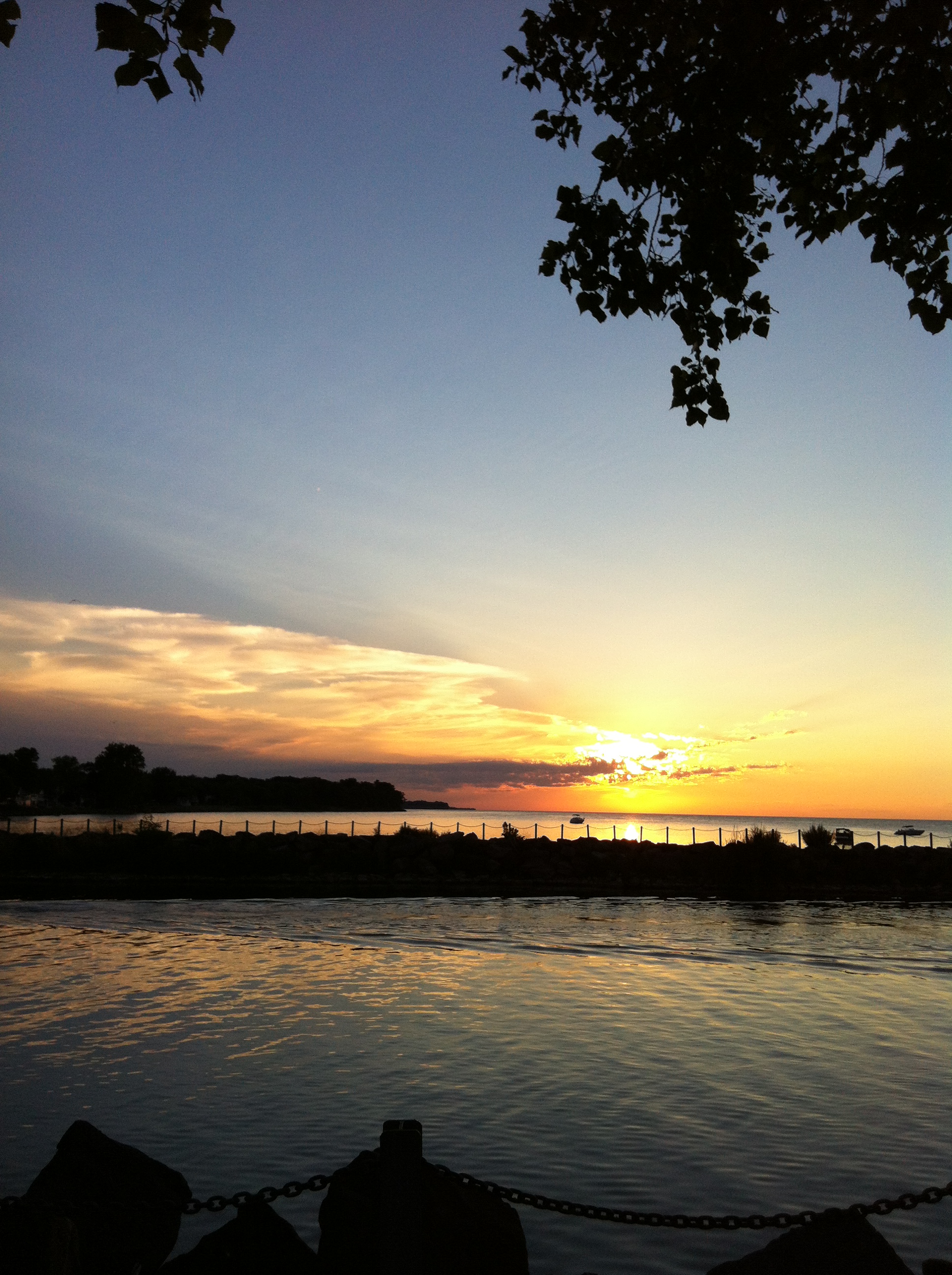 Leonard Oakes Estate Winery is just up the Ridge from here a little way — maybe 15 minutes or so from my house. So, I wasn’t too far away when I left. It was still early and it was a glorious evening – warm and sunny, so I had the top down on the pony. I decided to take a leisurely drive north through Lyndonville and pick up Route 18 to Point Breeze to watch the sun set over the lake. And what a gorgeous sunset it was — an amazing ending to the day! I sat there watching people fishing and the boats coming in and just enjoying the incredible sun set! What a treat!