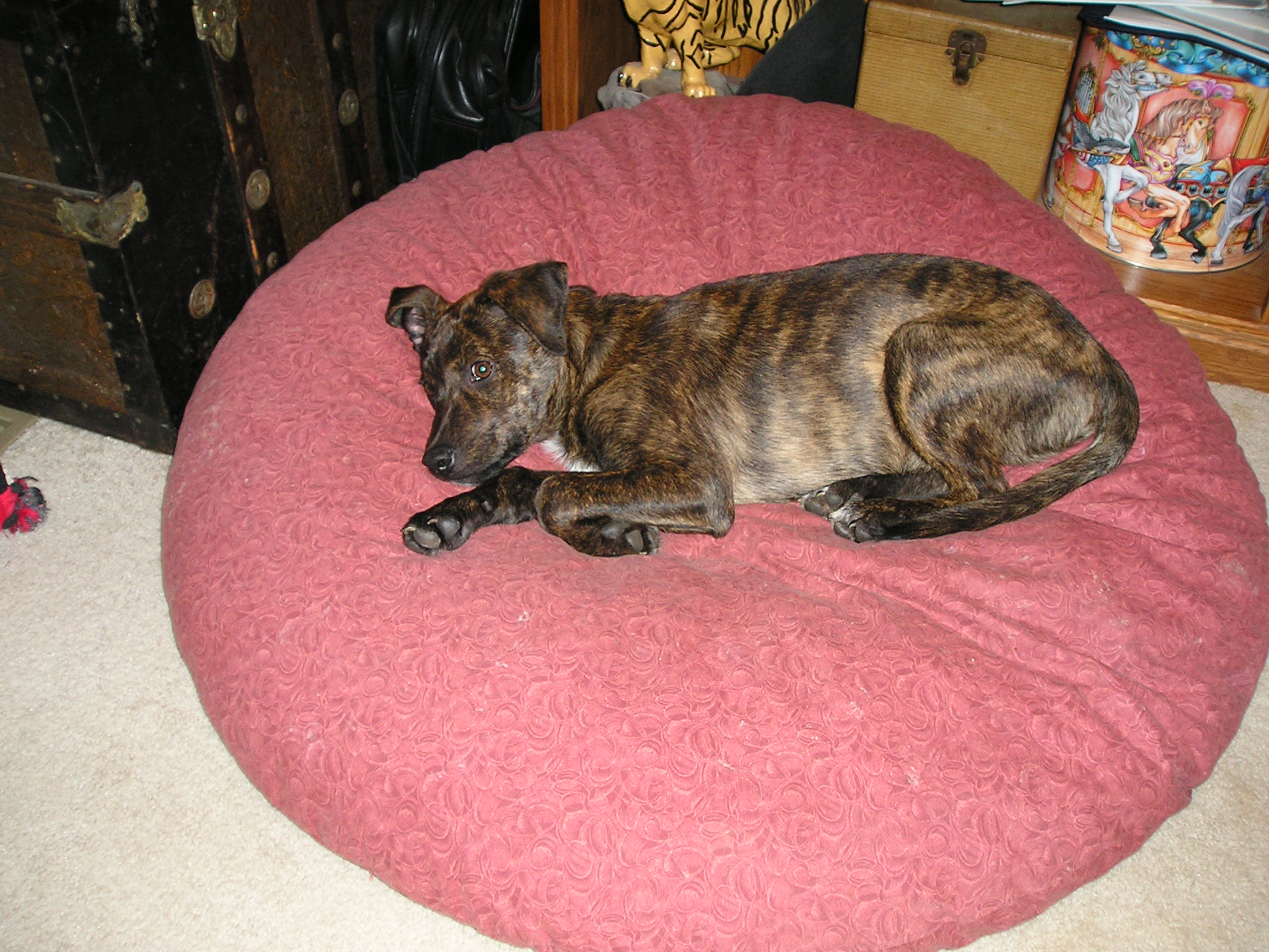 Megan – the precocious one! I can understand why people think I only talk about her — she gives me the most to talk about!!! She has the biggest personality and is the most curious and adventurous! She is into EVERYTHING – cunning, sneaky, and very imaginative! Everything she sees ends up in her mouth! She has eaten me out of house and home – literally – up until about a year ago, I was replacing furniture, rugs, pillows, sheets, blankets, comforters, cushions, etc…..over and over again! I was beginning to think I would never have anything nice in my house again! She has outgrown eating furniture and accessories, but still gets into things she shouldn’t and is amazingly good at finding and getting at stuff in the darndest places. All this results in her being terribly accident prone – she is always getting into stuff that gets her hurt! Luckily, most of the time it doesn’t involve the need for vet care – but, unluckily, often it DOES! I worry a lot about her eating something that is going to cause a major problem – hurt her really bad and cost me a lot of money to fix her up!!! She is very protective of me and devoted – not that the other’s aren’t, but it is so much more so with her! I have to be more careful of her in social situations — she loves people, but other dogs that come near me put her on alert and I need to be on alert to control the situation. She does really well at Rae-Zor with other dogs – plays and gets along just fine, but I’m not there for her to need to protect me. She also gets really scared and clingy when out of her comfort zone. She was the one that needed more attention to get her to trust me and people in general — once she realized people were good, she was fine and loves all people, but it took a lot of work! I’m sure that’s why she is more protective and devoted than the others — she was more dependant on me when she first came here and I worked more with her.