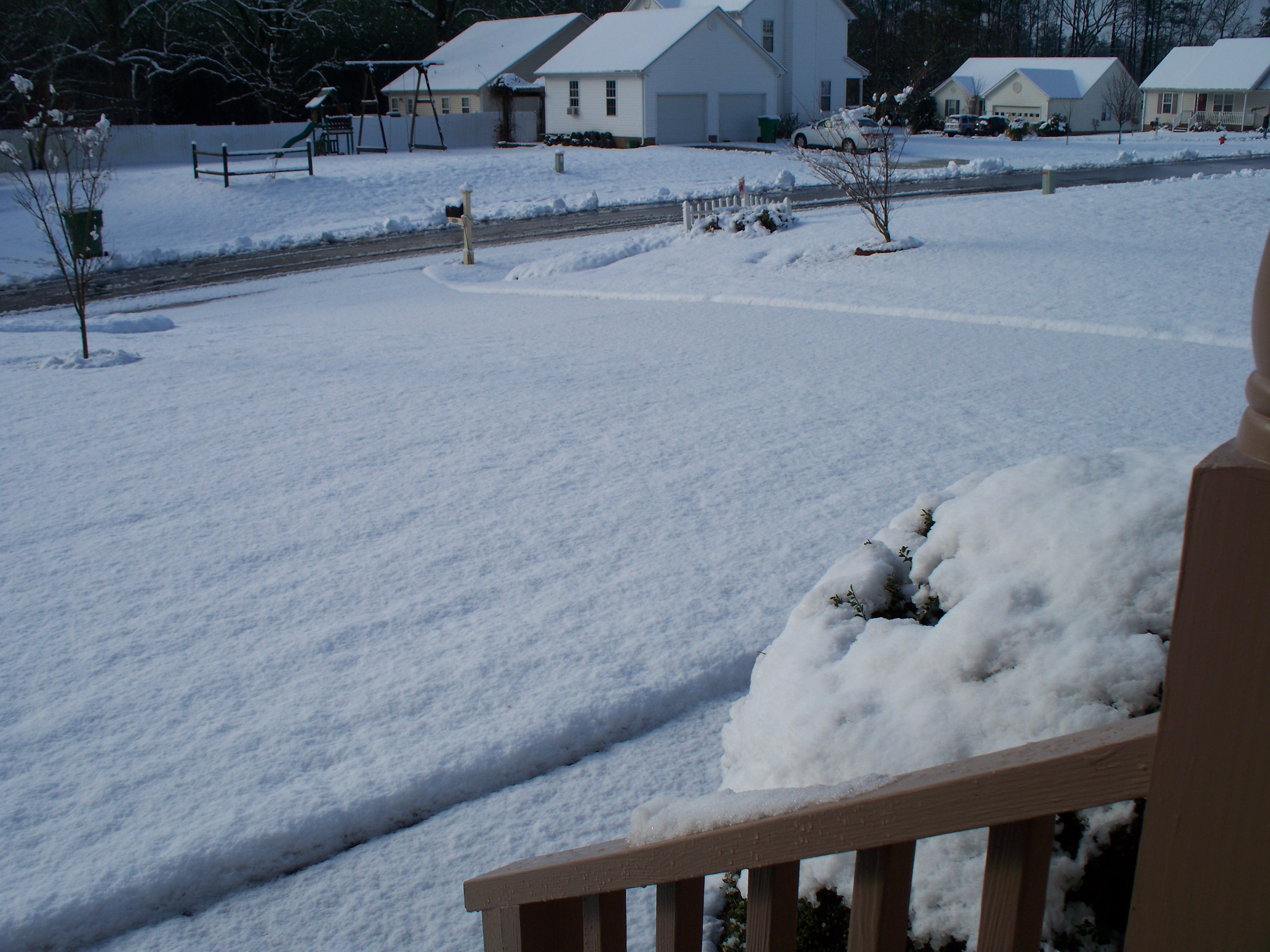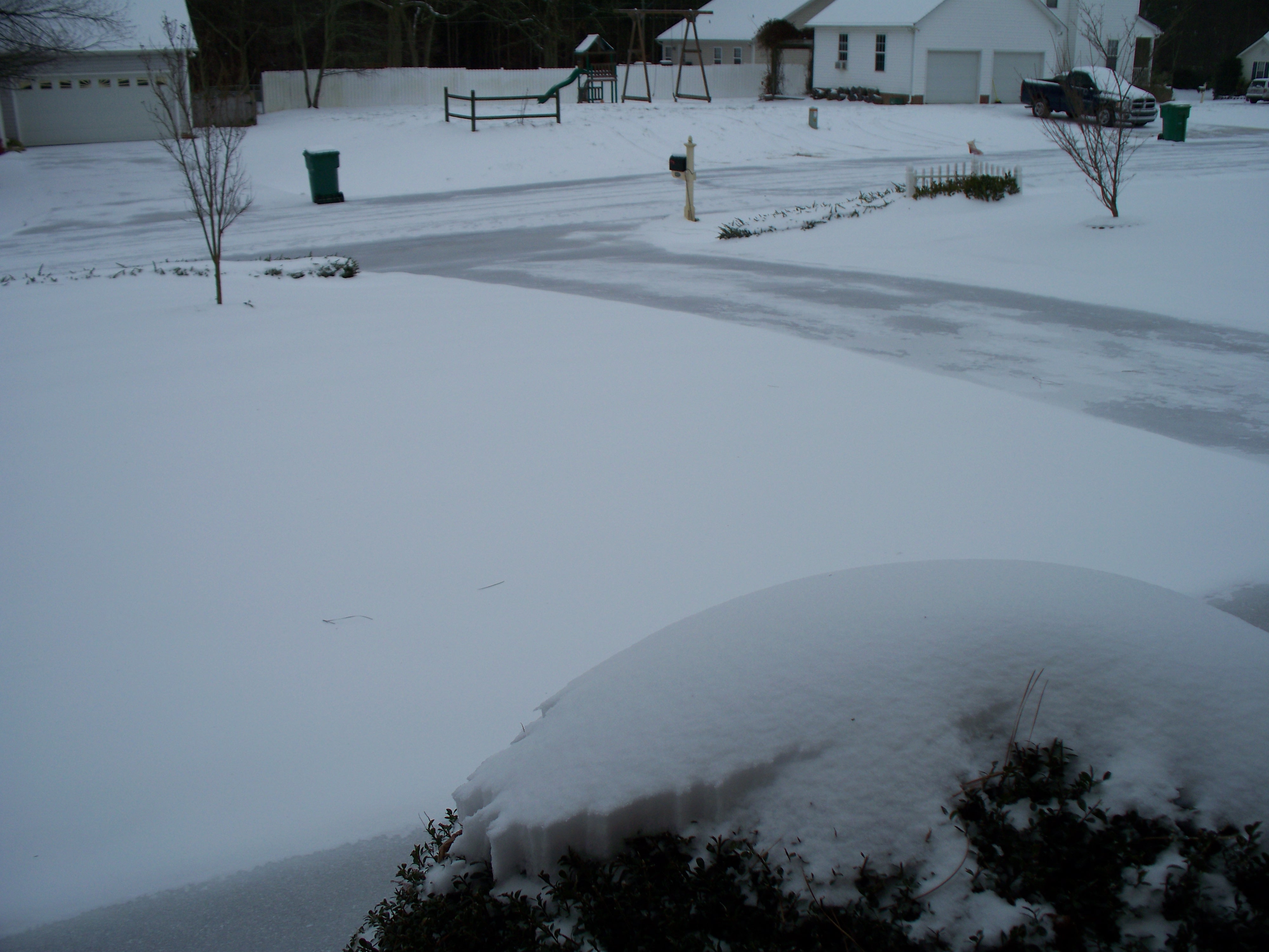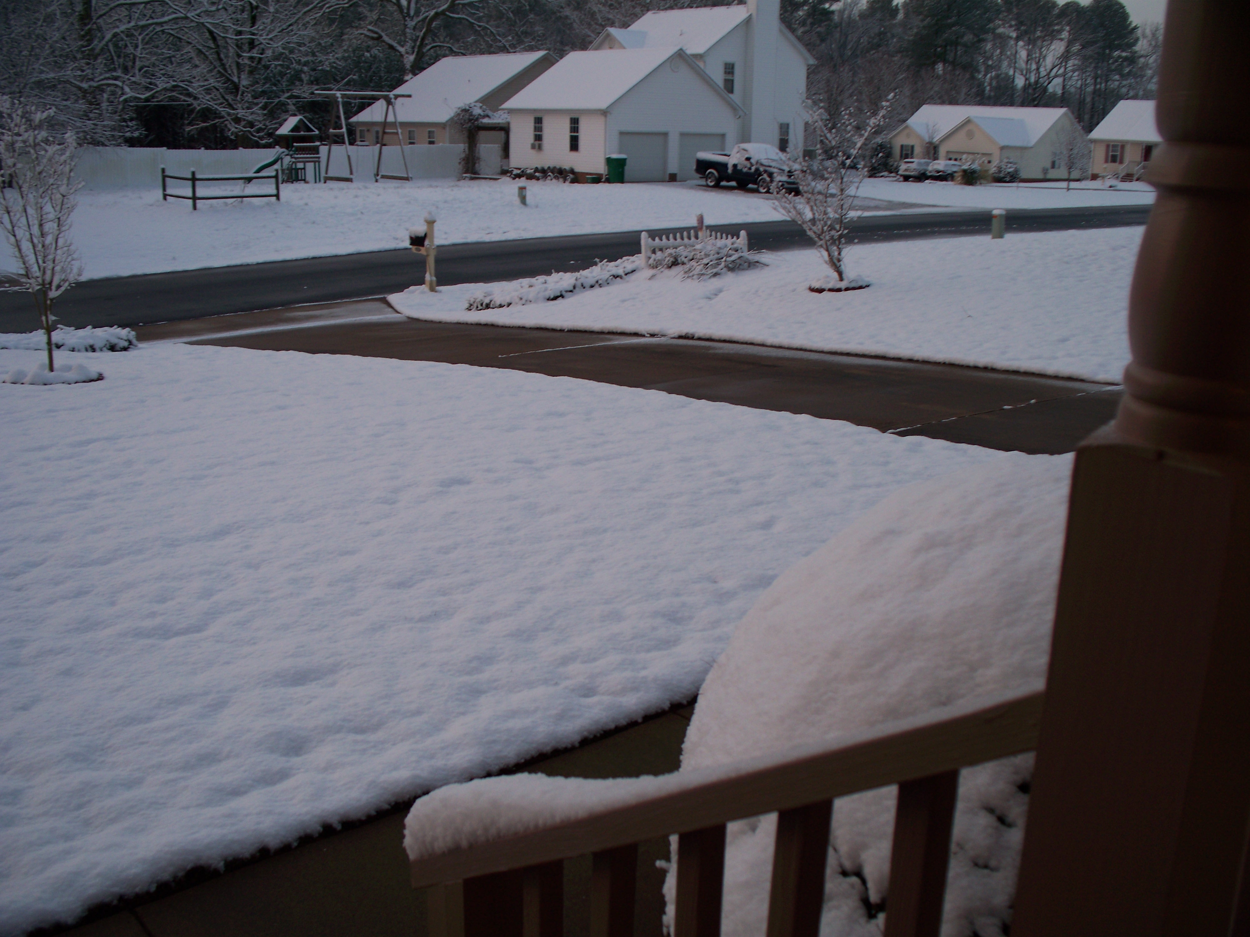 First — the most recent update is that WINTER is STILL attacking Sanford, NC! We typically get one sign of snow a year – sometimes barely noticable, sometimes quite problematic, always a source of great excitement for the area. We usually get more ice and winter mixes than actual snow. This year – the first since I moved here in 1985 – we had three major snow events and a couple more minor showings. If I kept count accurately, there were five instances of snow in some capacity since January, 2010! So – January, February, and March all had a major snow event. March? Seriously? This is the time of year I’m usually tormenting my northern friends with emails about how spring is starting to show up! Here are some pictures depicting the 2010 winter season in Sanford, so far…. This is the same shot taken of all three snow days. The first was in January – we got a heavy mix of snow and ice – my driveway was a thick sheet of ice! The middle was in February – it came down light and fluffy, didn’t stick on the pavement, and was gone by mid-day! The last was March – today, in fact – it is very wet and heavy and completely covered everything, but is already melting away! I didn’t get as much as parts of the county west of me, though!