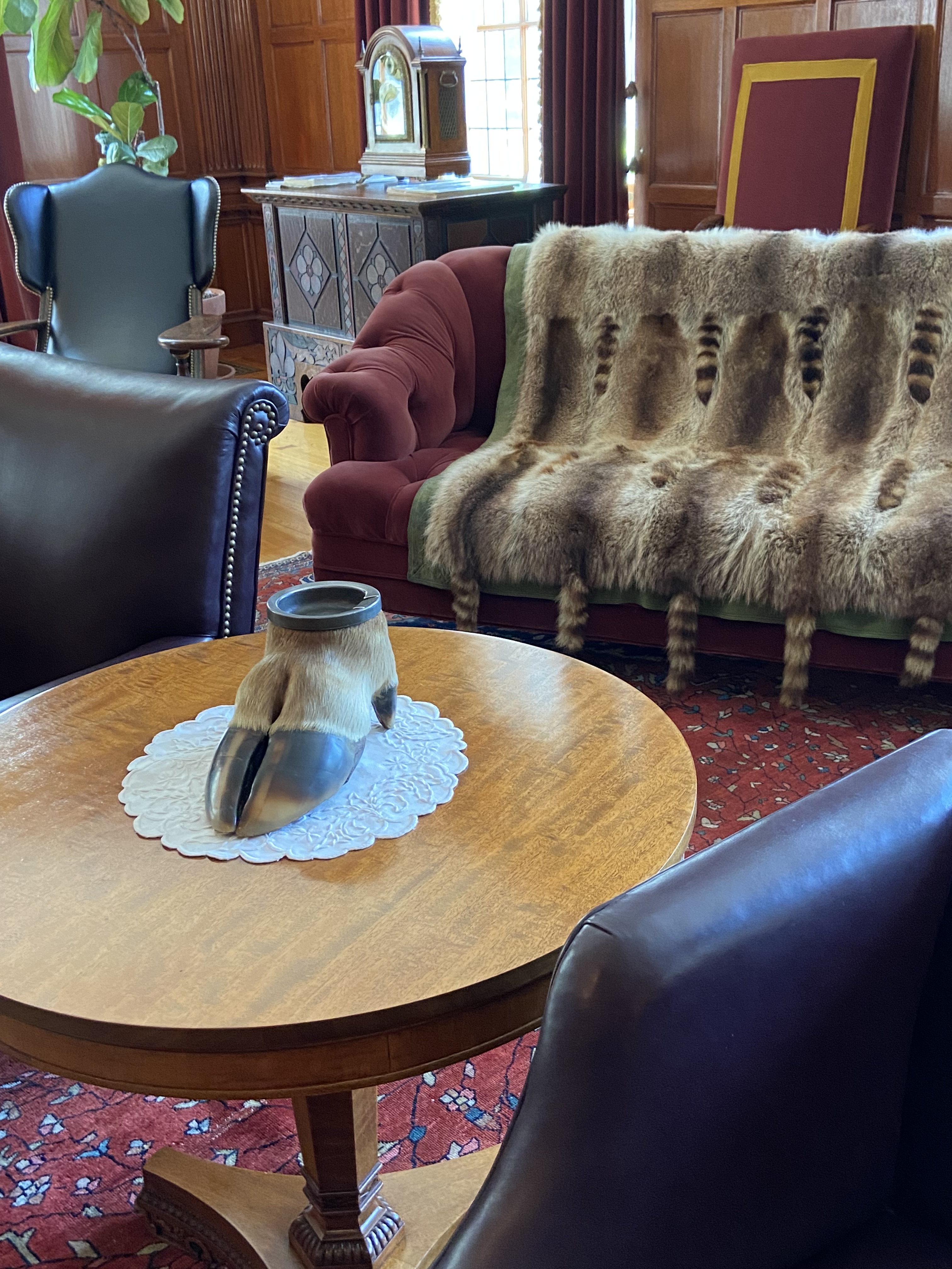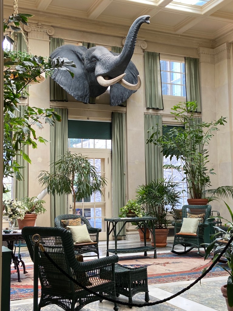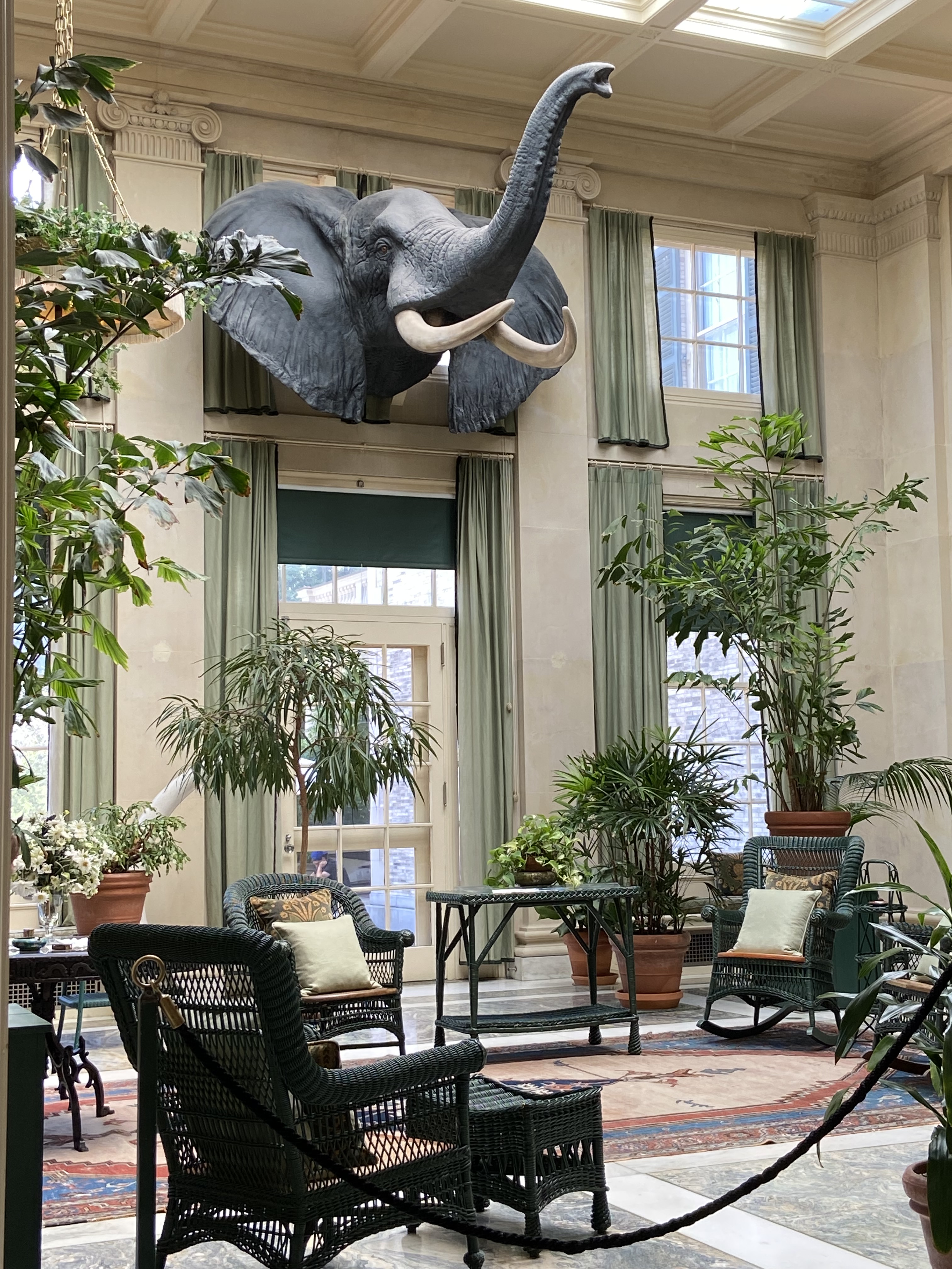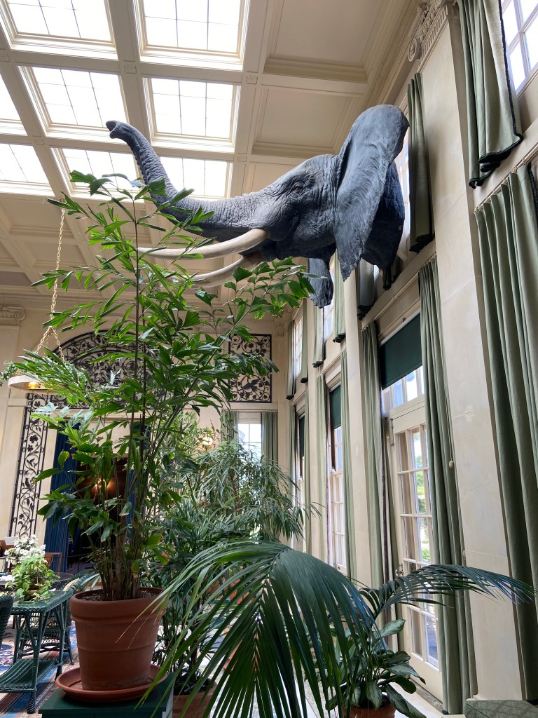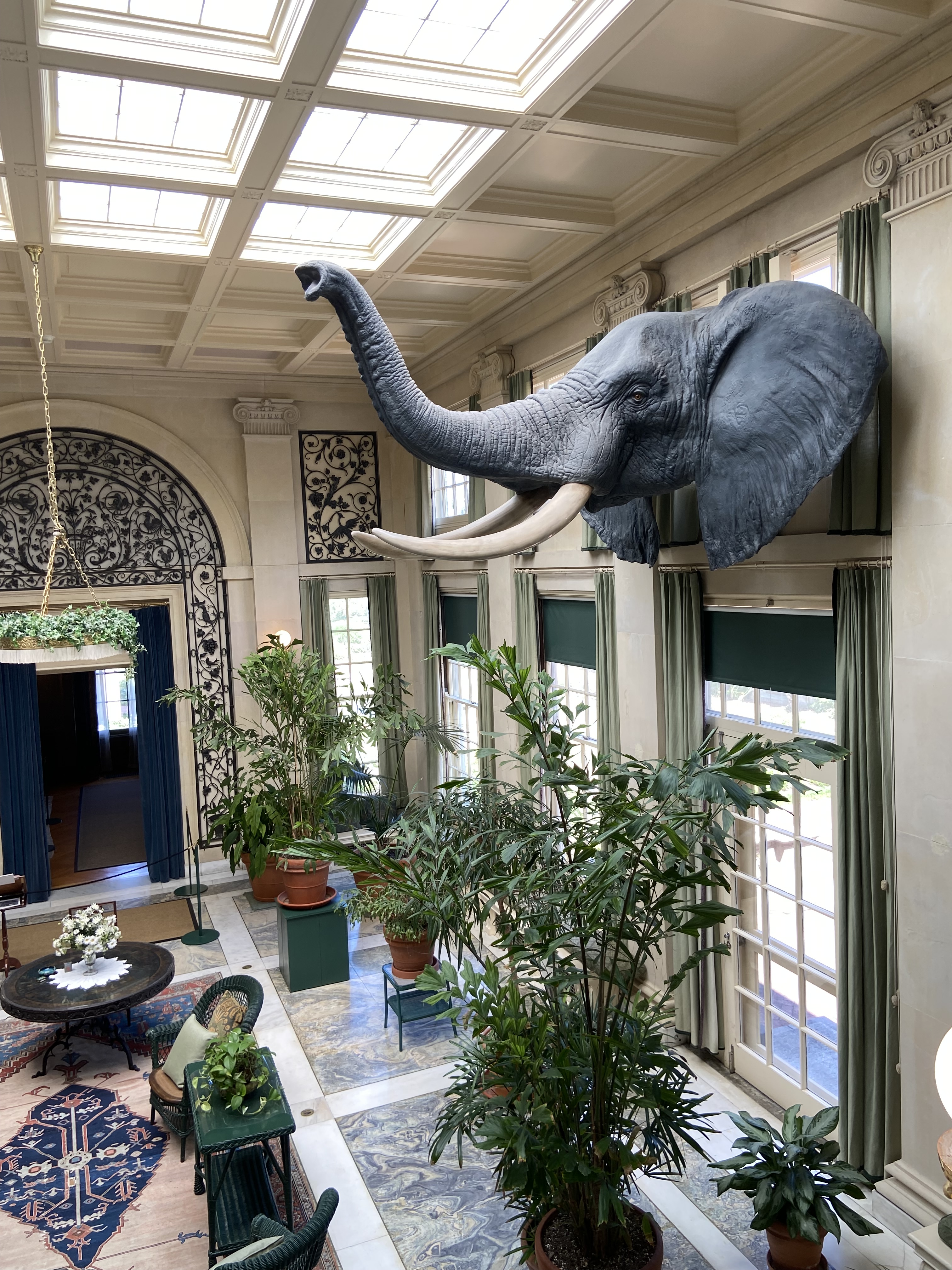 I was so fascinated by this huge elephant head on the wall that I took several photos of it from different angles and views from both the first and second floors of the mansion!!!