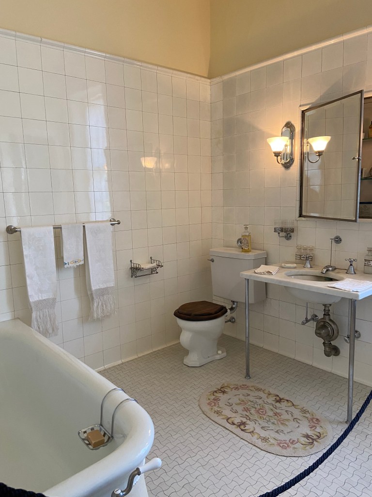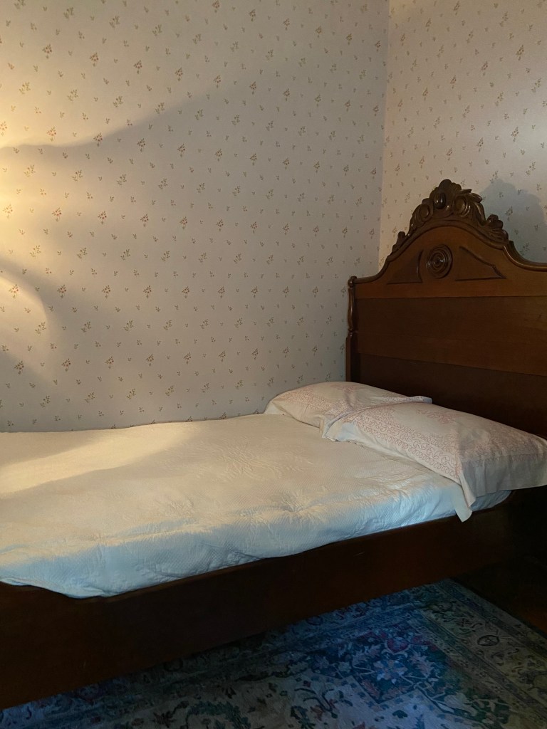 There were three bedrooms – one had a queen bed, one had a double and a twin, and one had two twins. I took the one with two twins – pictured above.