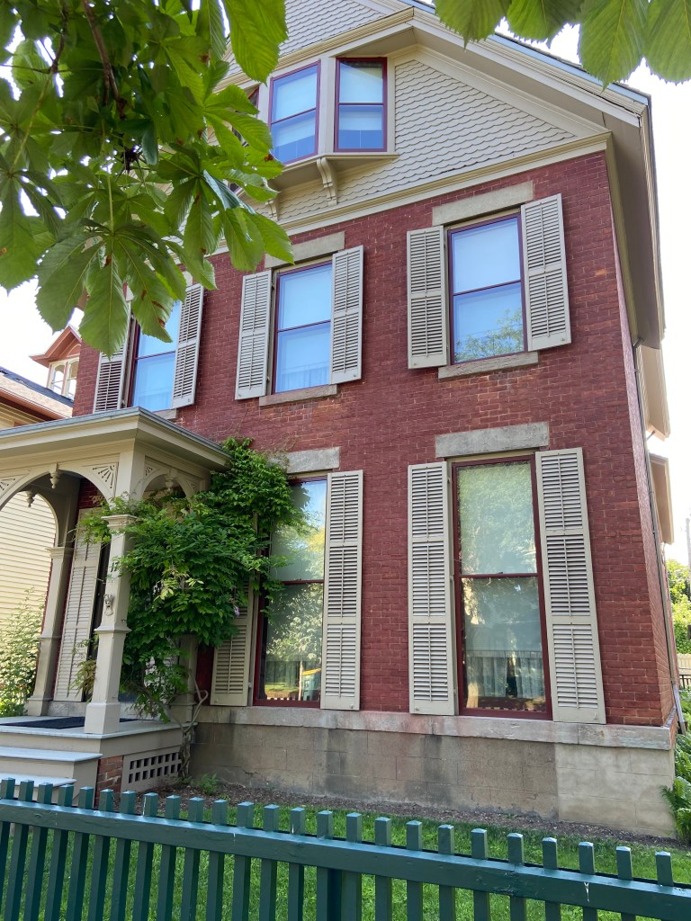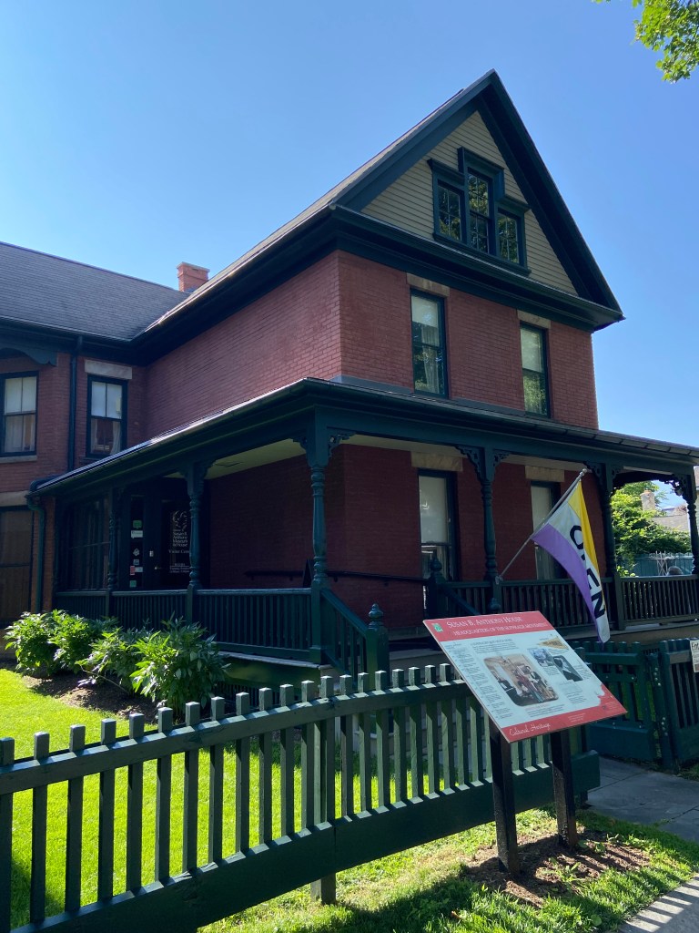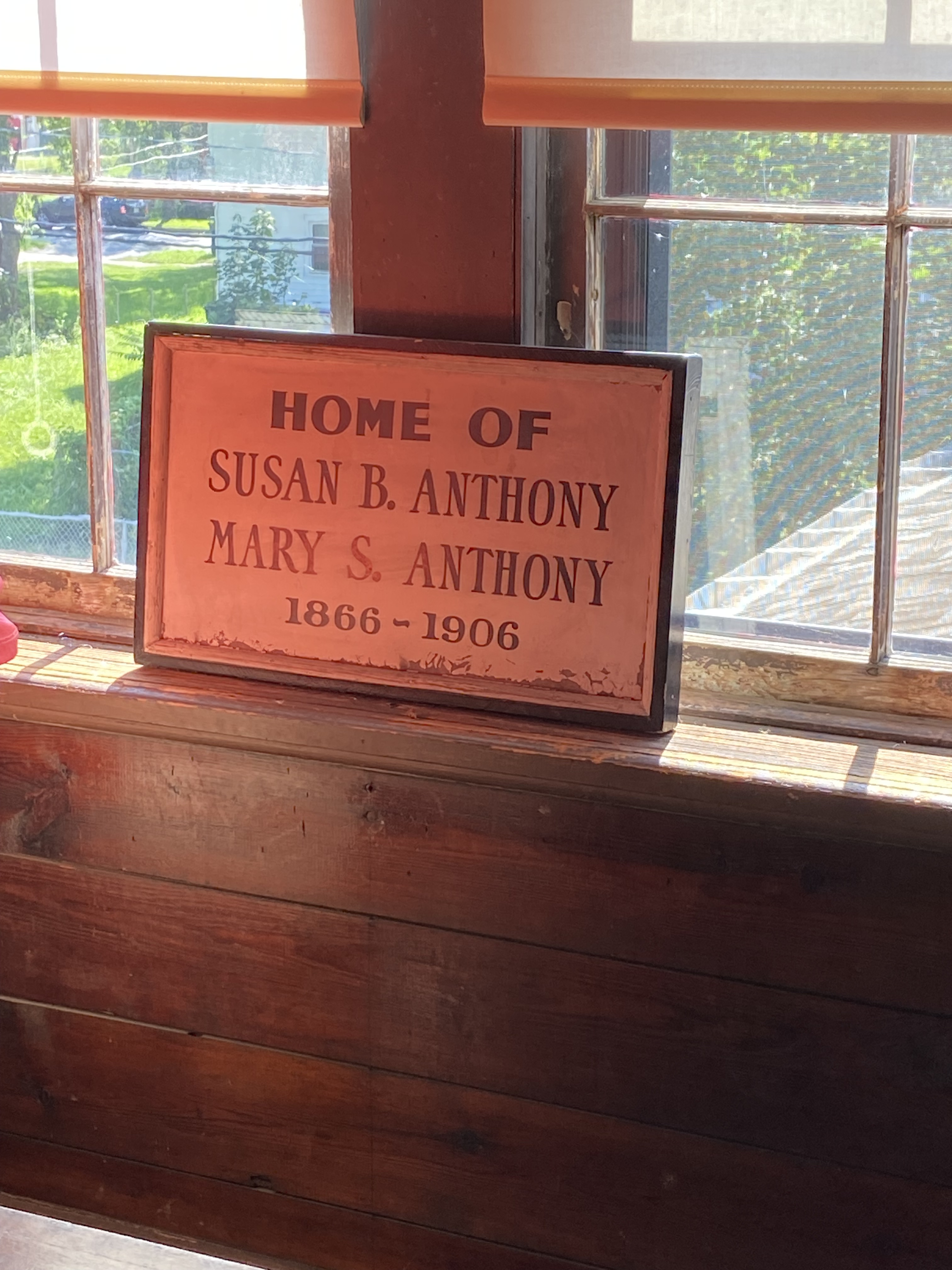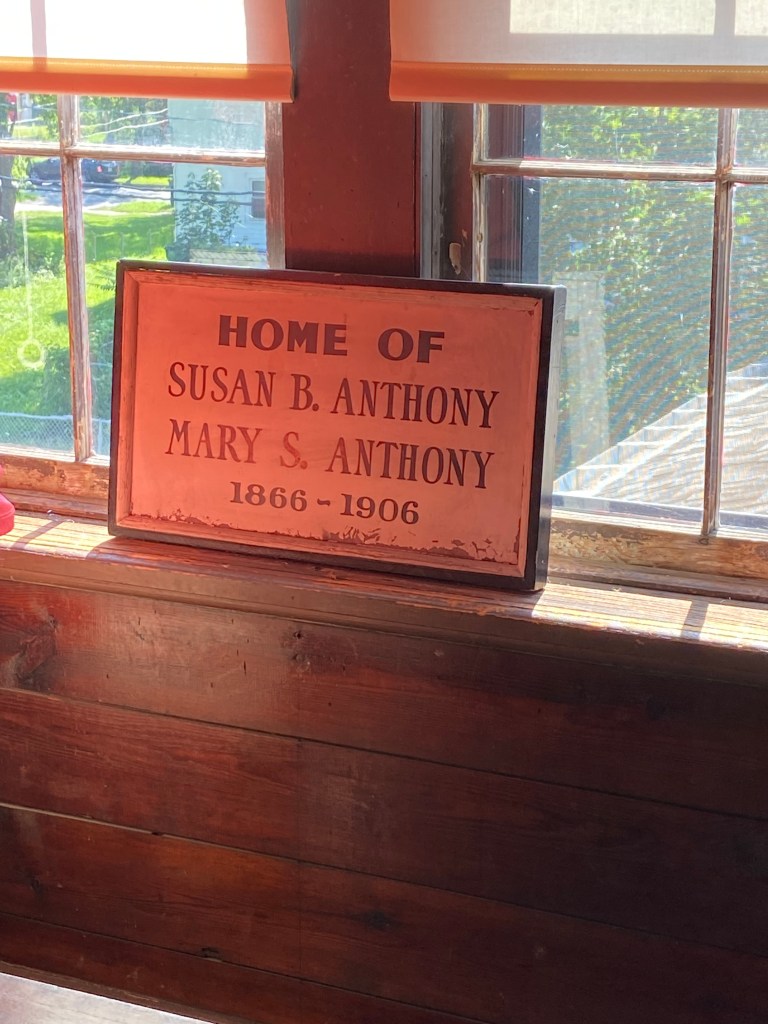 From there, we drove a short distance to the Susan B. Anthony House – a much more modest home than the mansion that George Eastman lived in. Susan B. Anthony is famous for her work for the Women’s Right to vote and other Women’s Rights — she was a fascinating woman who was relentless in her fight to gain equality for women. She was born in Massachusetts on February 15, 1820 and moved to a farm in Rochester with her family in 1845. She lived in Rochester the rest of her life, however, she traveled extensively across the country and abroad in her work as a suffragette. She died in Rochester at the age of 86 on March 13, 1906 and is buried at Mount Hope Cemetery. Her home – the home where she was famously arrested in 1872 for successfully casting an illegal vote in the Presidential race between Ulysses S. Grant and Horace Greeley – and the home next door owned by her sister are now the location of the National Susan B. Anthony Museum and House. They only do guided tours, so we signed up and were ready for the next tour. Our docent was AWESOME — she was very knowledgeable and made made the whole experience interesting and fun.