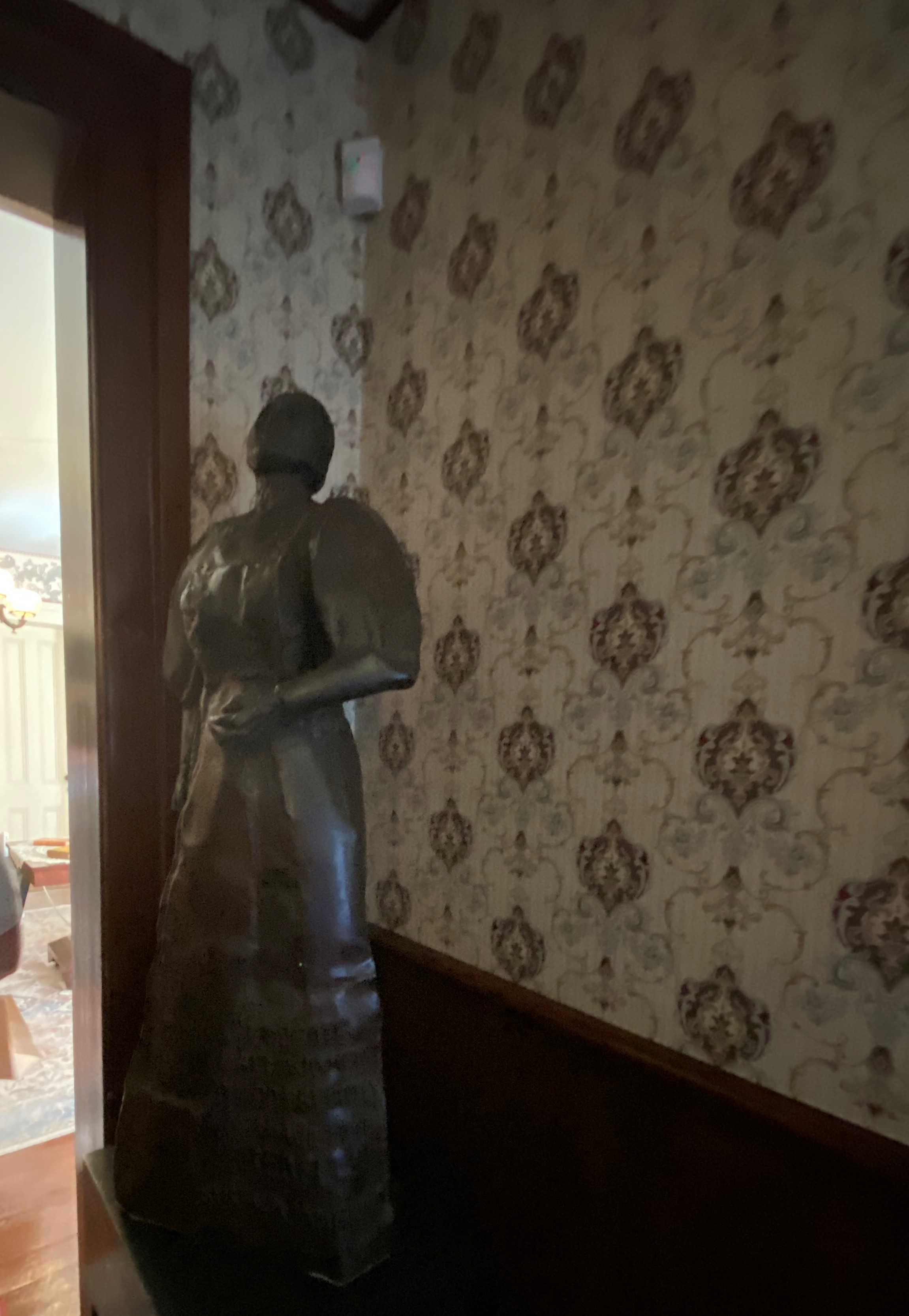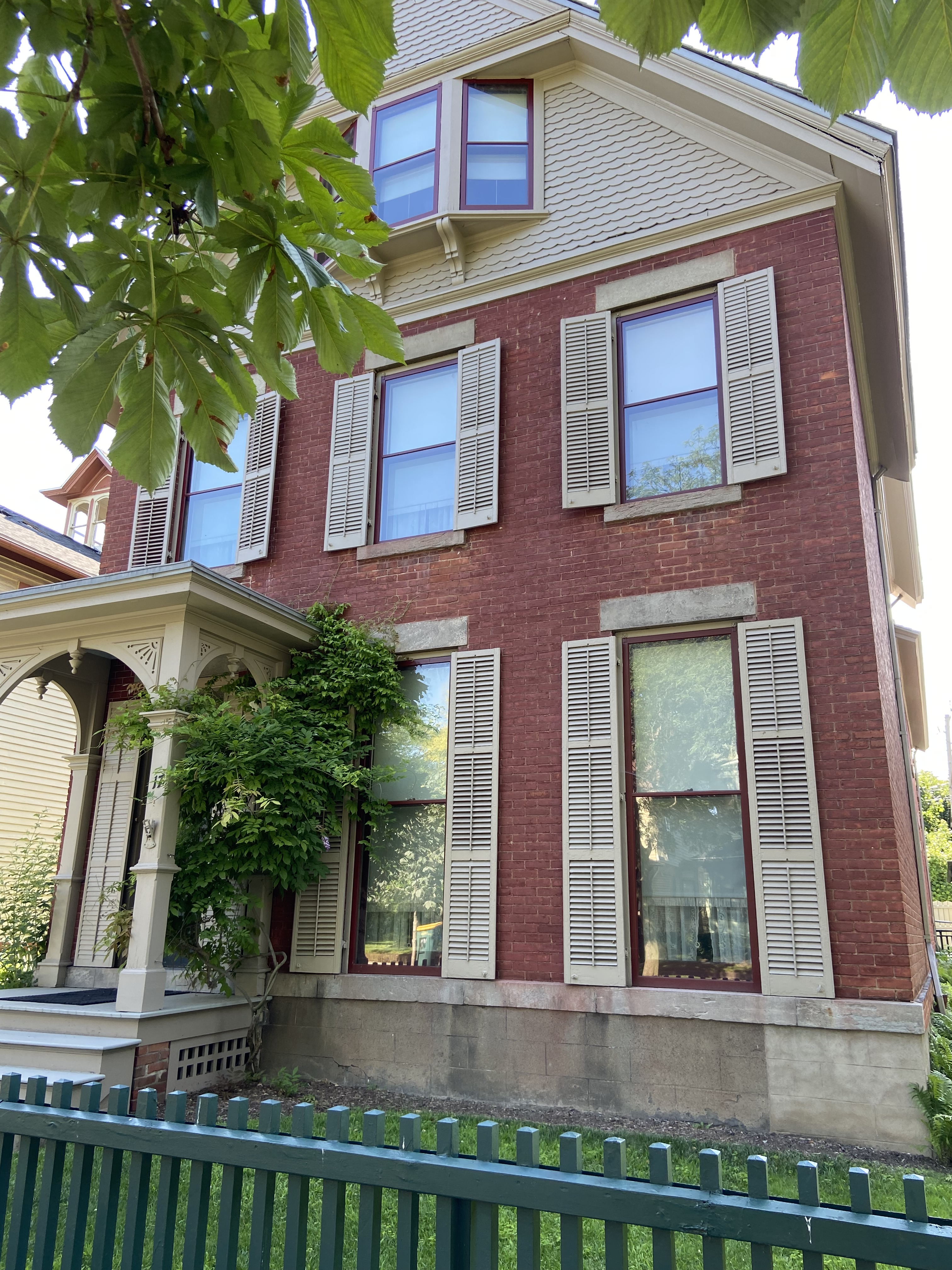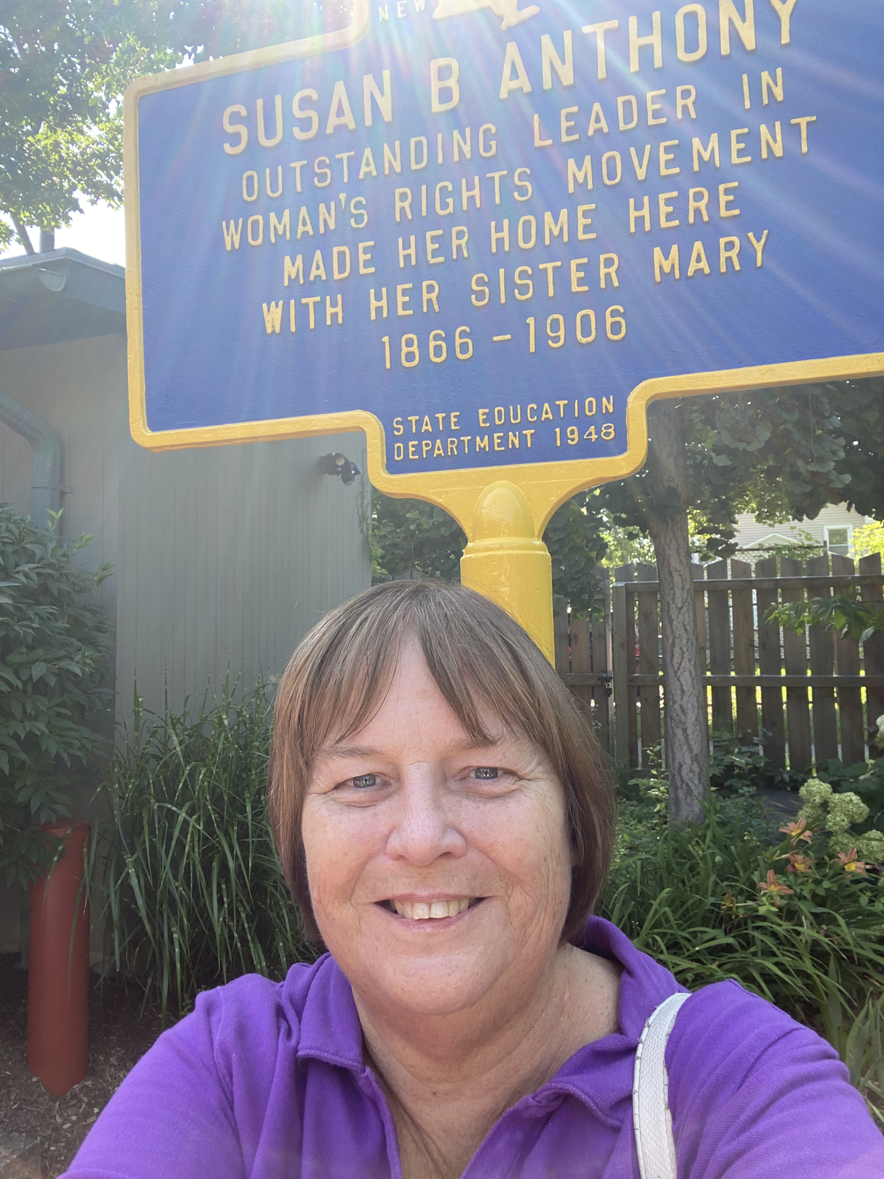 From there, we drove a short distance to the Susan B. Anthony House – a much more modest home than the mansion that George Eastman lived in. Susan B. Anthony is famous for her work for the Women’s Right to vote and other Women’s Rights — she was a fascinating woman who was relentless in her fight to gain equality for women. She was born in Massachusetts on February 15, 1820 and moved to a farm in Rochester with her family in 1845. She lived in Rochester the rest of her life, however, she traveled extensively across the country and abroad in her work as a suffragette. She died in Rochester at the age of 86 on March 13, 1906 and is buried at Mount Hope Cemetery. Her home – the home where she was famously arrested in 1872 for successfully casting an illegal vote in the Presidential race between Ulysses S. Grant and Horace Greeley – and the home next door owned by her sister are now the location of the National Susan B. Anthony Museum and House. They only do guided tours, so we signed up and were ready for the next tour. Our docent was AWESOME — she was very knowledgeable and made made the whole experience interesting and fun.