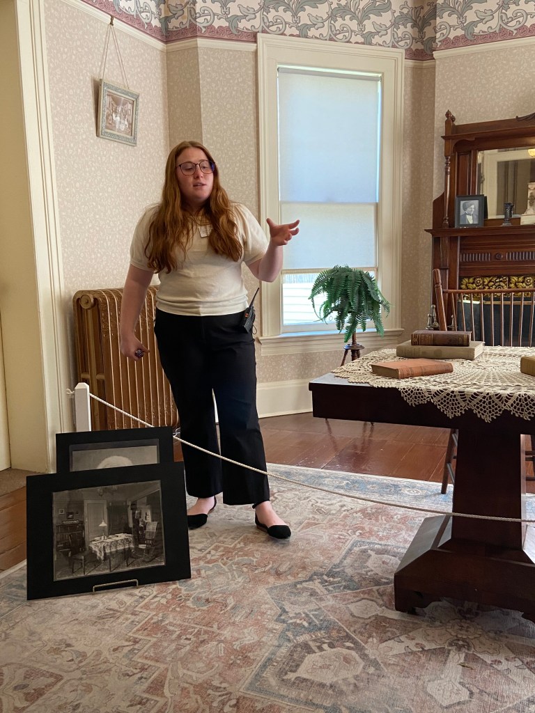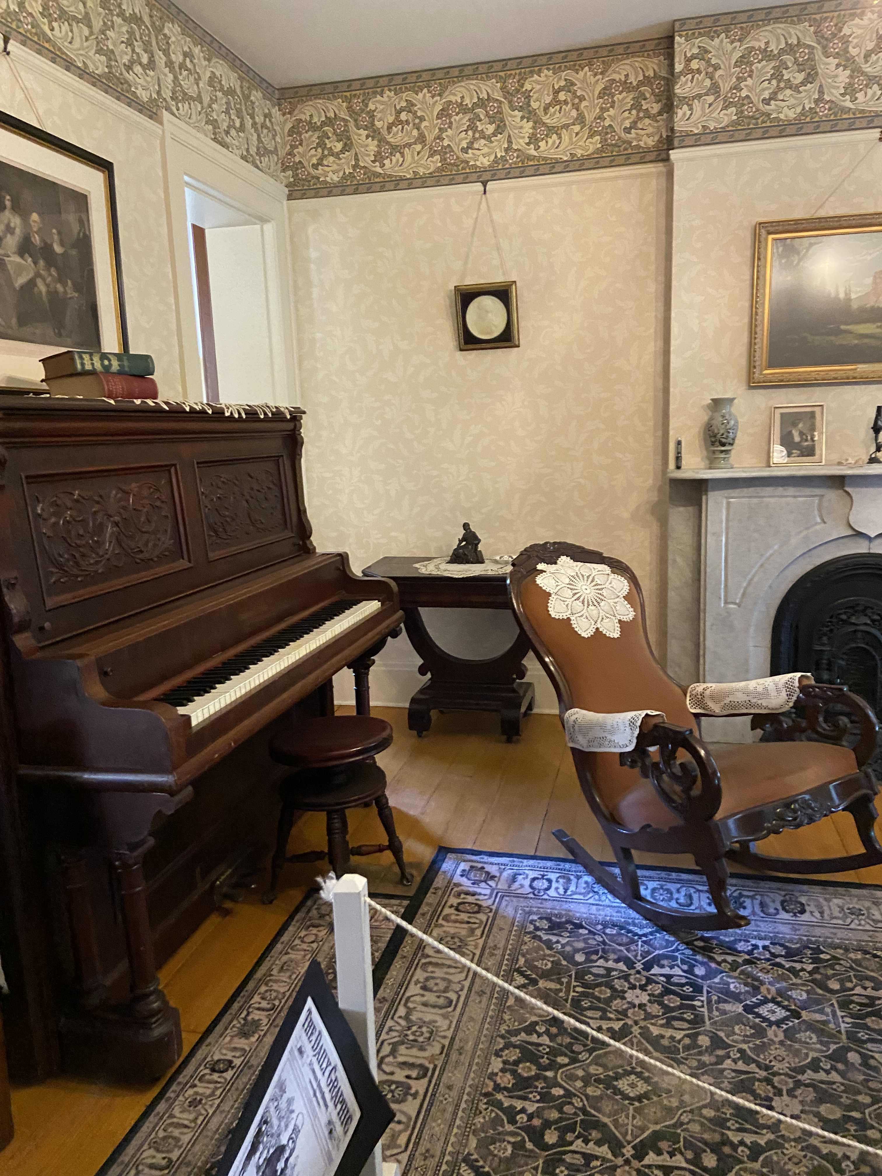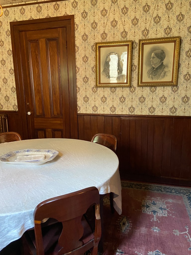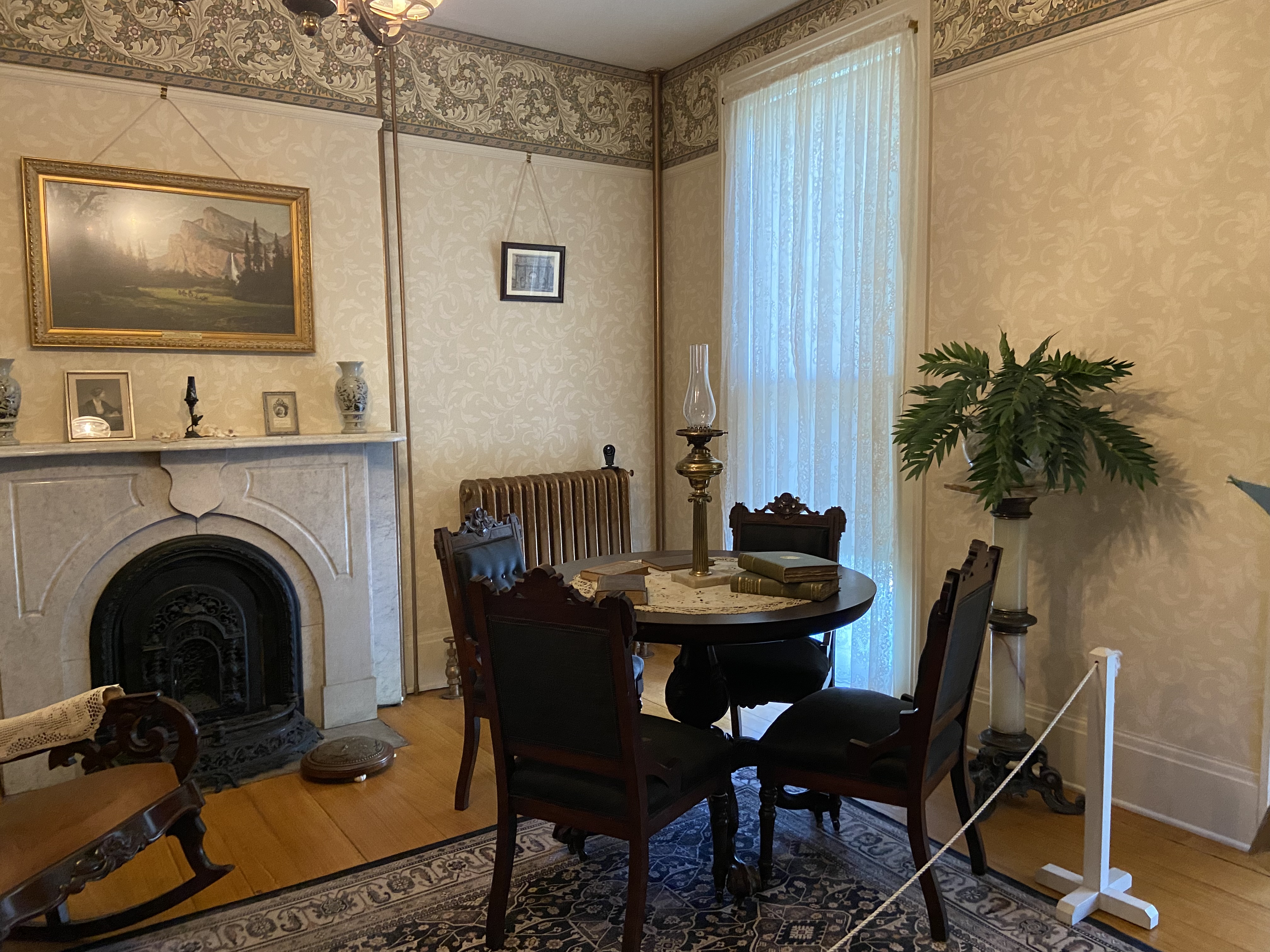 All of the fireplaces are original to the house – they have the most incredible tile work!!! Most of the furnishings and decorations are “from the period” – mainly because the home left the hands of the family for a number of years as private residences and a boarding house for some time. So, many of the original belongings were lost. However, several of Susan B. Anthony’s personal things have been recovered by family members and returned to the house to be included in the museum.