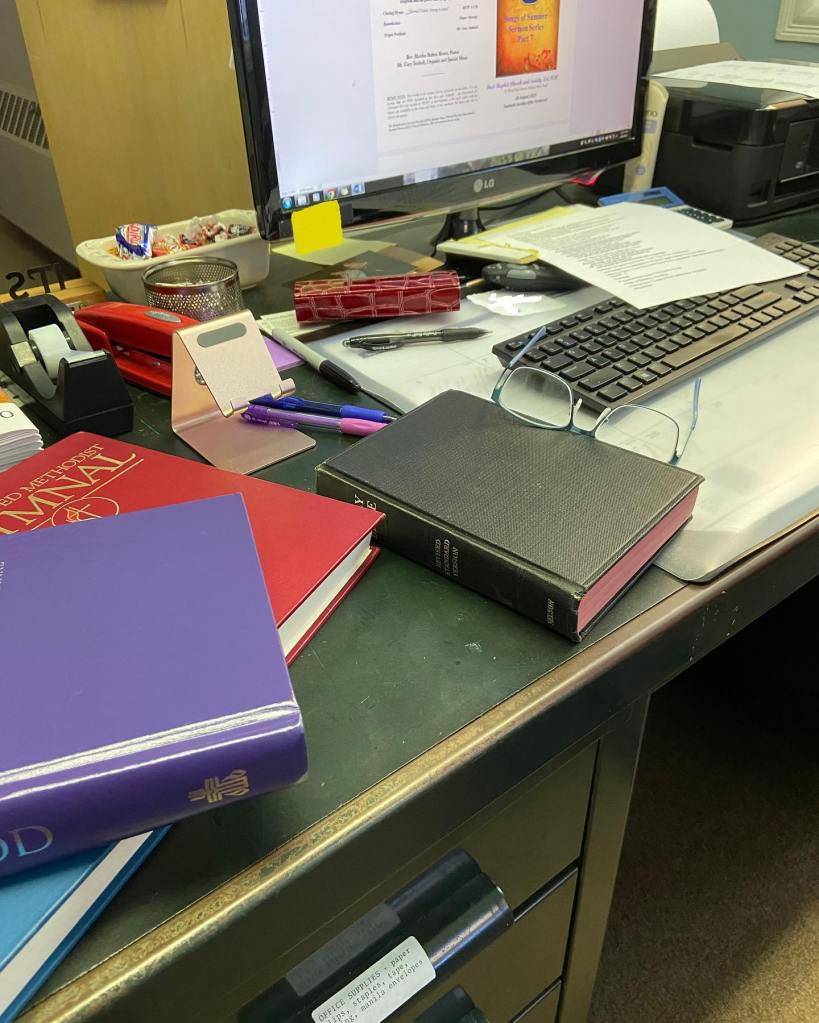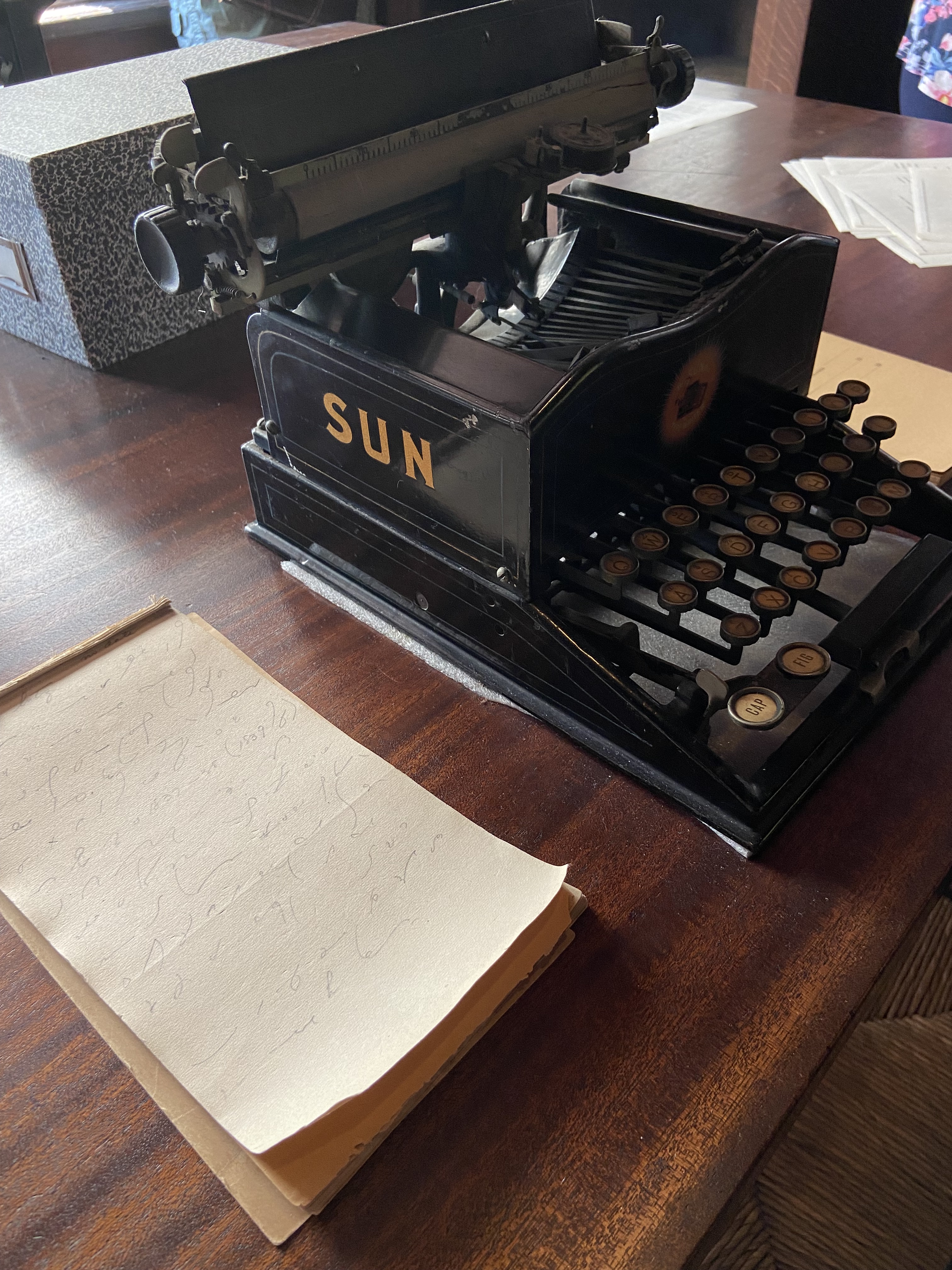 It is hard to tell from this photo, but the notes on the note pad next to this typewriter is written in Gregg shorthand! I took shorthand in high school, but don’t remember much of it, so I couldn’t read what the notes said!!!
