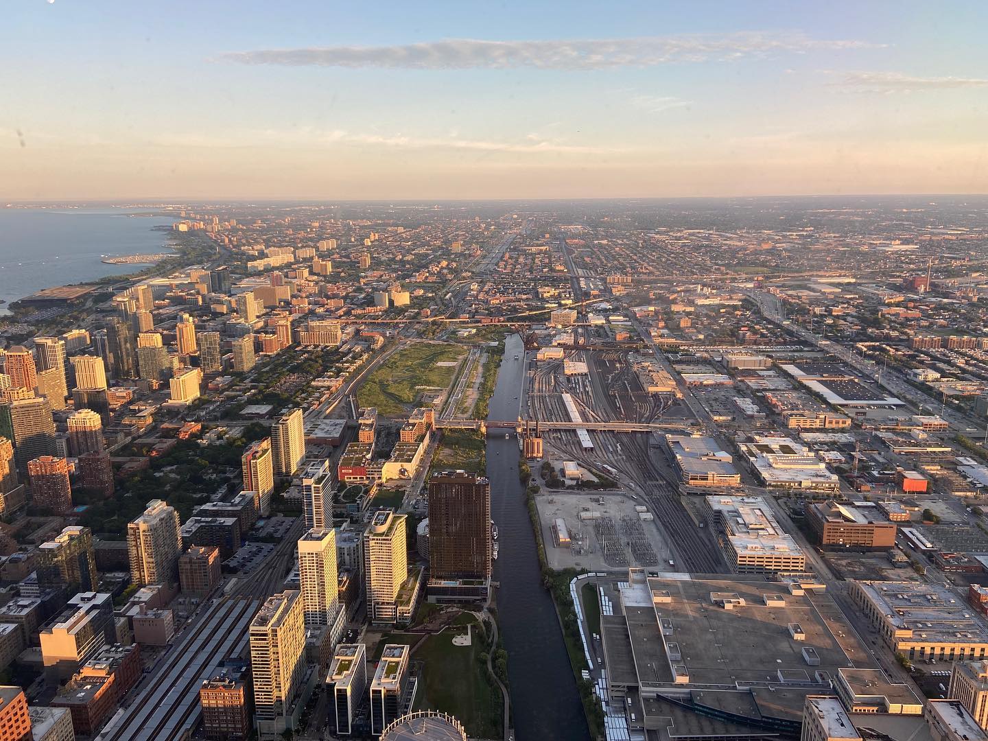 Our first views of the Chicago skyline from the plane as we approached Chicago Midway