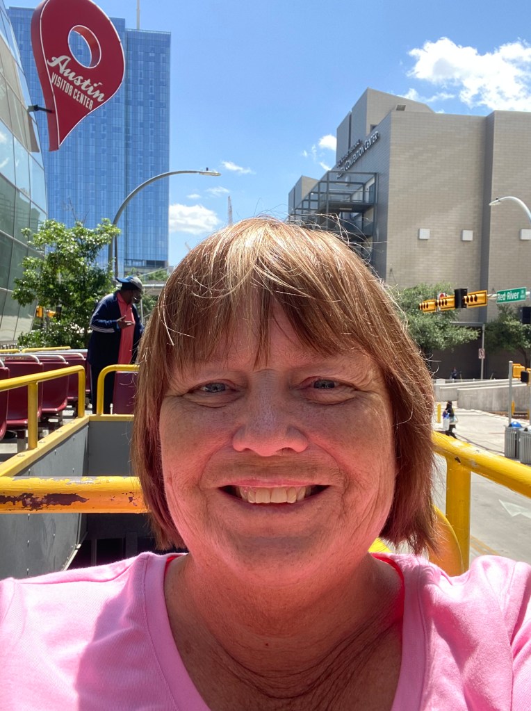 Since I only had a few hours in Austin, I wanted to see as much as I could in that small time. So……yep, you guessed it……I went to the Welcome Center and got a ticket on a double decker city bus tour. It was perfect! I sat right in the front seat on the top level of the open top bus and had the BEST view of the city! The guide was amazing and it was an awesome hour or so loop.
