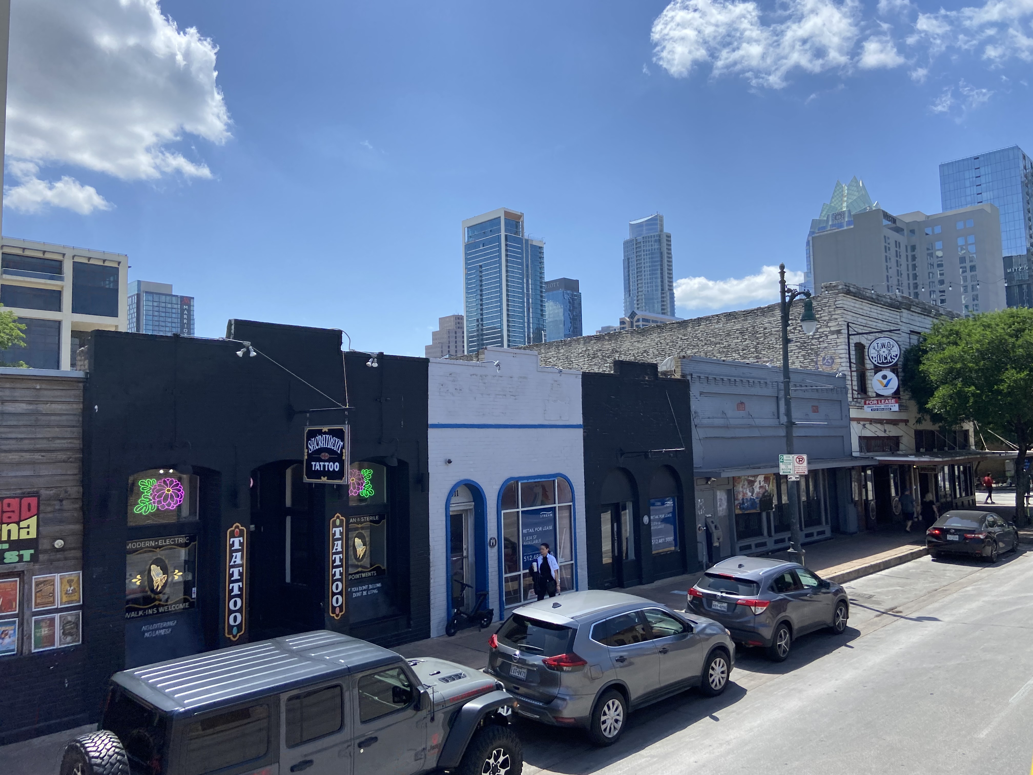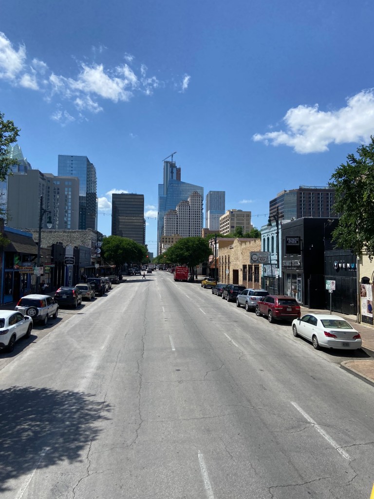 Above and below are parts of Sixth Street……a street full of clubs, music, restaurants, food, and drinks!!! As we drove along the street, music blared from just about every building we passed. Looked like a fun place to be.