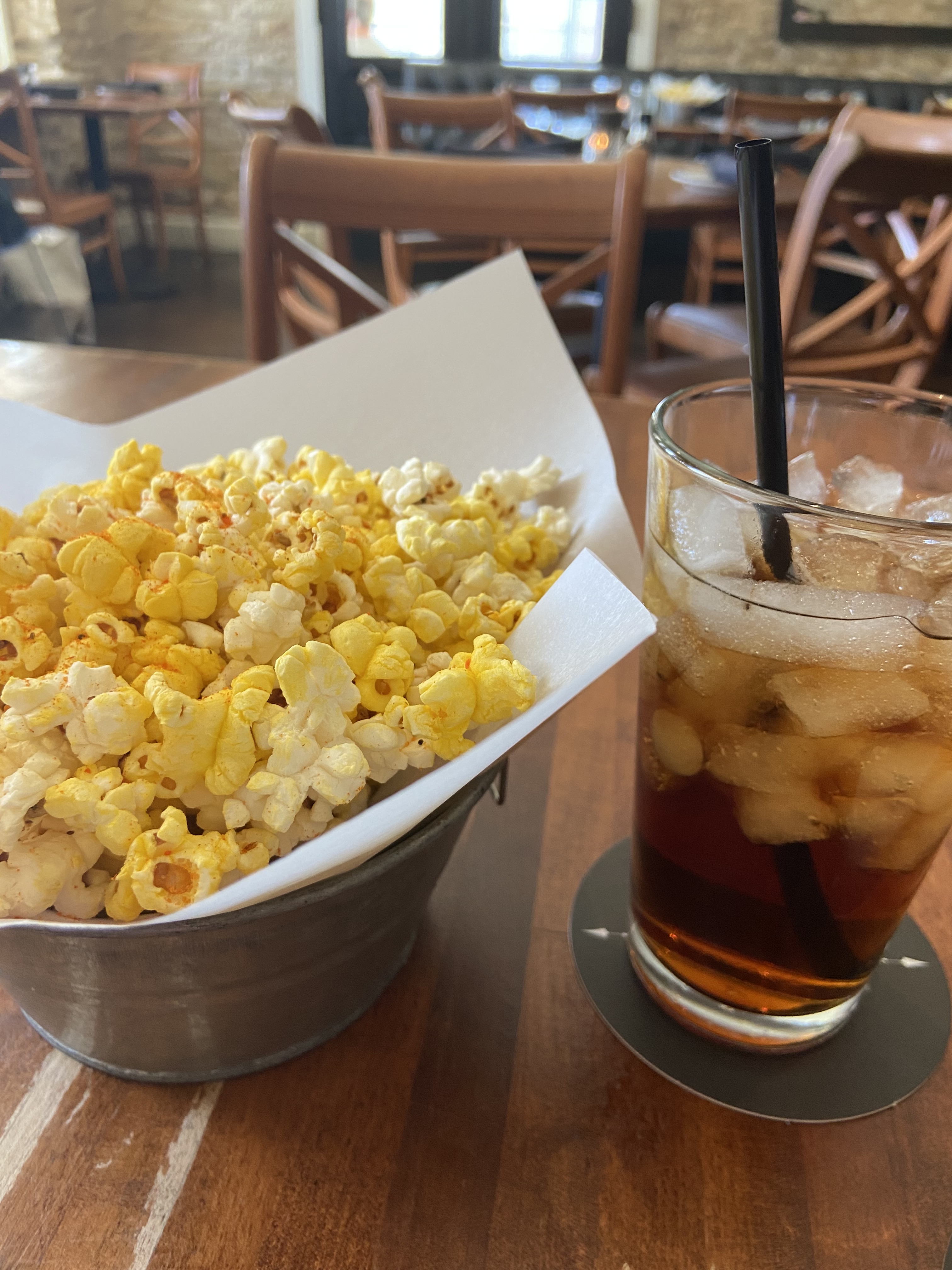 They brought a complimentary bucket of seasoned popcorn to start that was soooooo good – I was told it was a multi-seasoning blend that I believe included Cayenne or something with a little bit of a bite!