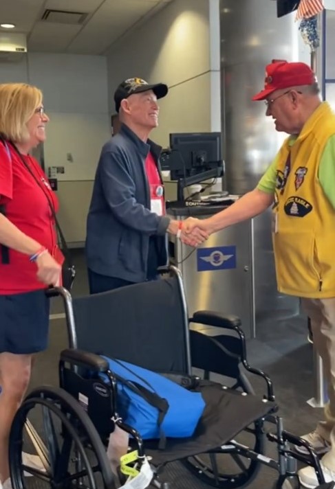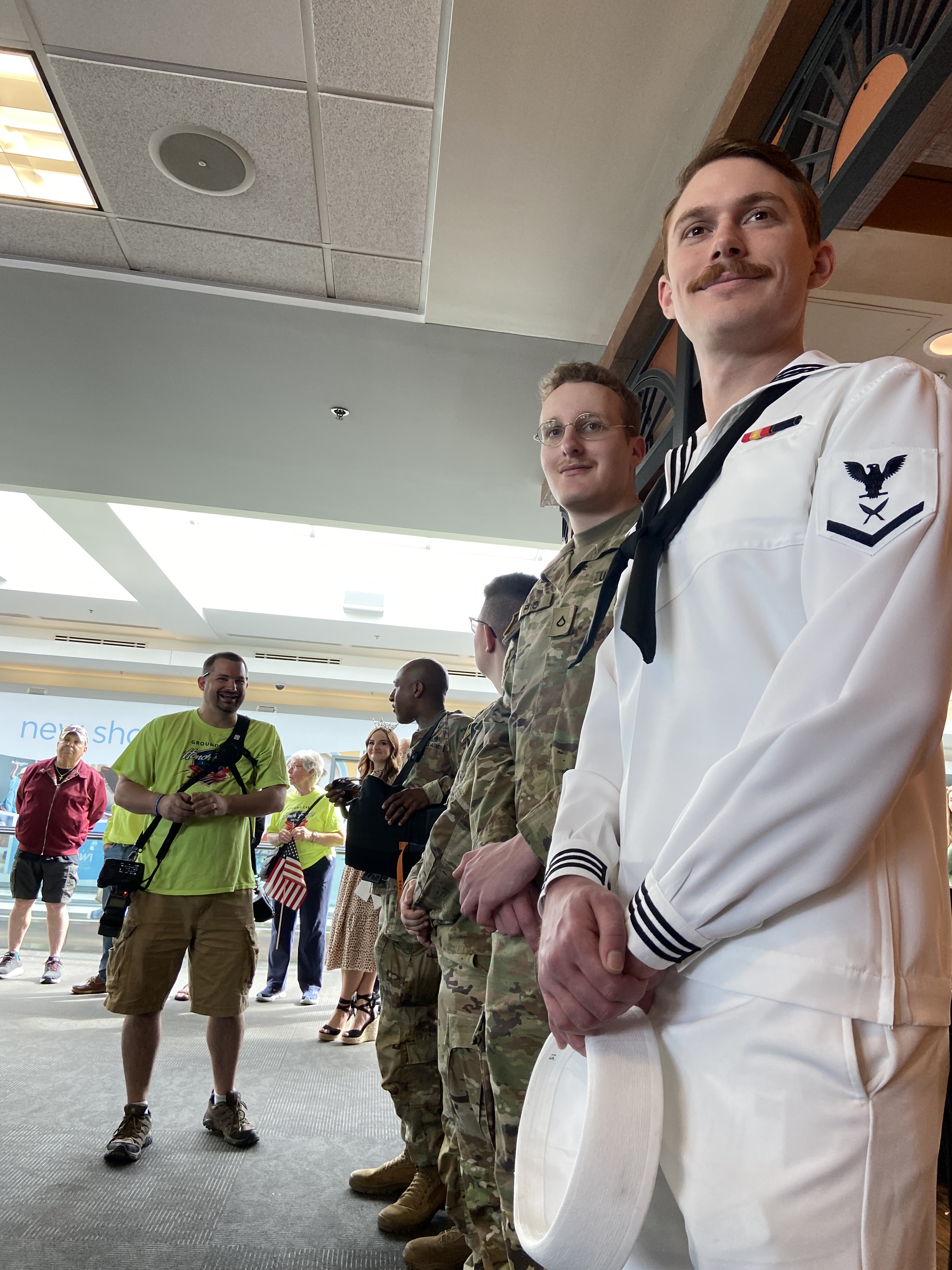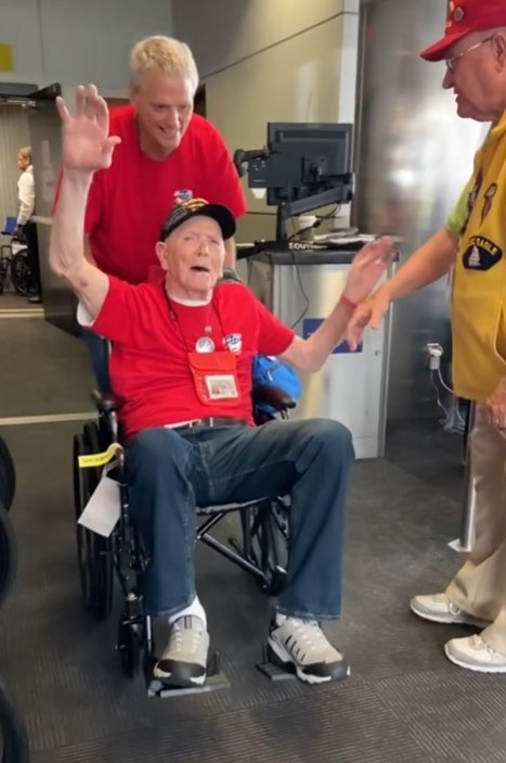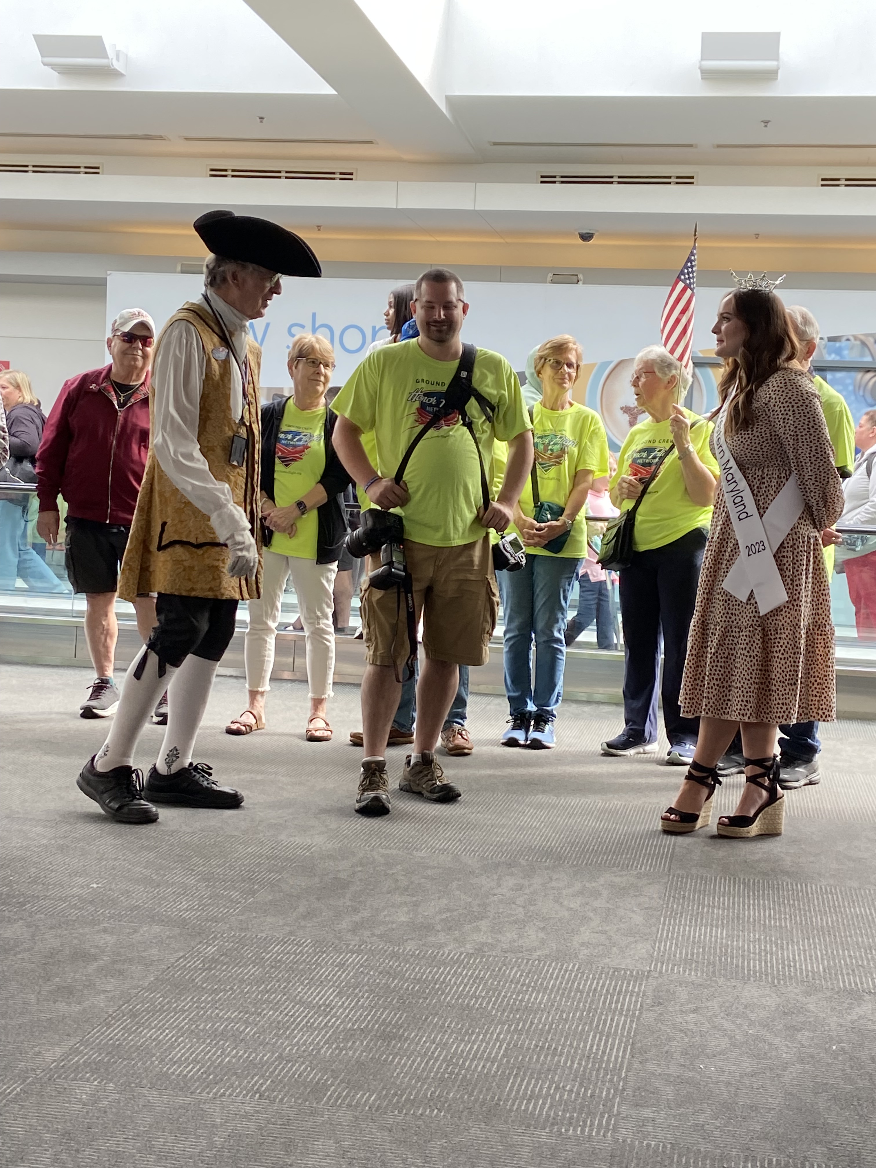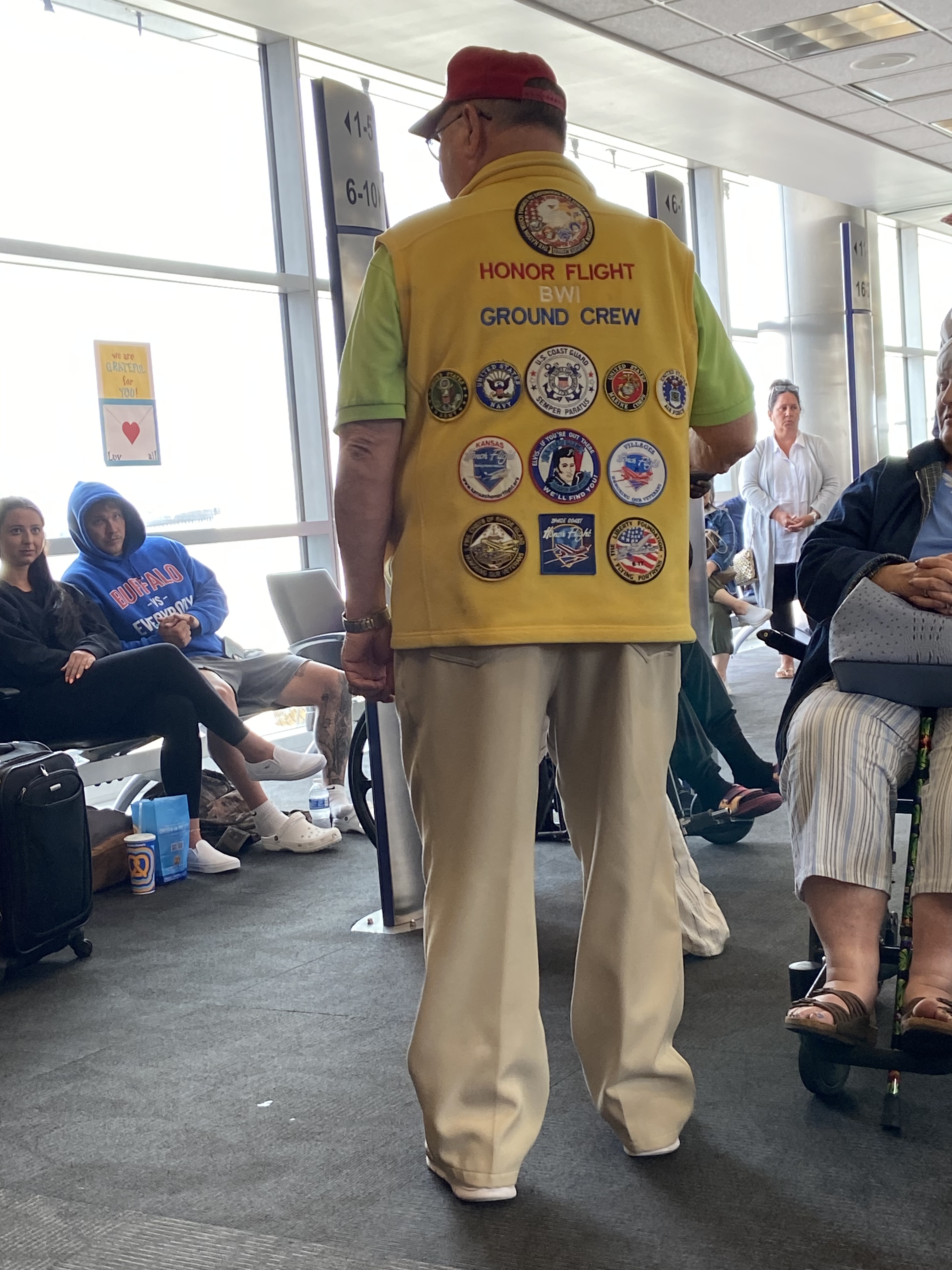 I was at the gate during my layover in BWI and saw a guy dressed in a colonial uniform with a bell and a line of military men – most were Army and one was a Sailor – all in uniform. What I soon realized was that they were preparing to deboard an Honor Flight plane with war veterans headed to Washington DC to tour the monuments. With each set of veterans, the colonial guy would ring the bell and another man would announce their arrival – they represented WWII, Korean War, and Vietnam War. All the passengers waiting in the terminal stood and cheered……the veterans passed by with smiles and waves and shook the hands of the military soldiers. It was AMAZING and very emotional!!!