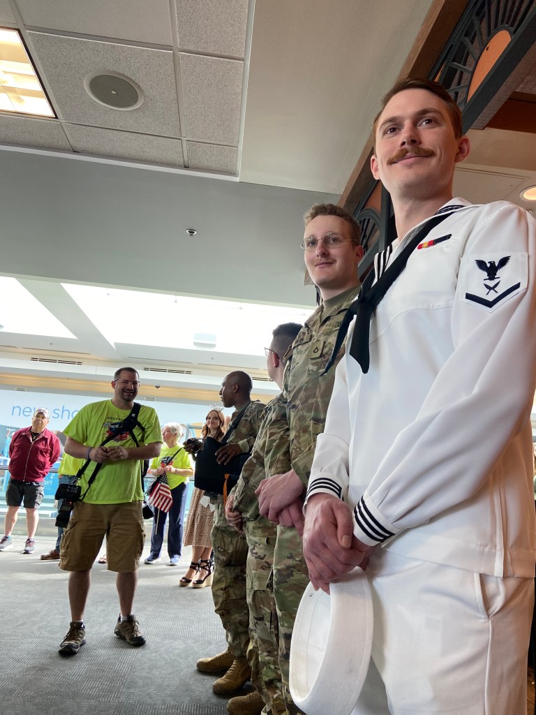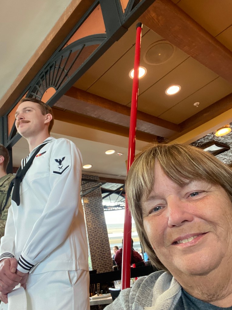 I am not one bit ashamed to admit that I shamelessly flirted with this sailor! hehehe I told him he brought back a lot of wonderful memories of my brother and my boyfriend who wore that same uniform in the mid-late 70’s. I also told him I have a “thing” for a guy in a sailor uniform!!! LOL He gave me a shy smile with a bit of a blush in his cheeks!!!