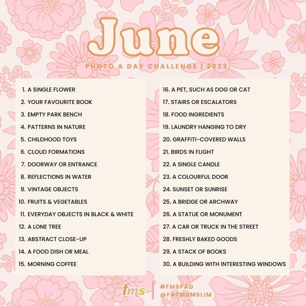 Here is the final set of Daily Photo Topics for June:
