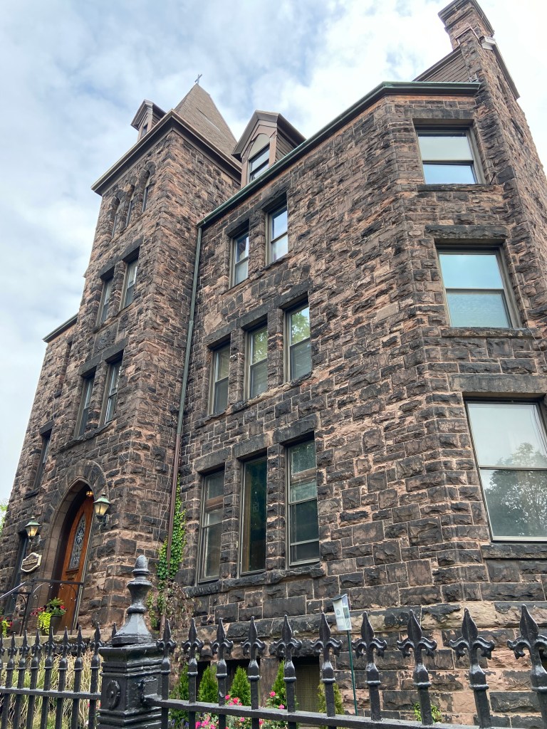First we toured the St. Patrick’s Friary Designer House on Seymour St. It was constructed in 1891 in the Gothic Revival style out of Medina Sandstone. It was the home of Franciscan Monks until October 2017 and is now privately owned. The Junior League of Buffalo is hosting their 22nd Decorator’s Show House in the former Friary. Each room is decorated by different designers. It was pretty cool. There are three floors of rooms – I only toured the first floor because of the stairs, but what I saw was very interesting.