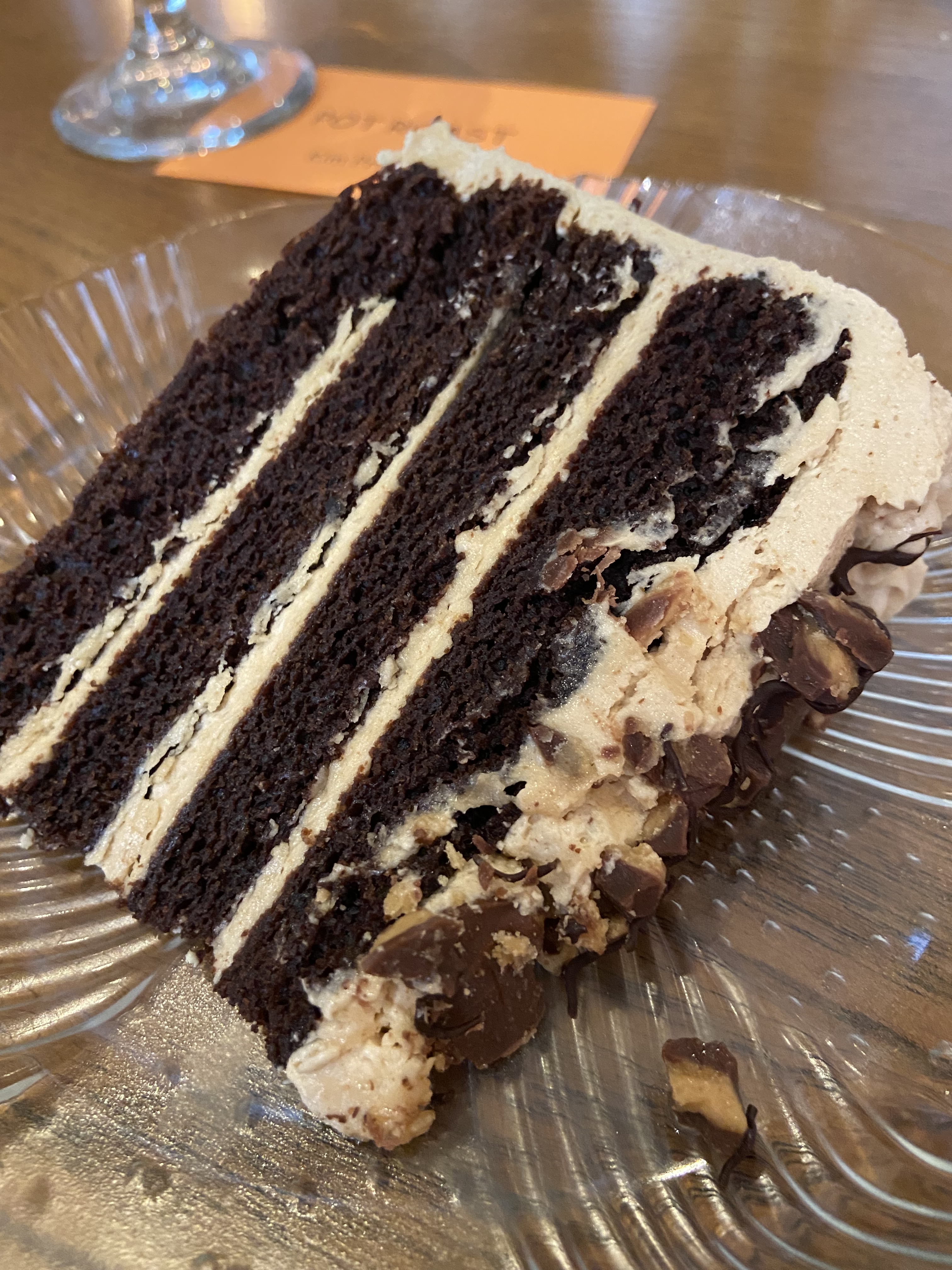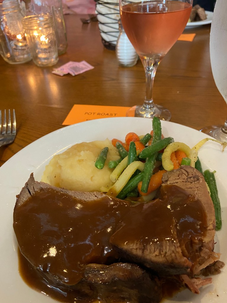 After the tour, we went to lunch at Pearl Street Grill on Pearl Street. I had the pot roast and it was AWESOME — so tender and jammed with flavor!!! It was a HUGE serving – I only ate about 1/2 of it! And, then they brought a big piece of chocolate peanut butter cake!!! ![]()
