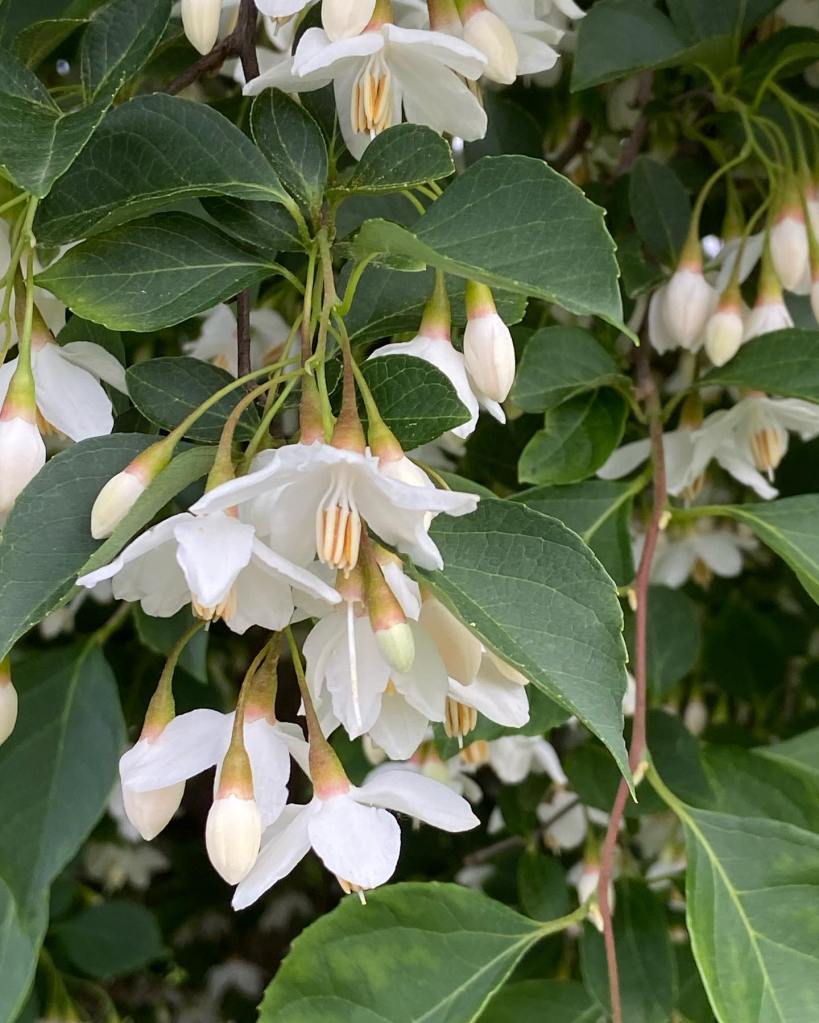 Grateful that my Japanese Snowbell finally blossomed for the first time!