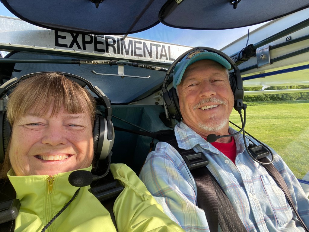 Our usual selfie in the cockpit waiting for the engine to heat up enough for take-off