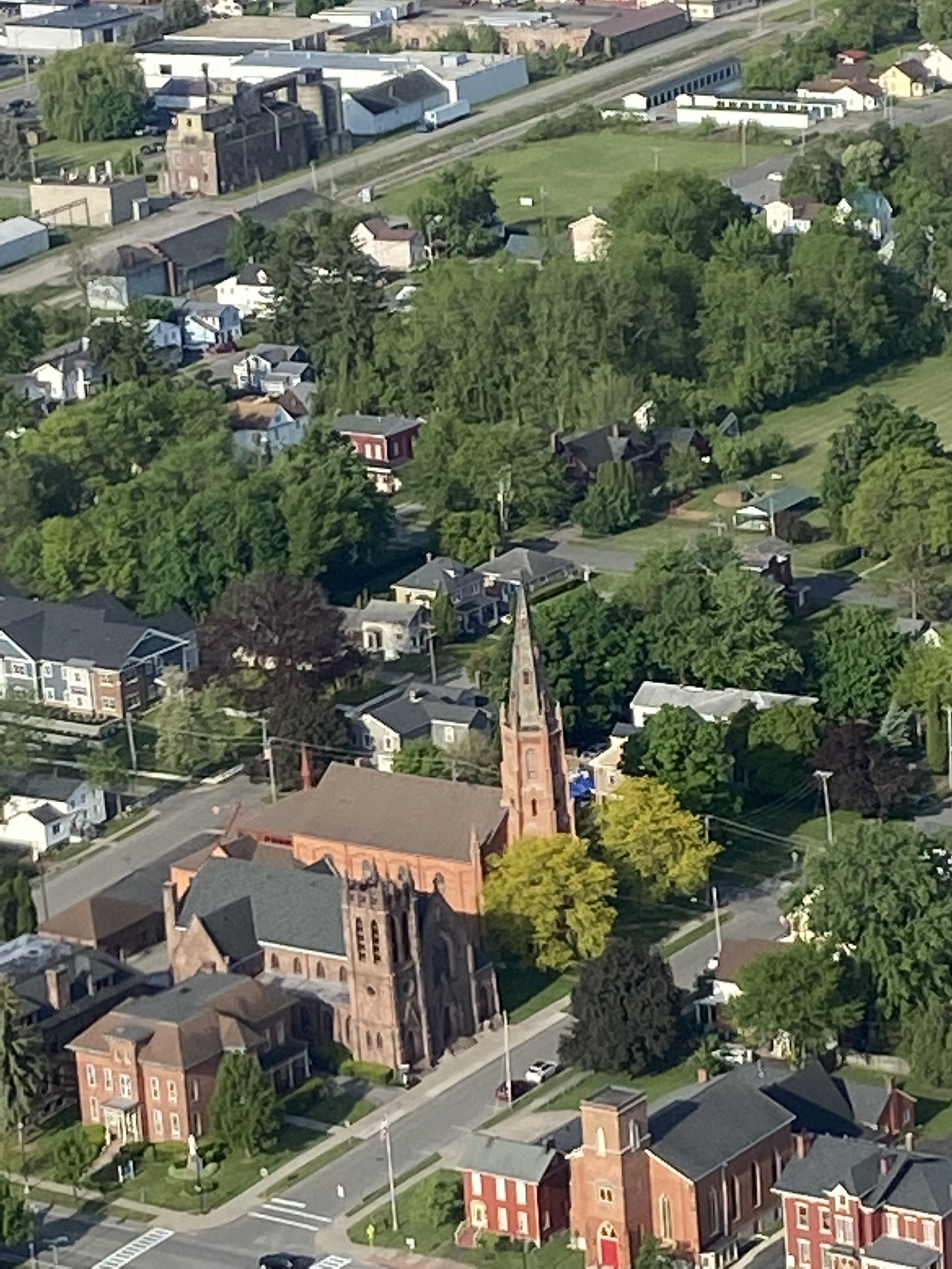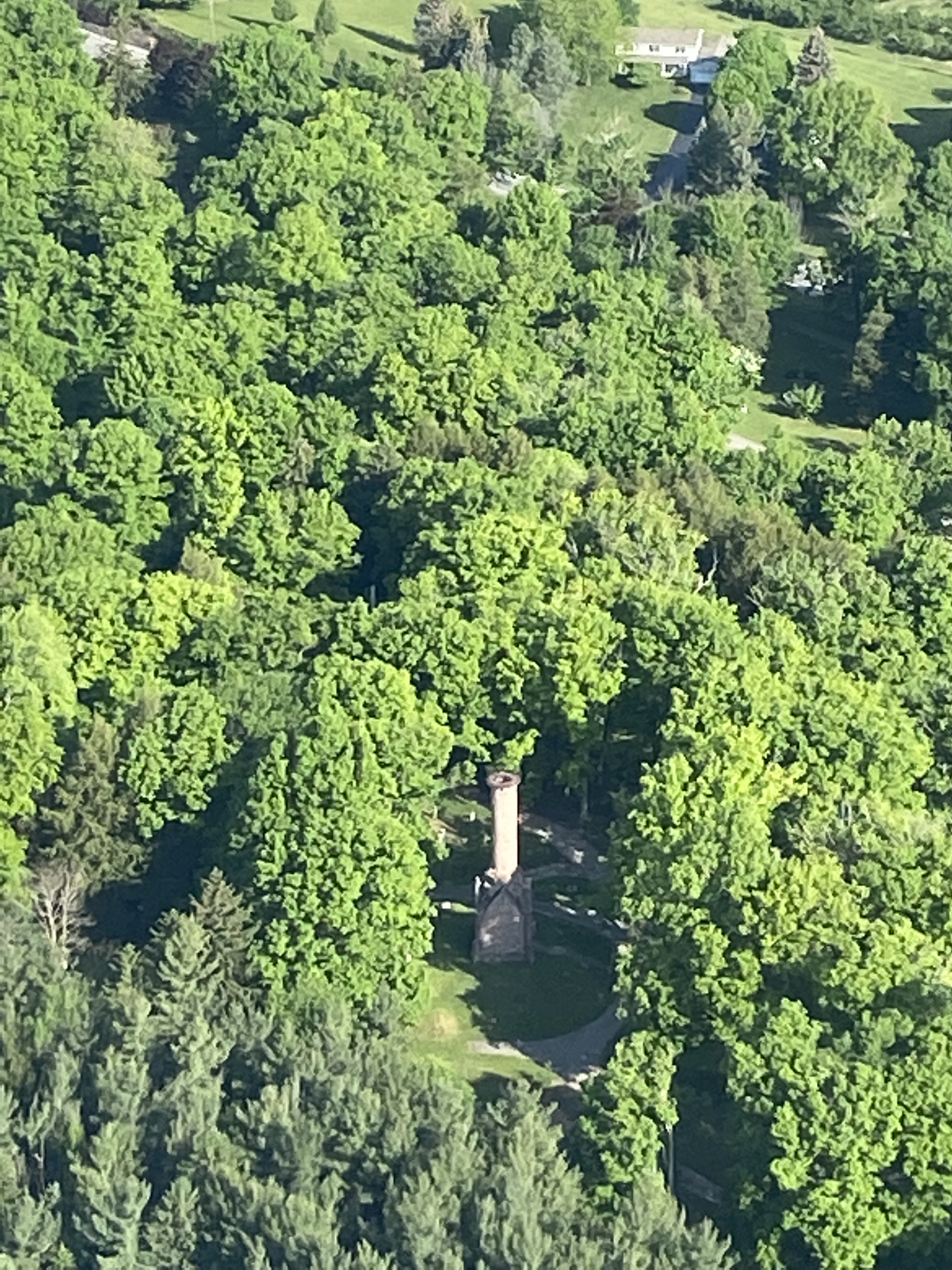 The only thing distinguishable in Mt Albion Cemetery from the air is the Soldiers & Sailors Monument tower – I believe it is still the highest point in Orleans County.