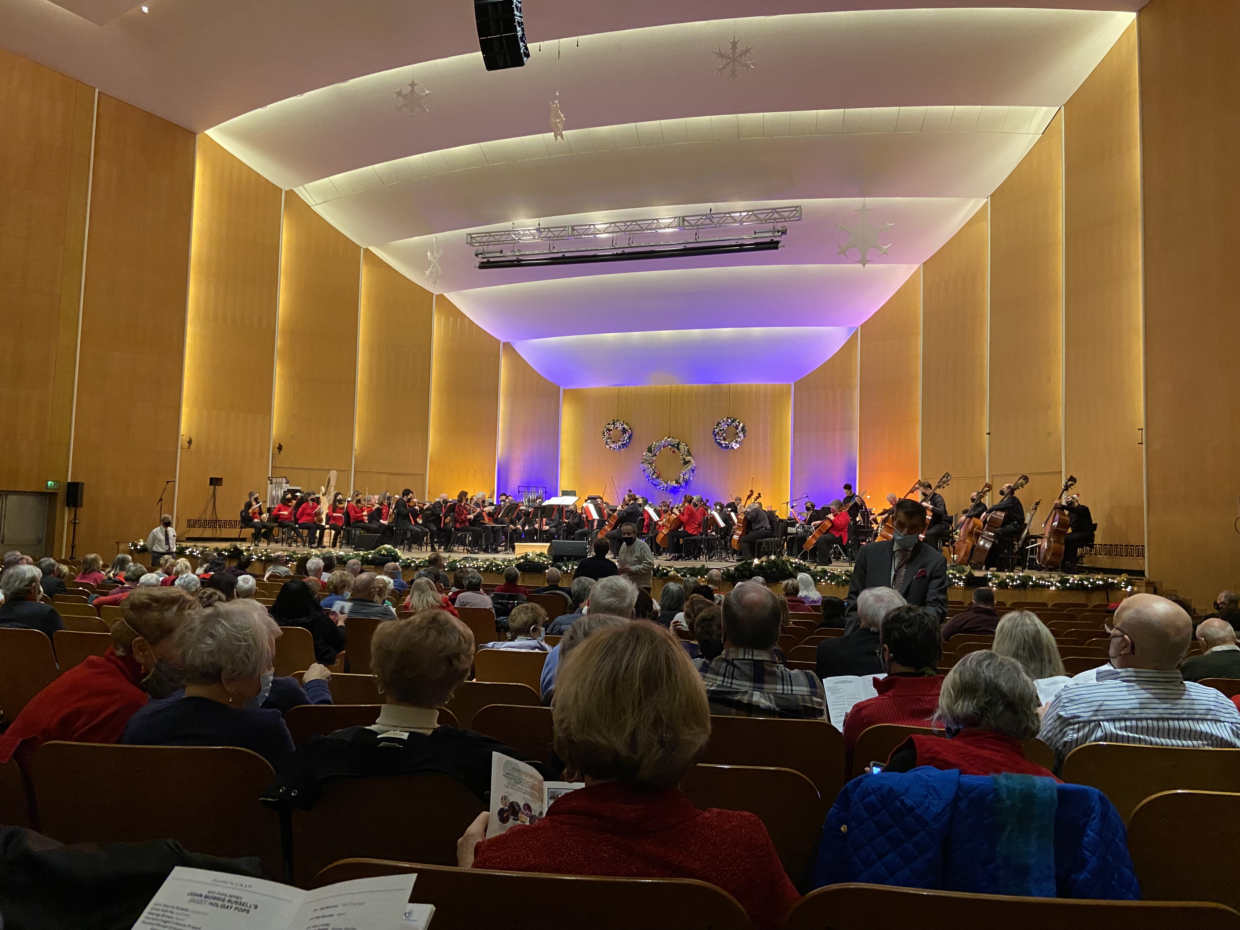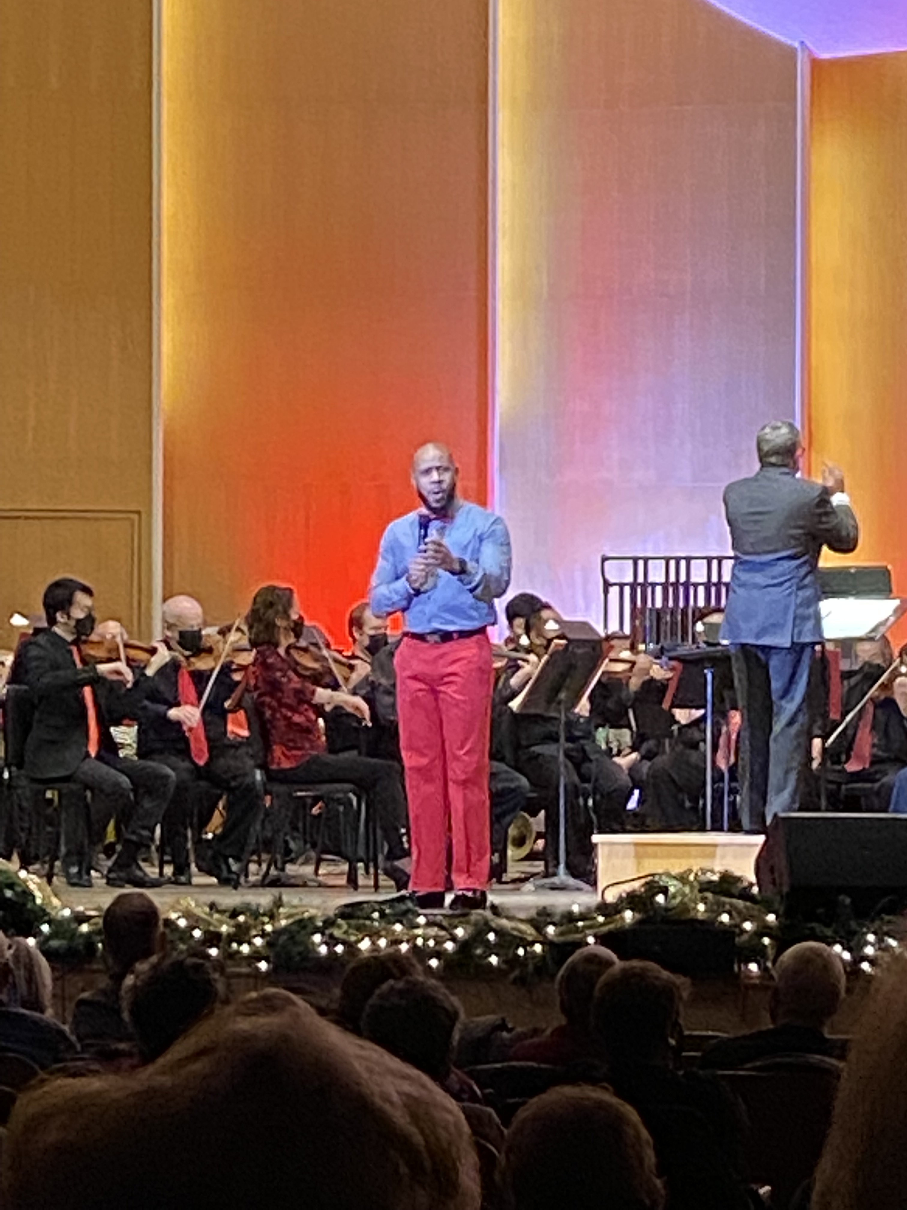 I had an amazing time, today! I went on a bus day-trip with the Busy Buddies group to Kleinhans Music Hall in Buffalo, NY to hear the Buffalo Philharmonic Orchestra. The performance was John Morris Russell’s Jazzy Holiday Pops with conductor John Morris Russell. There were also performances by Erica Gabriel – soprano, George Brown – tenor, the Darlene Ceglia’s Dance Project, and trio “Normal Street Entrance” to enhance the experience against the beautiful music of the Buffalo Philharmonic.
