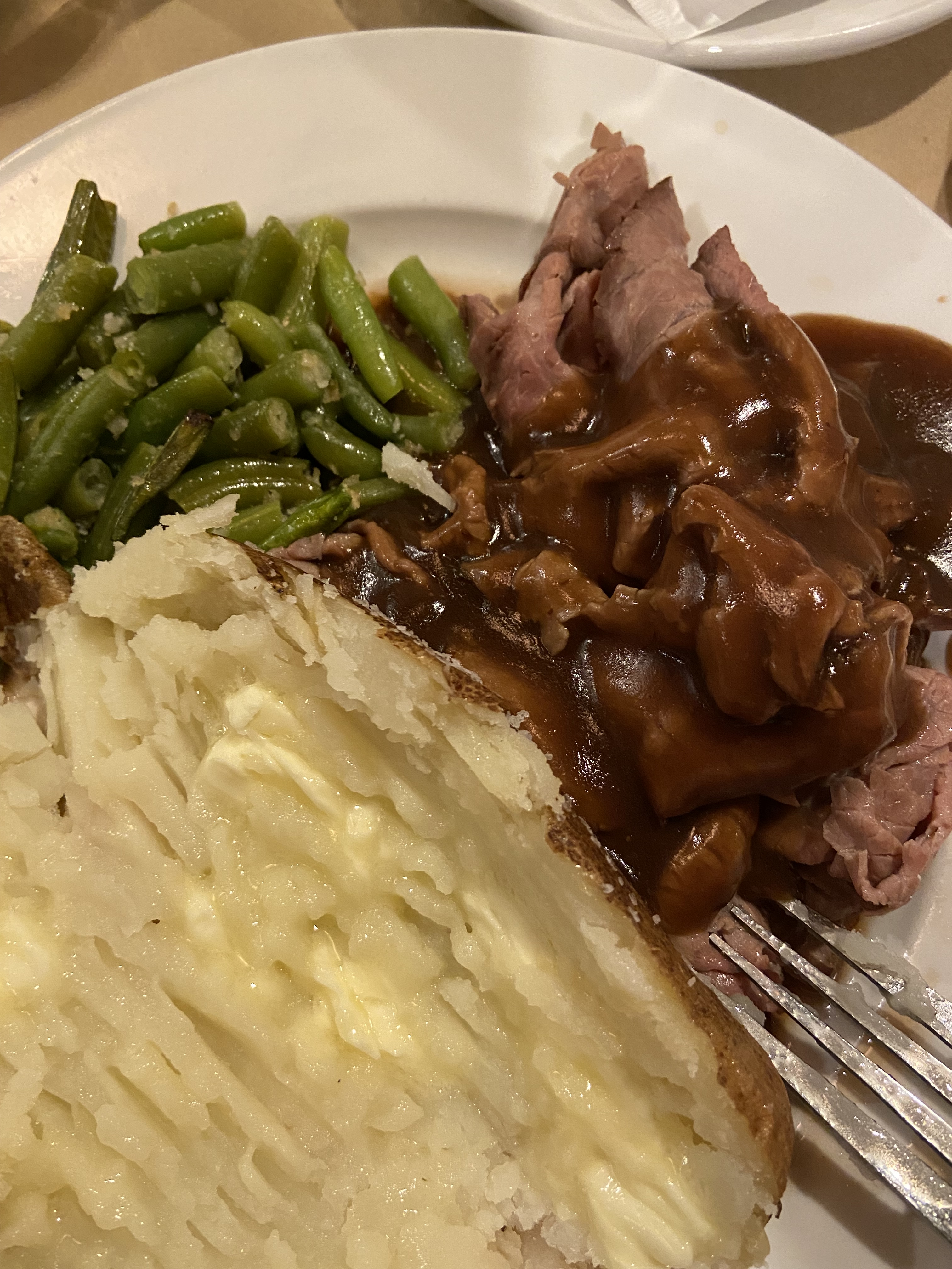 So good……beef was tender and jammed with flavor and the baked potato was perfect!!!