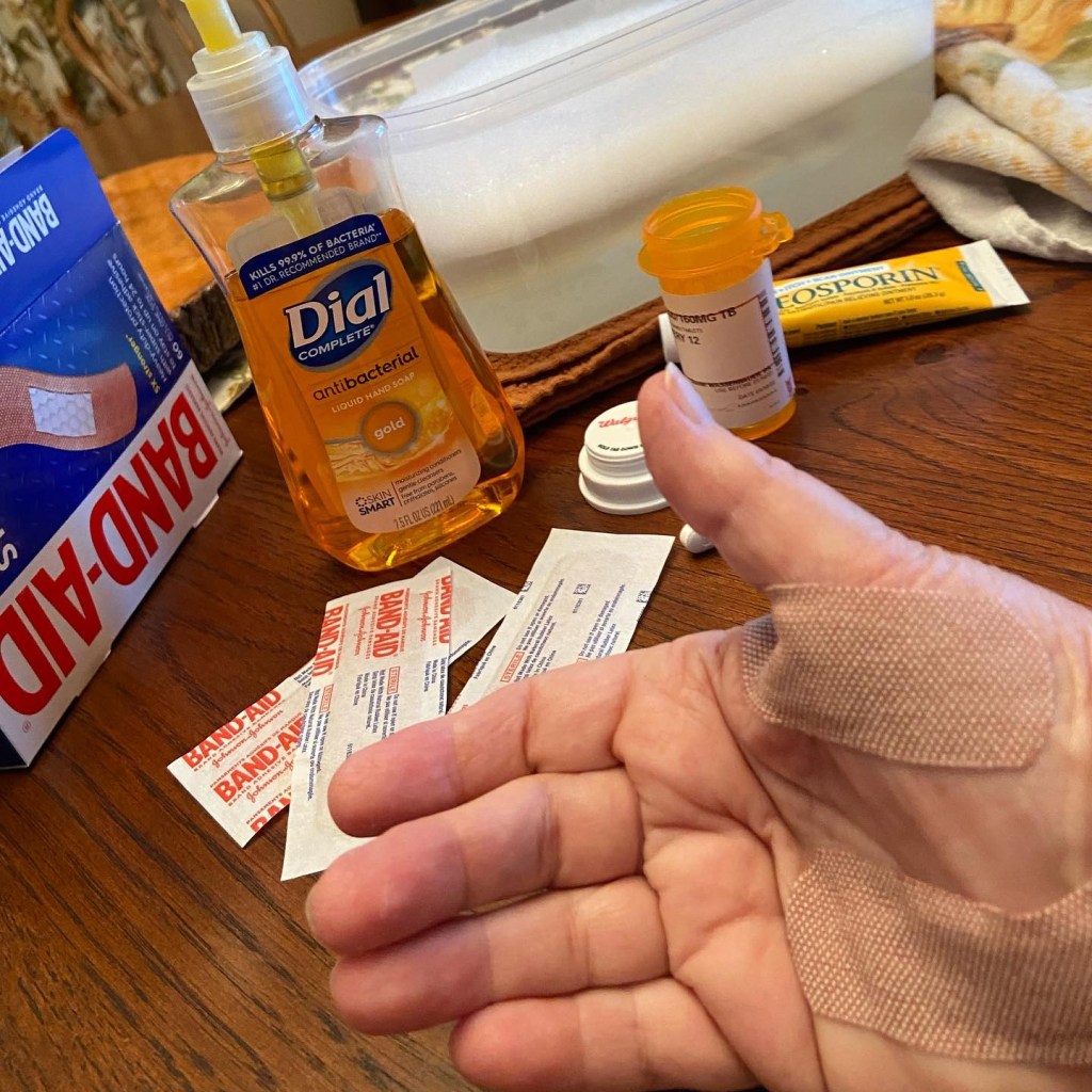 The best part??? I’ve had two nights where I was not jolted awake with searing, burning, numbness and extreme pain in my right hand and arm!!! And…..I can bend my thumb – not totally, yet, because of the slight swelling, but it was totally locked before the surgery and very painful. Good bye carpal tunnel and trigger thumb!!! I can’t say as I will miss you……good riddance, in fact!!!