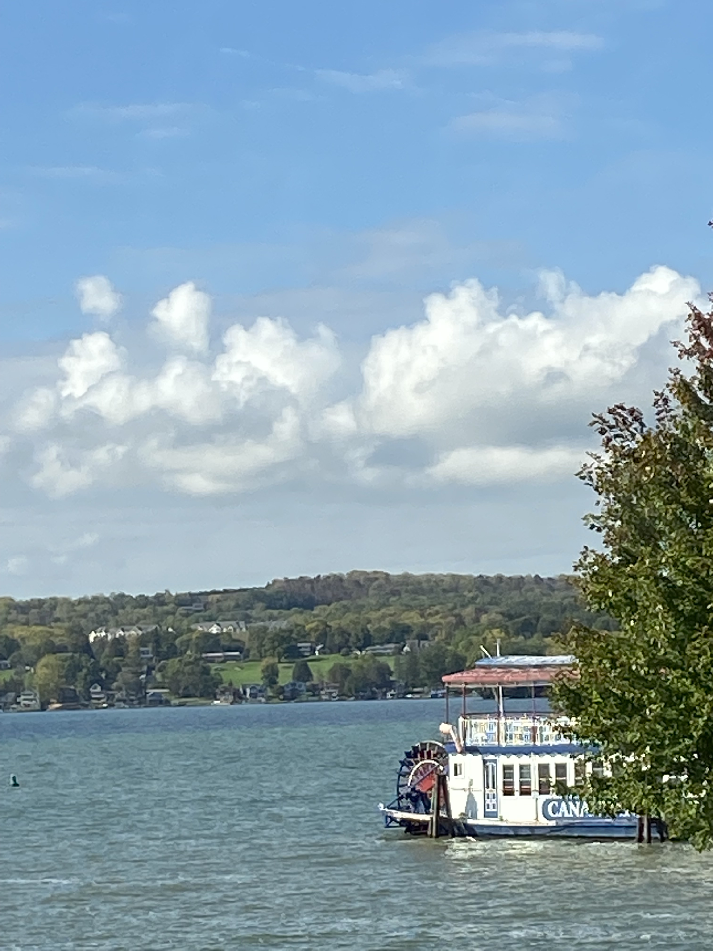 I took a day trip with the Busy Buddies – a travel group I belong to. We took a bus to Canandaigua Lake in the Finger Lakes, visited two wineries, and took a riverboat cruise on the lake. It was a perfect day for it and we all had a great time! There were 43 of us on the tour.