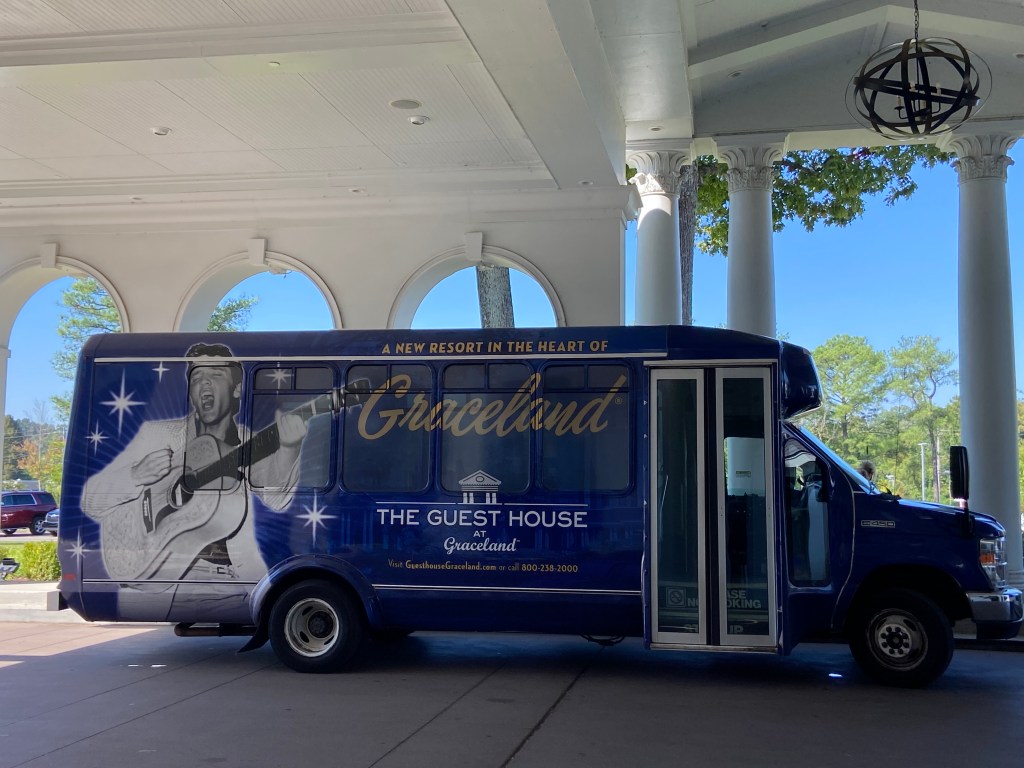 I was picked up at the airport by the Guest House shuttle with Elvis on the side and his music playing loud and proud all the way to the hotel!