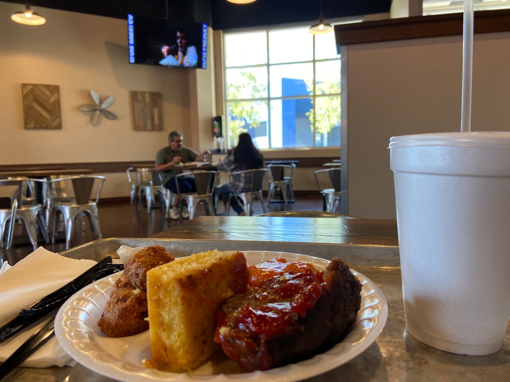 I wanted to get lunch at Gladys’ Diner in the complex, but that restaurant was closed for the season – the only one open at the time I was there was Vernon’s Smokehouse, so I gave it a try! I had a delicious meal of meatloaf, sweet potatoes, corn bread, hush puppies, and sweet tea.