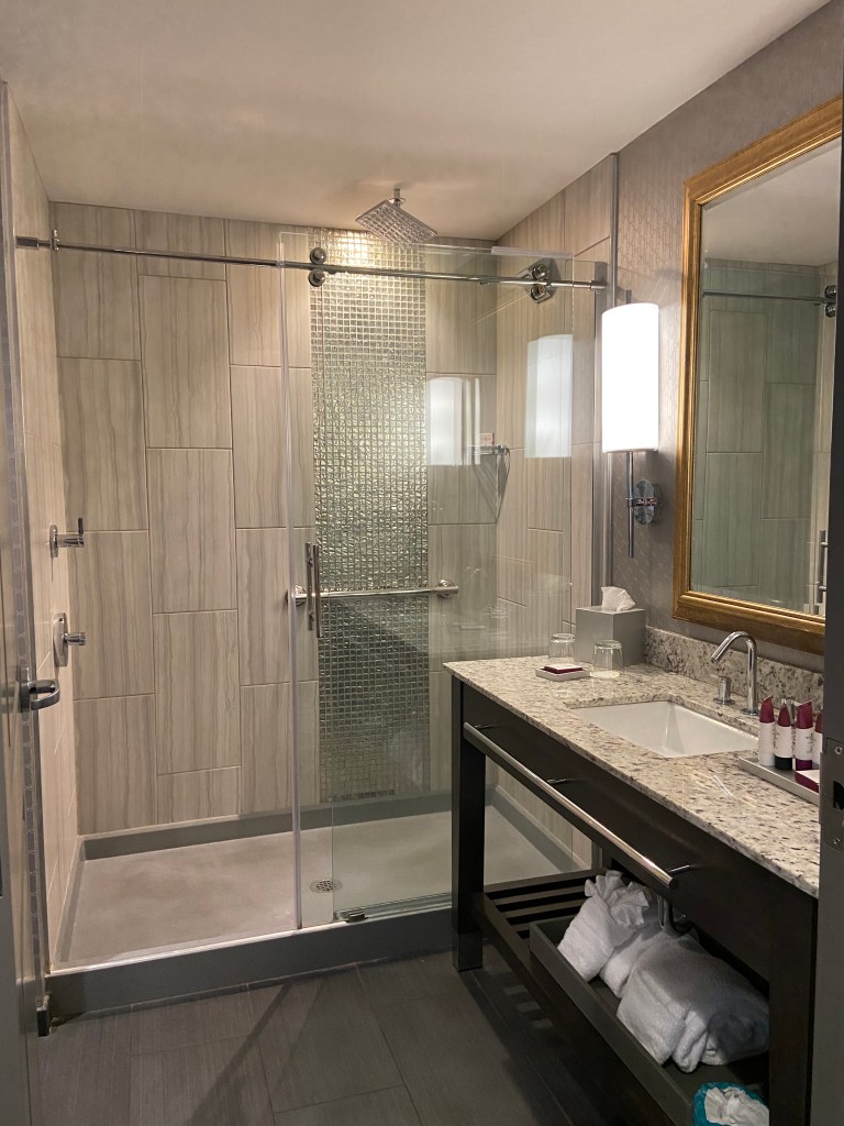 The shower was amazing…..it had a rain shower head coming down from the ceiling and another shower head directing water from the wall….loved it!!!