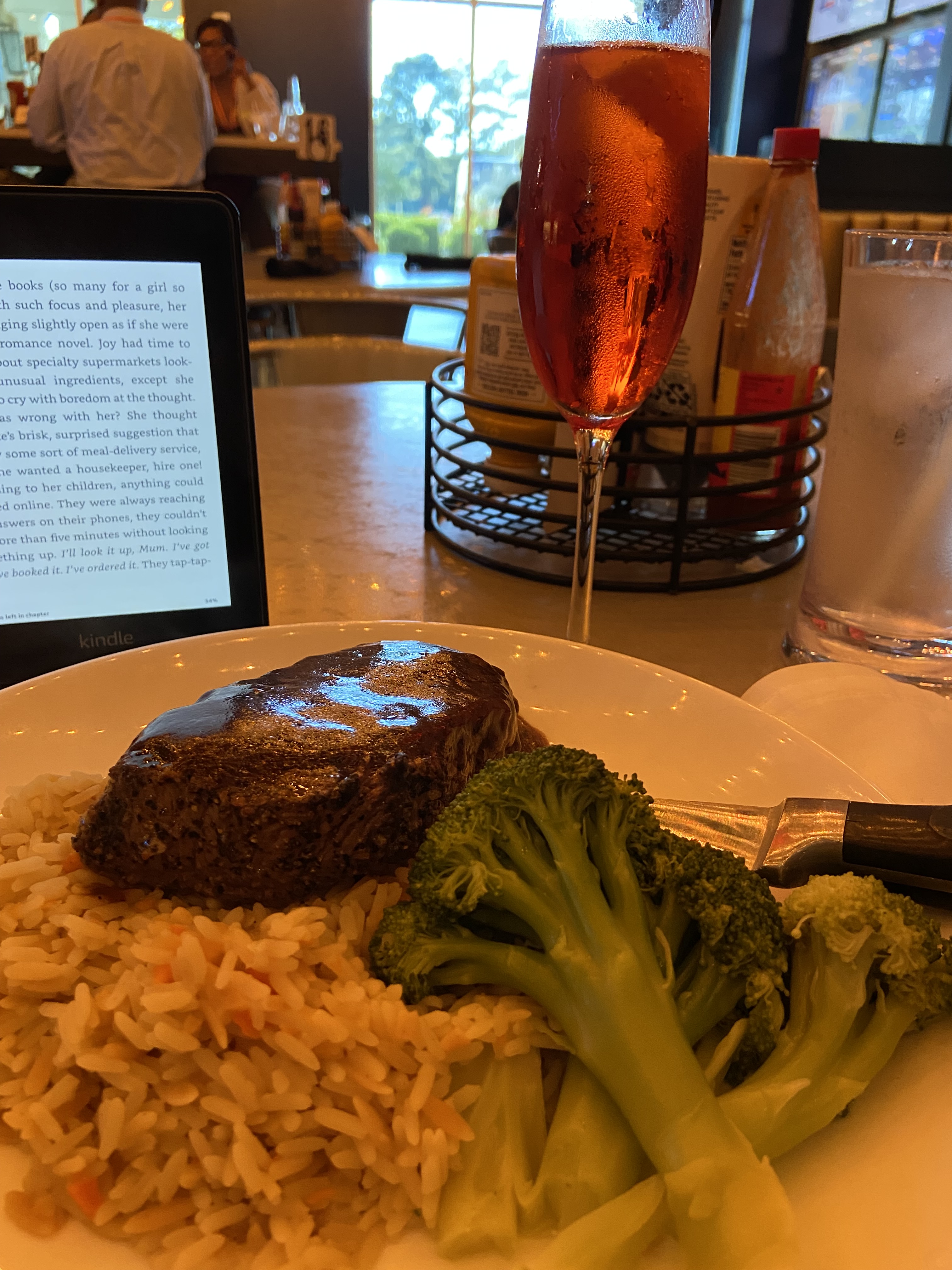 On my first night, I was tired and didn’t want to venture out too far for dinner, so I ate at EP’s Bar & Grill just off the lobby of the hotel. I had an amazing sirloin steak – done PERFECTLY – with demi-glaze, rice pilaf, and broccoli.