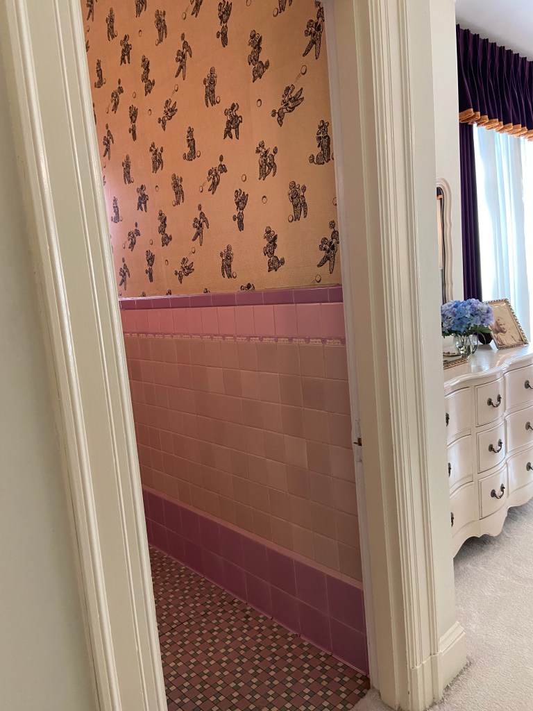 Beyond the living room is Elvis’ mother, Gladys’ bedroom and en-suite – kept just as she had it in the colors she chose for it.