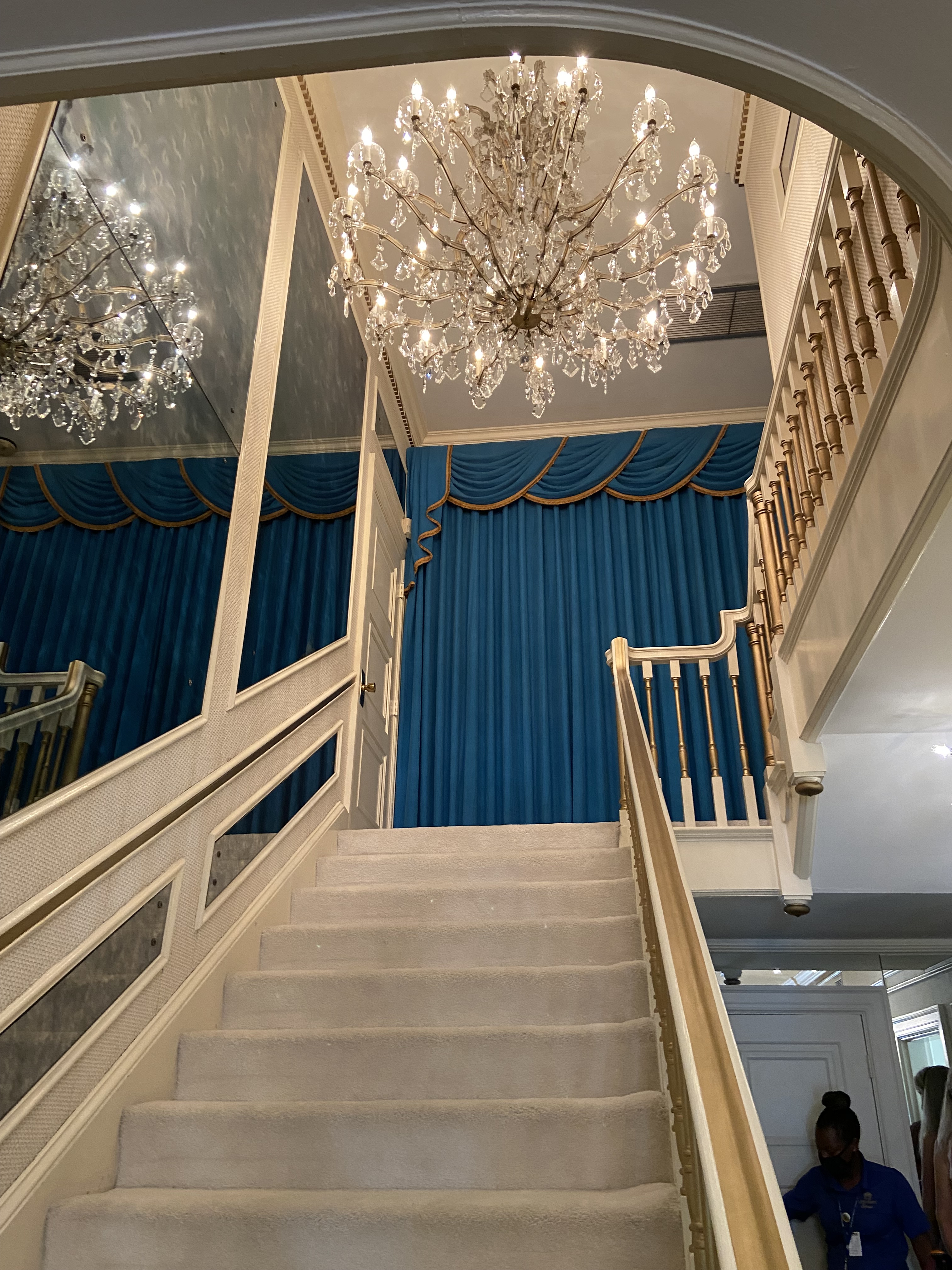 Then it was time for my group to go through the mansion — they only let people go through in small groups to ensure social distancing and the Ultimate VIP groups were even smaller so the guide could have more personalized discussions as we went through – I think there were about 9 or 10 in our group. We all got a small device that we connected to ear phones so the guide could talk in a normal voice and we could all hear her no matter how far we stood away from her – it was nice – they just hung around our necks and we hardly knew they were there – the self guided groups had big iPads they had to carry to hear the pre-recorded messages at each display.