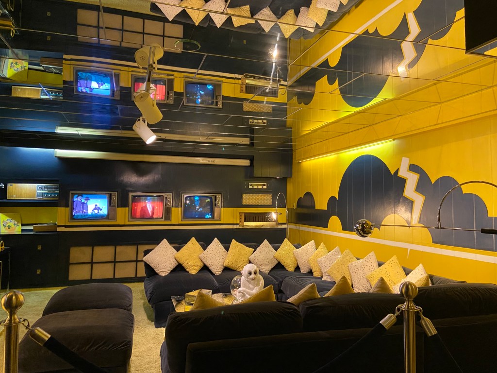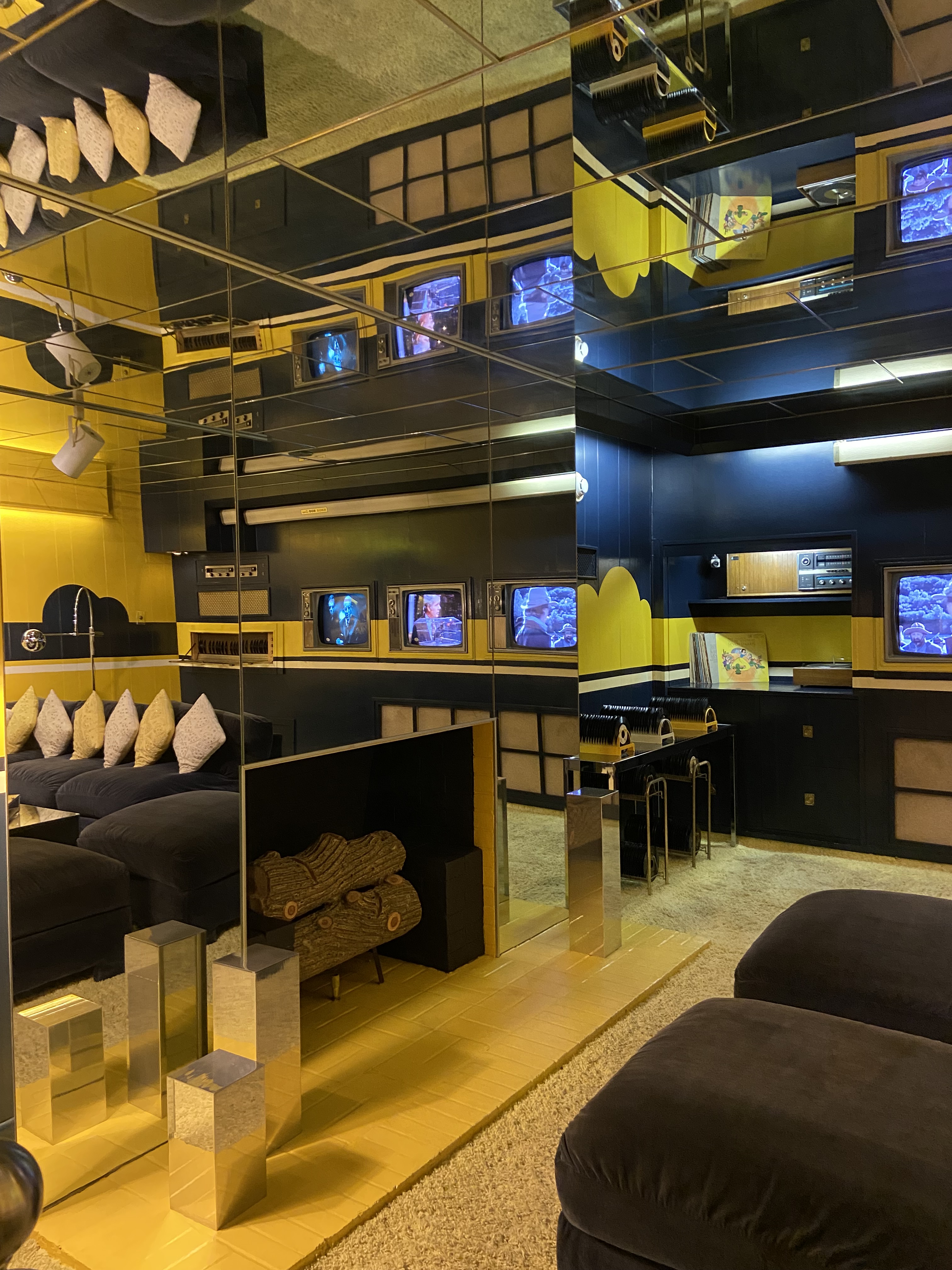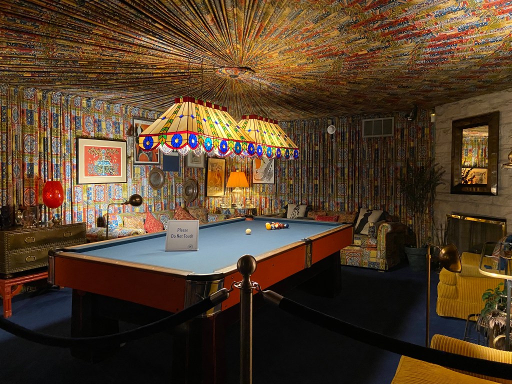 The pool room – that is fabric pleated on the walls and ceiling and the same fabric is on some of the furnishings.