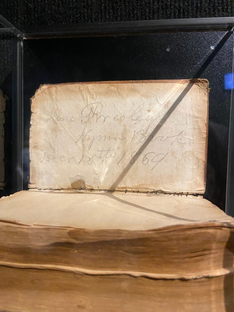 A hymnal from 1869 that originally belonged to a distant relative that Elvis used.