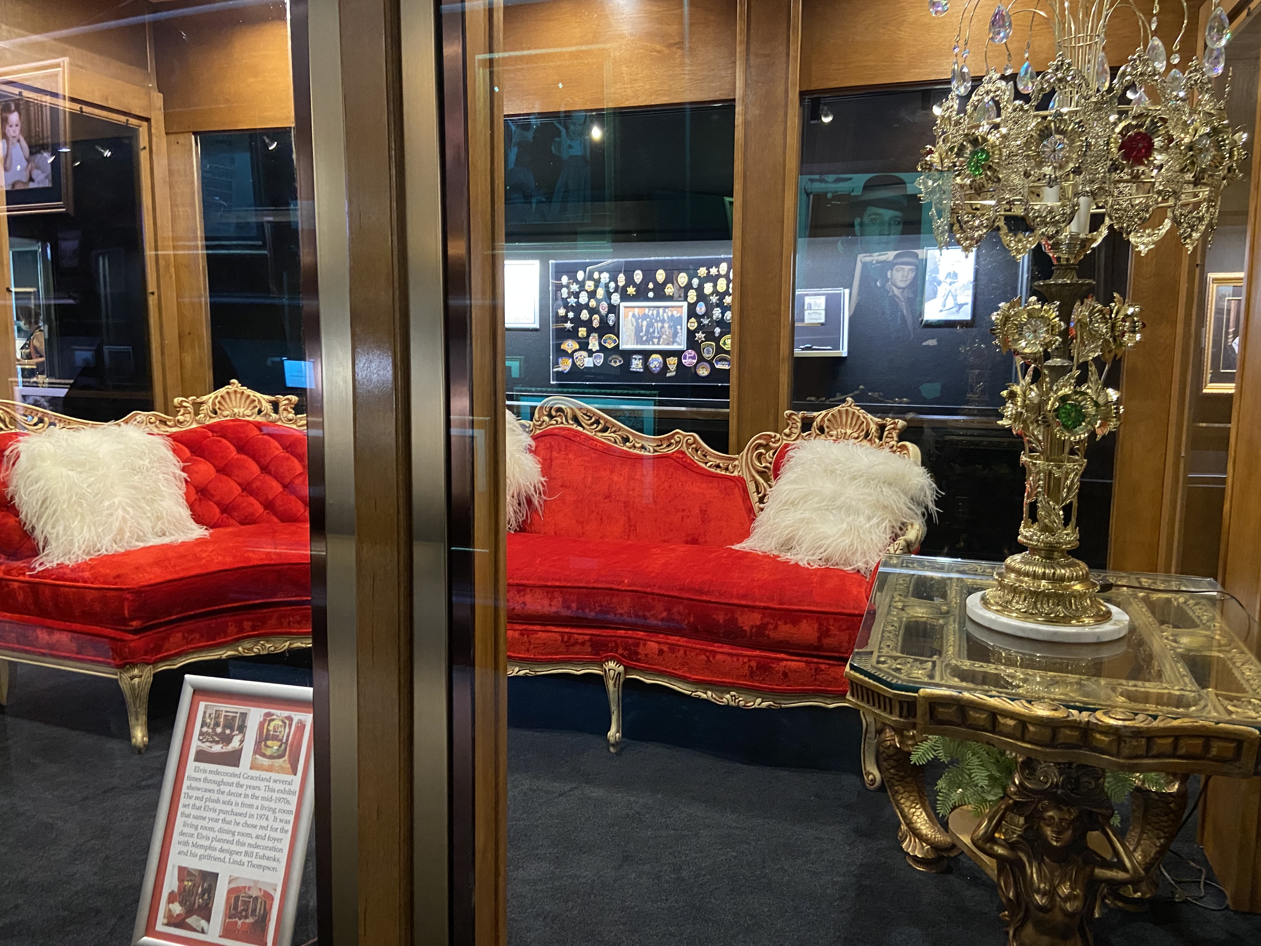 The dining room – Elvis sat at the head of the table (furthest from the door) and had a button under the table that he could summon the staff – he didn’t like it if he had to yell for someone – he thought it was bad manners.