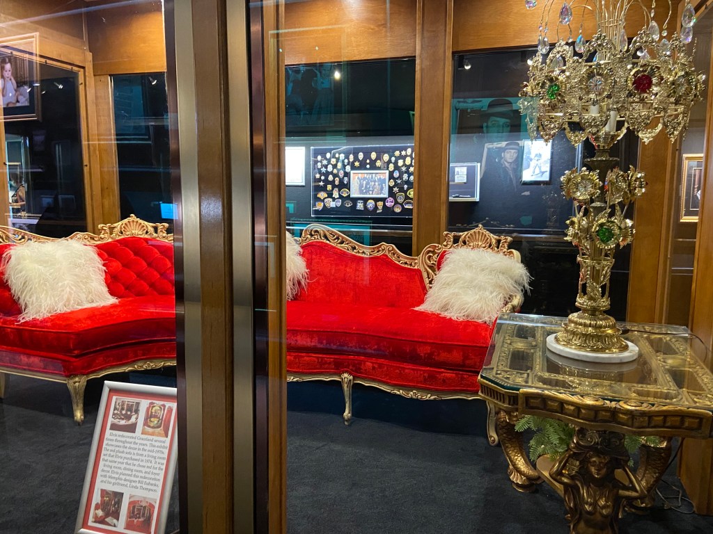 this is the red couch I told you about earlier in this post – it was in the living room when Linda Thompson redecorated the mansion.