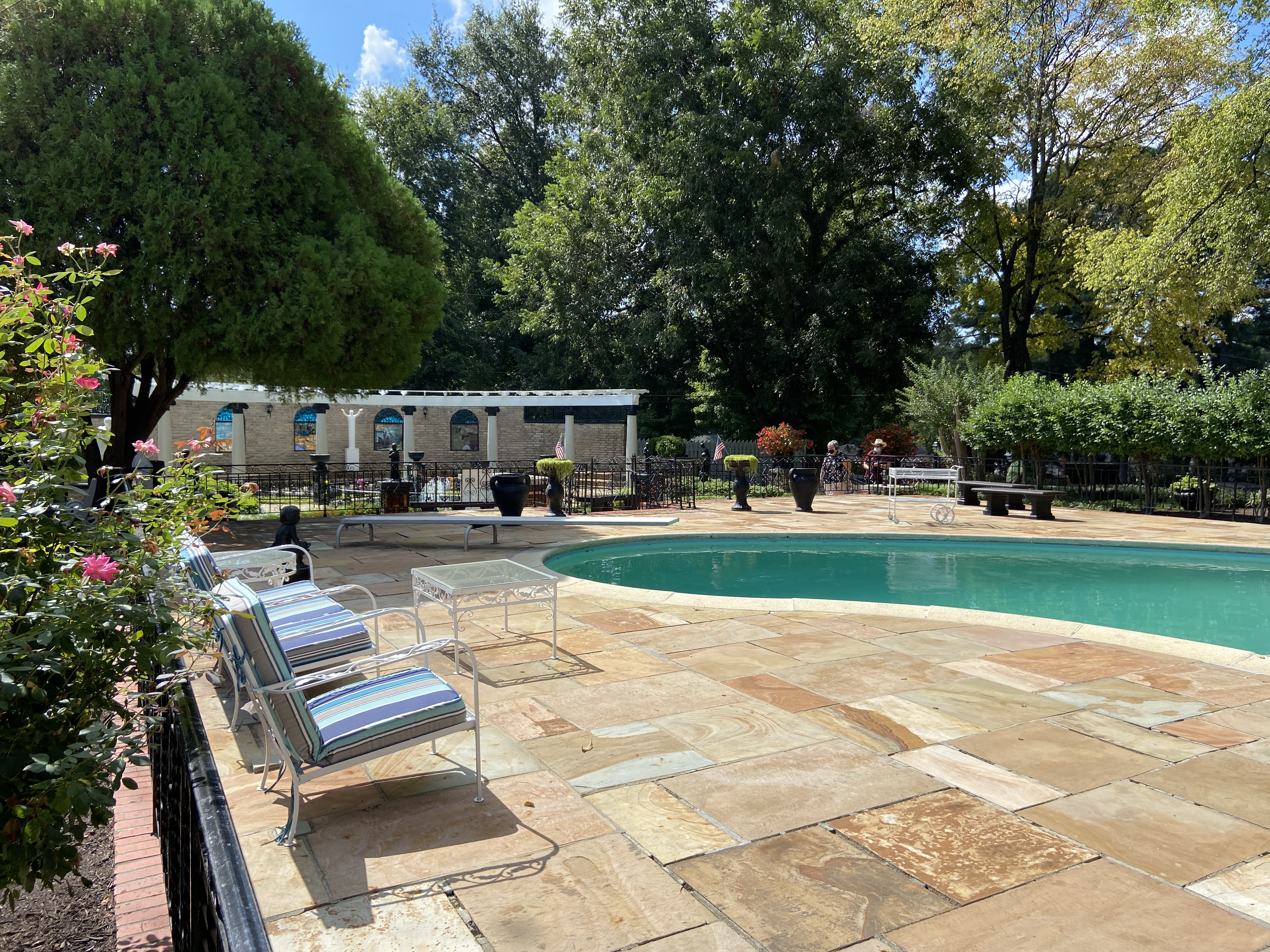 The Guest House is a large luxury hotel — very nice!!! It is designed to be inviting and comfortable – it has a big front porch with chairs and gardens. The courtyard in the back has the same large porch with chairs and a pool. Lots of great places to sit outside and enjoy the the fresh air.