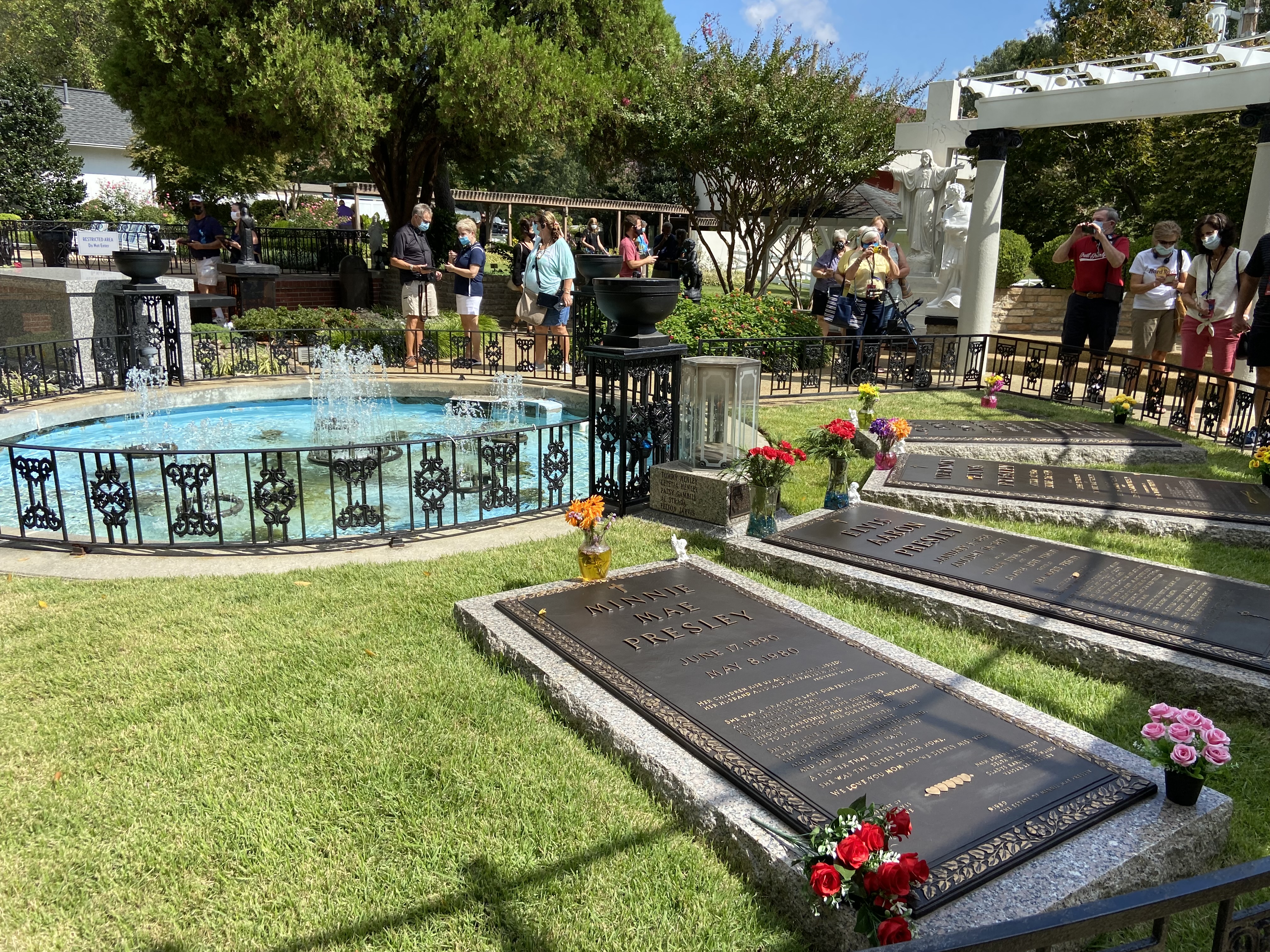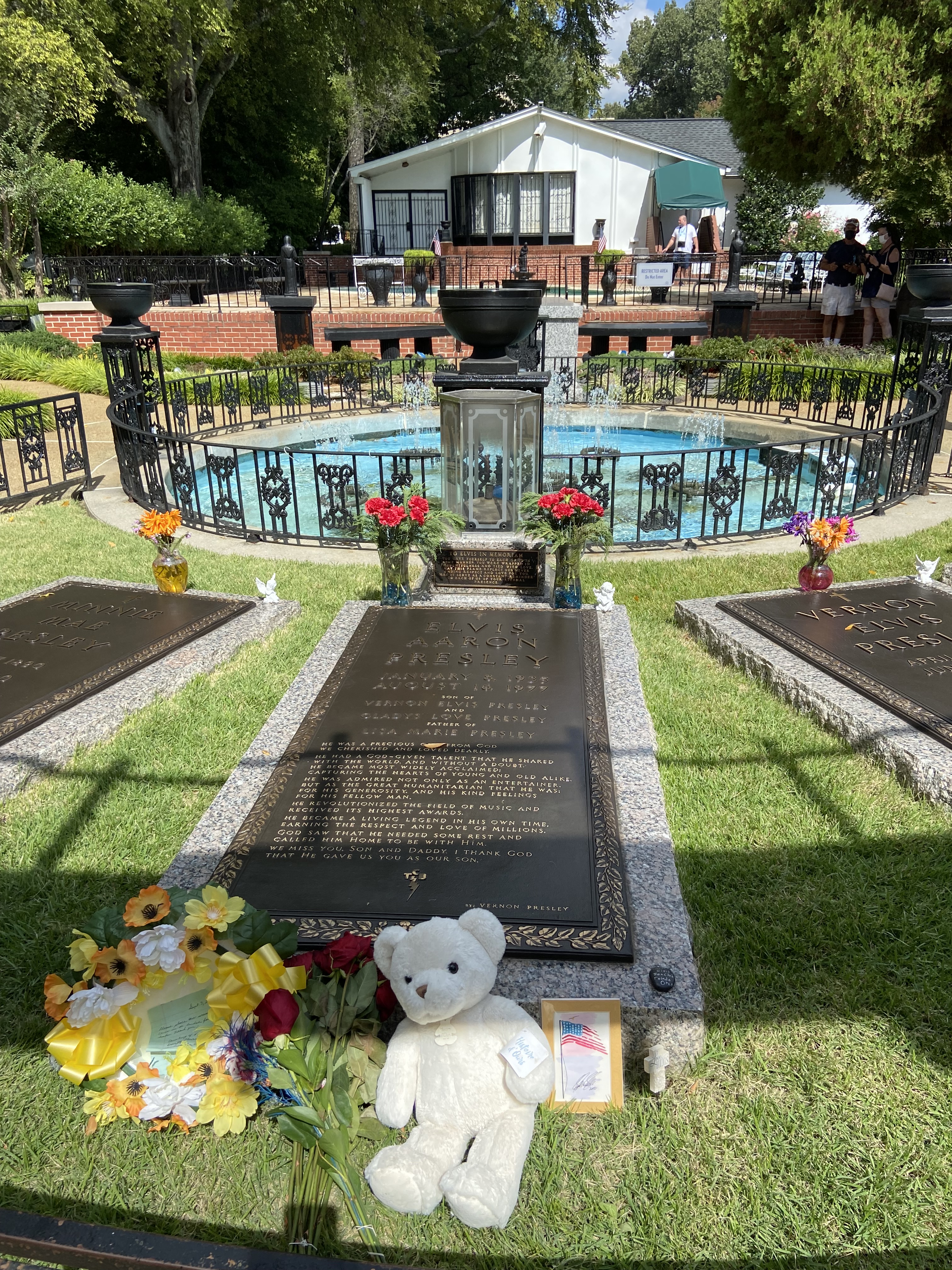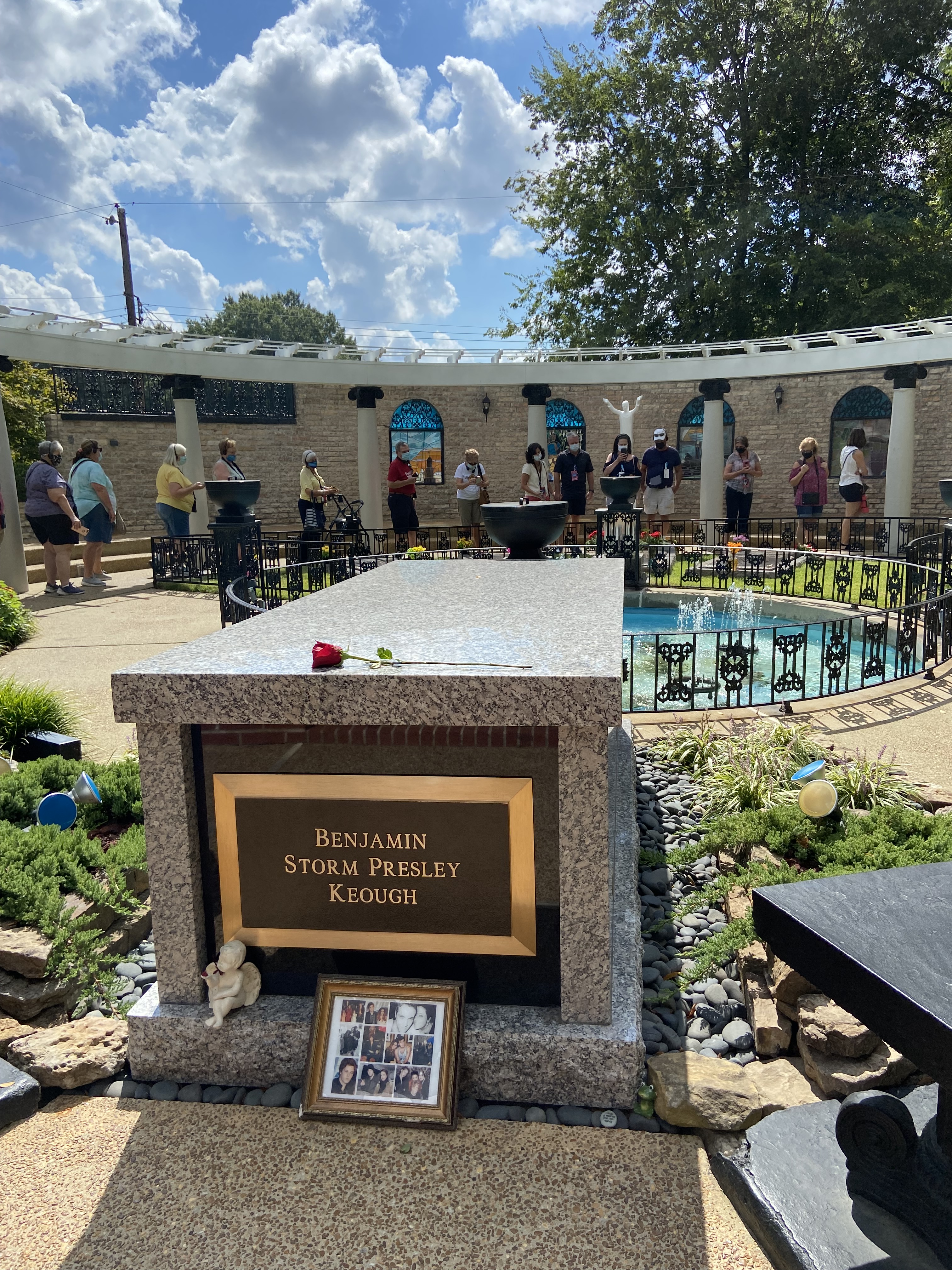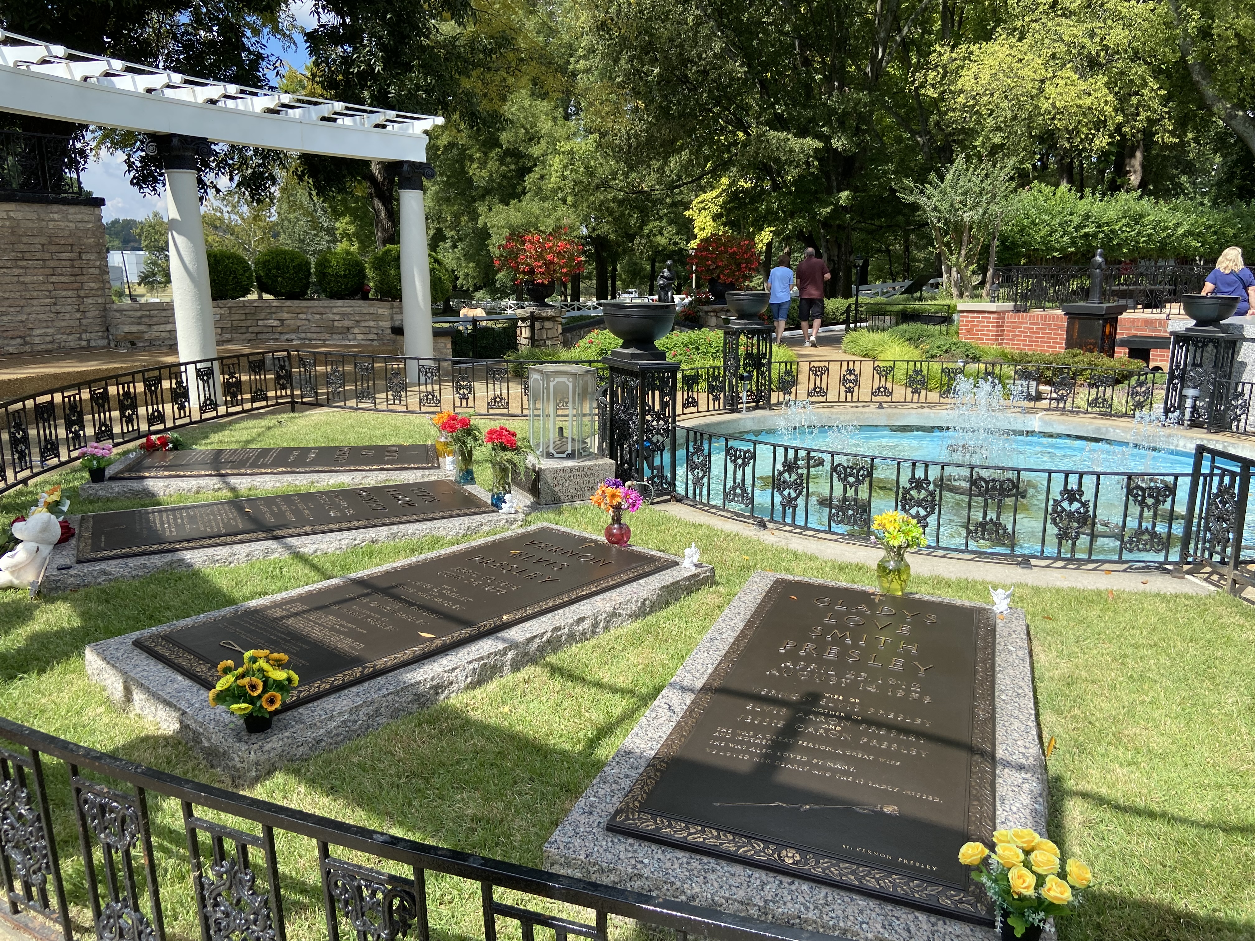 And……here’s where my promise to my 21 year old self was fulfilled……the Meditation Garden at Graceland where Elvis, his mother Gladys, his father Vernon, his grandmother Minnie Mae, and his grandson – Lisa Marie’s son Benjamin are all buried and there is also a memorial marker for his still born twin, Jesse Garon.
