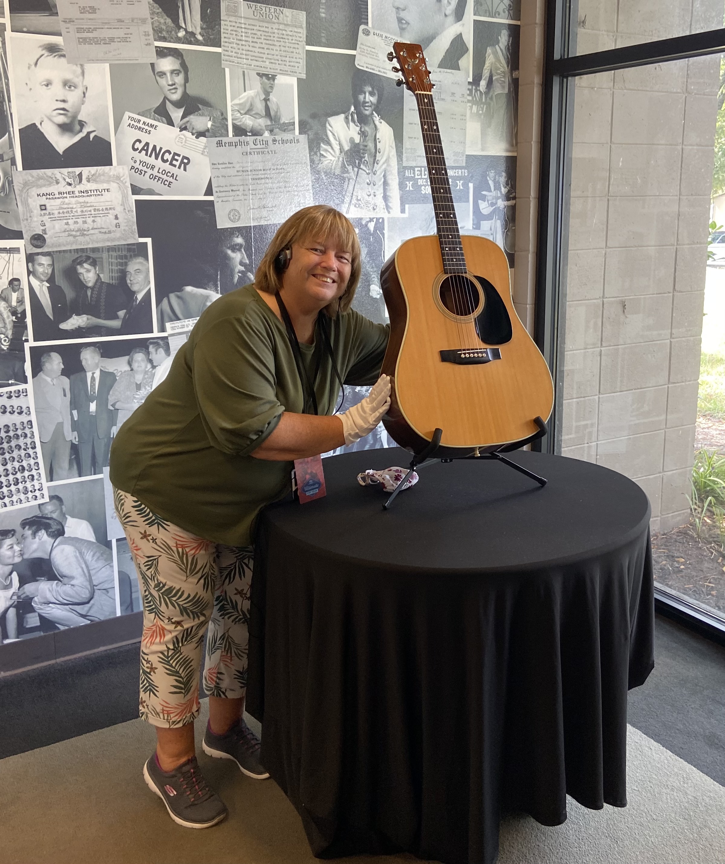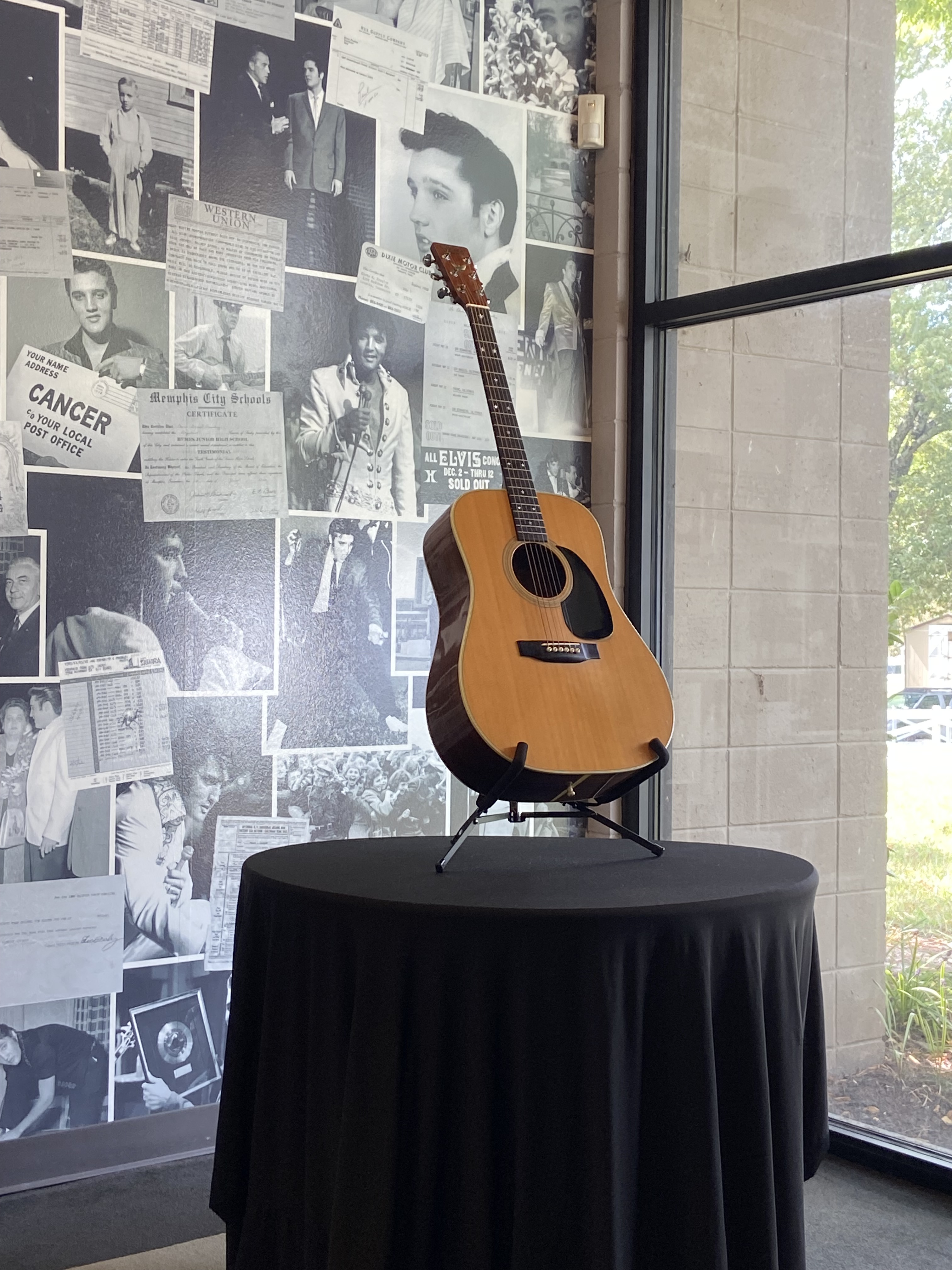This is one of Elvis’ personal guitars……we were allowed to touch it (with white cotton gloves) and have our photo taken with it.