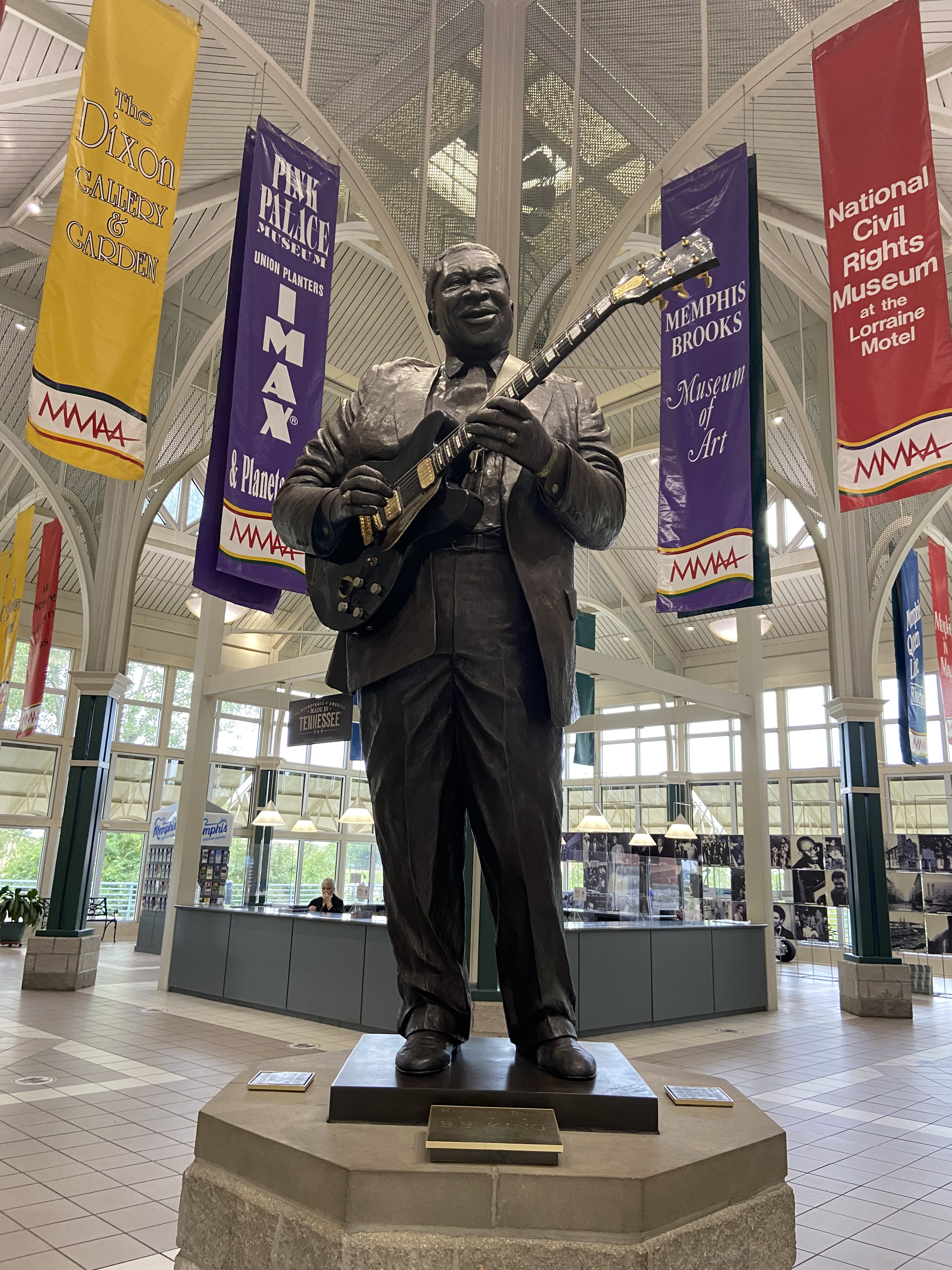 Our first stop on the tour was the Memphis Welcome Center for photo ops with statues of two of the Memphis greats – Elvis and BB King:
