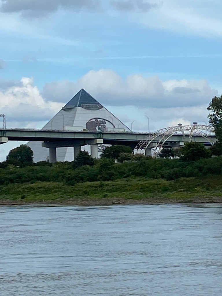 Then, I went to a few gift shops to just look around and went to the trolley station. I was told that the Bass Pro Shop Pyramid was something I shouldn’t miss out on seeing. My first thought was – WHY??? I wasn’t interested in anything a Bass Pro Shop had to offer. But – multiple people told me to go see it, so I did! It was on the River Front, so I had to take the trolley — it is a wonderful public transportation around downtown with three routes and only $1 per ride or you can get a day pass for $2! Can’t beat that! And, it gave me yet another Memphis experience!