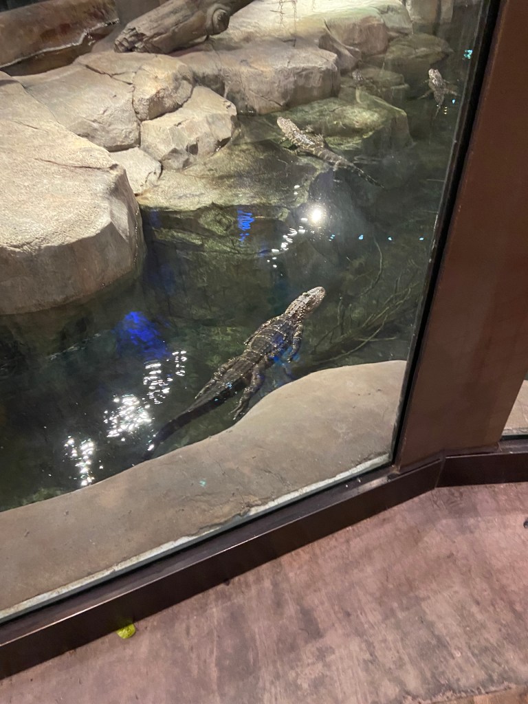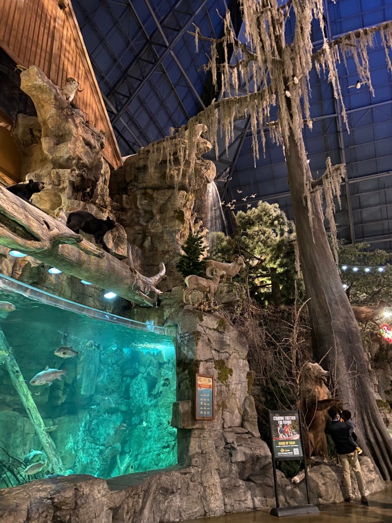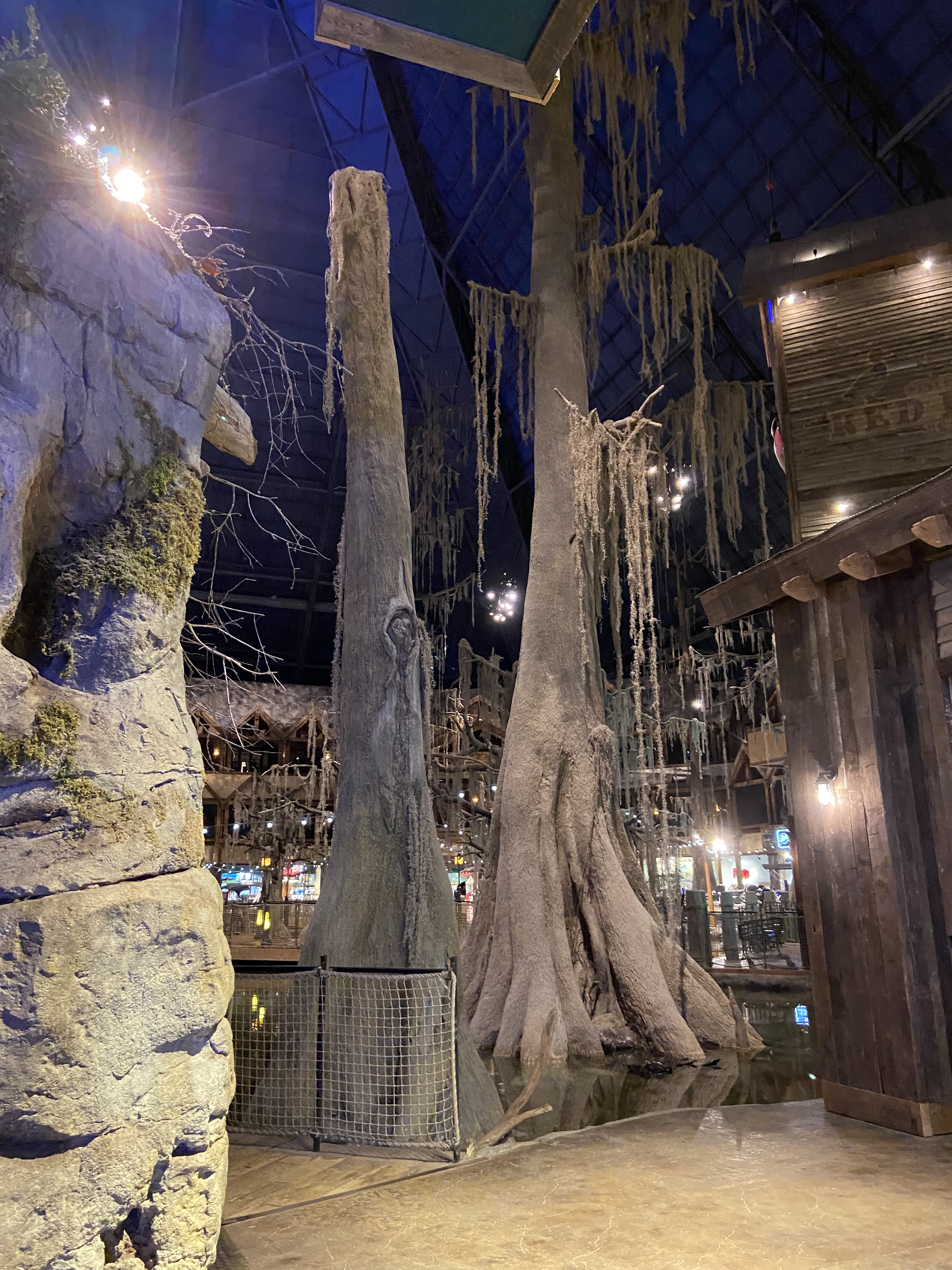 Apparently, this was built in 1991 as a huge 20,142 seat arena – it is 321 feet tall (about 32 stories) and has base sides of 591 feet. It is the 10th tallest pyramid in the world!!! It was originally used as a sports and entertainment venue, but hadn’t been regularly used since 2004. In 2015, the Pyramid re-opened as a Bass Pro Shops “megastore”, which includes shopping, a hotel, restaurants, a bowling alley, and an archery range, with an outdoor observation deck adjacent to its apex. The hotel – Big Cyprus Lodge – boasts an indoor camping experience like being in a swamp. The decor of the entire pyramid is very swamp-like and even has live alligators swimming under the walkways. It’s all pretty incredible!