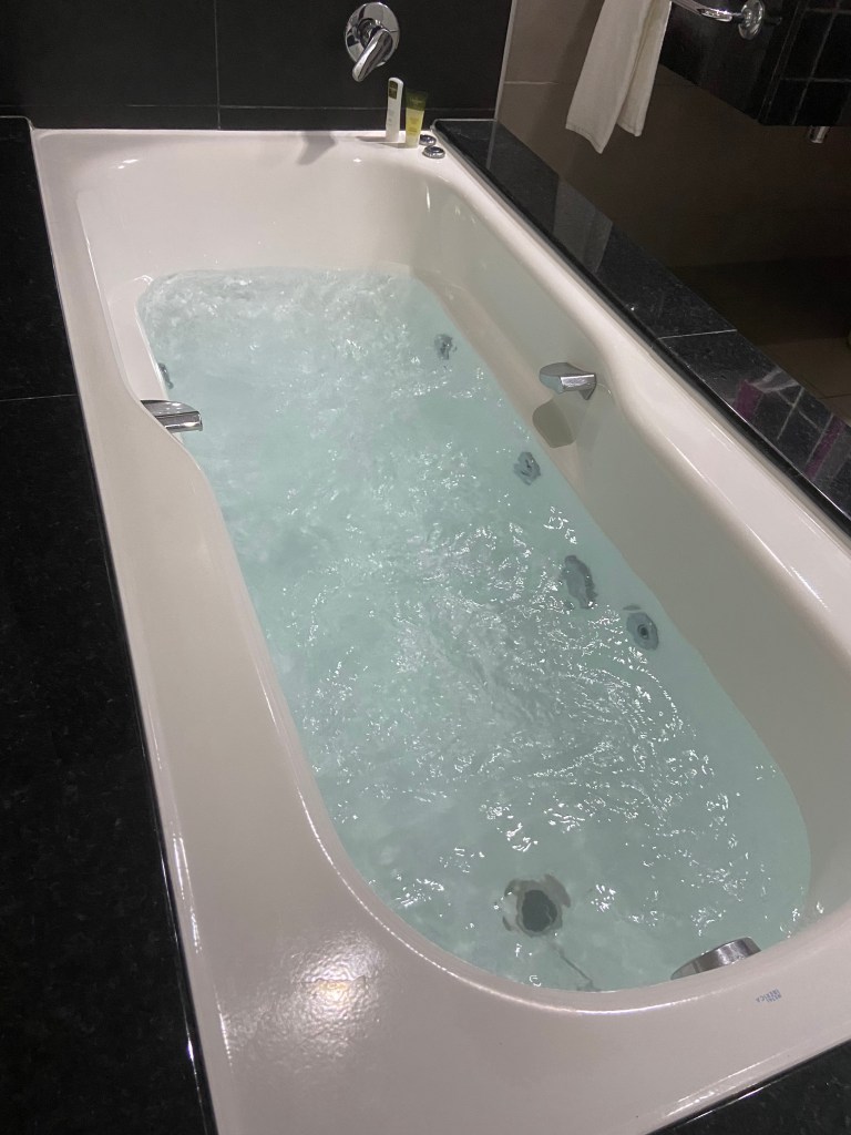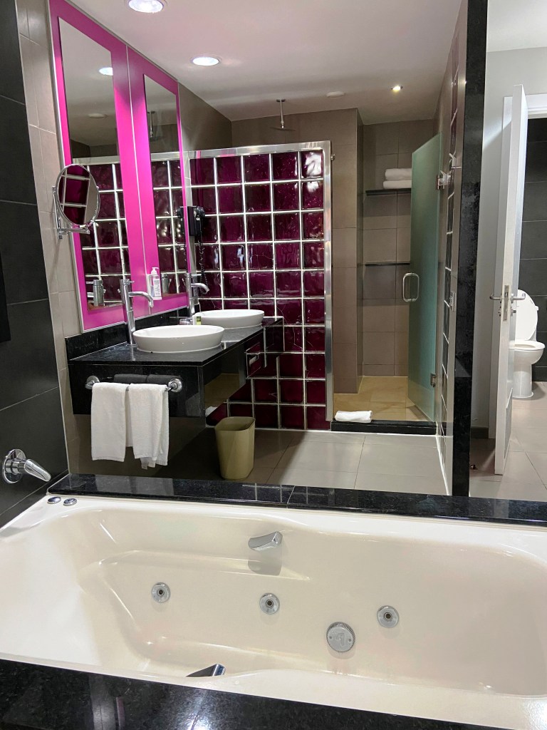 Everything in the room was PURPLE…….I was happy….and, yes…..I took advantage of that amazing huge Jacuzzi tub!!! LOL