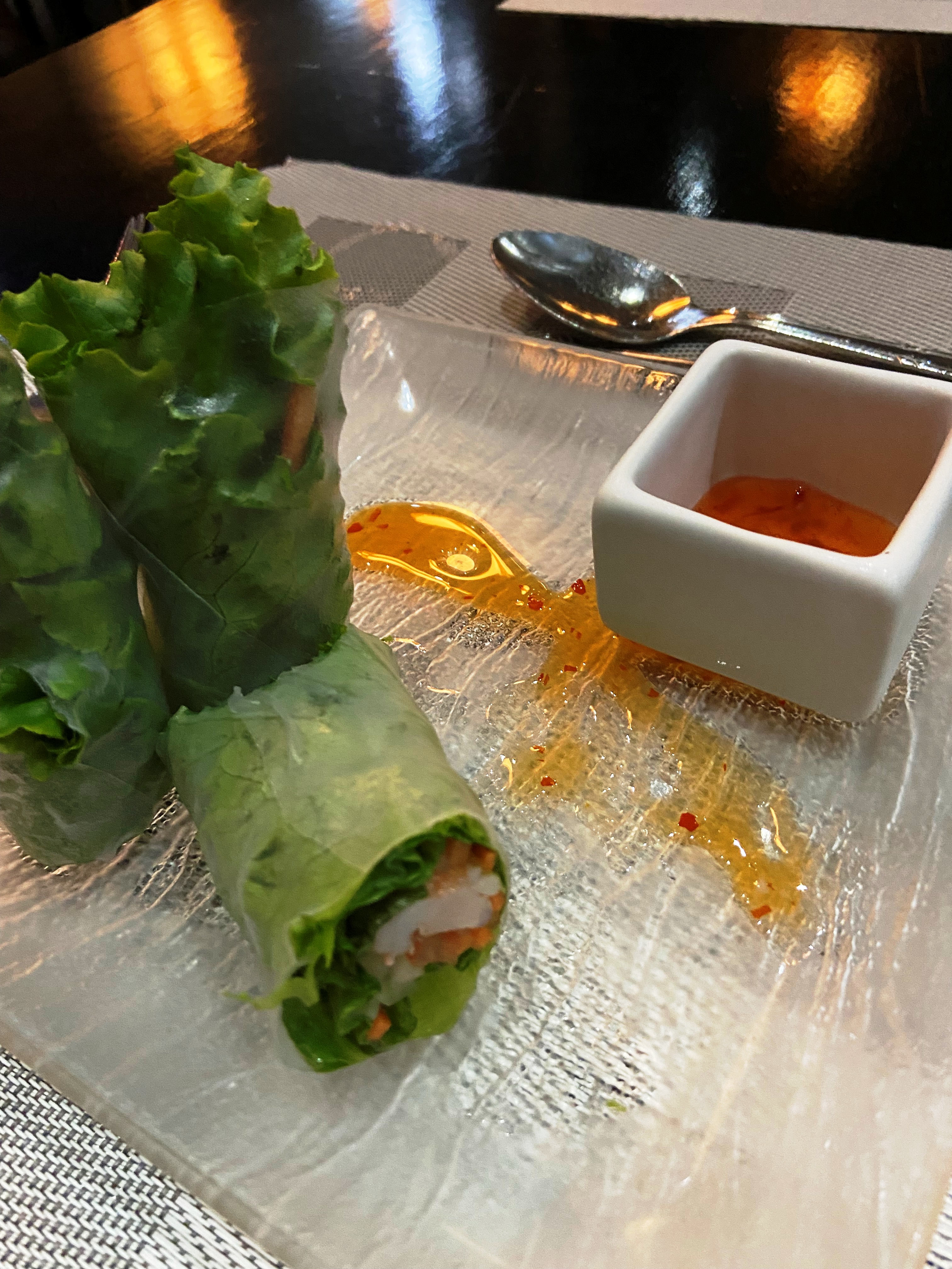 Vietnamese shrimp and veggie spring roll appetizer at the Japanese restaurant