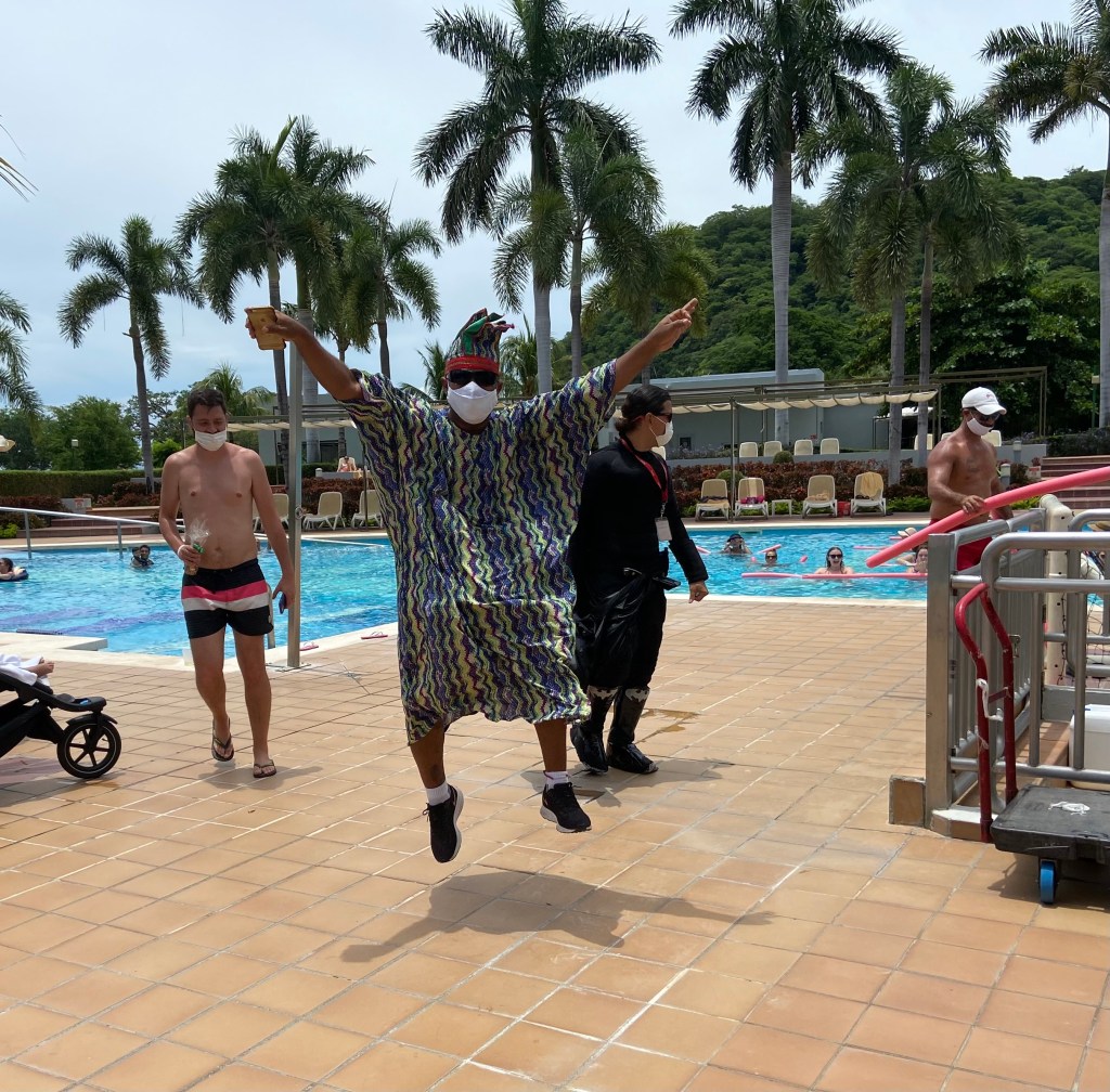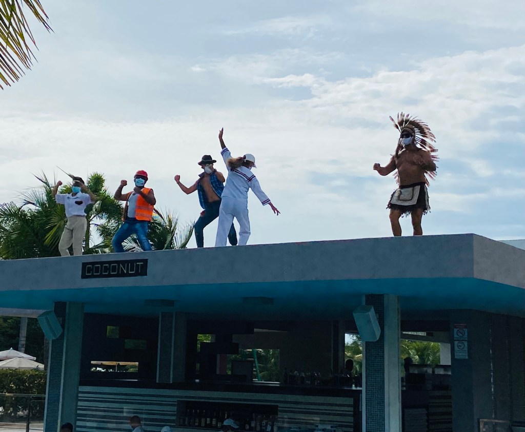 Dancing to “YMCA” while dressed like the Village People on the roof of the swim-up bar!!!