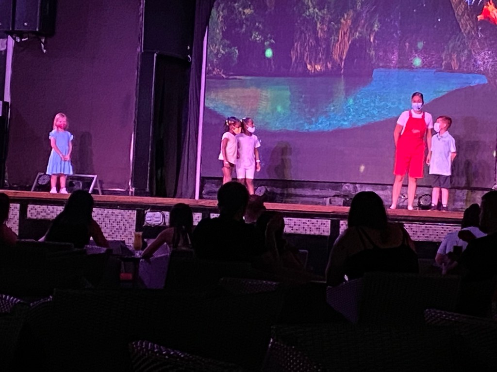 The evening entertainment was topnotch, too! I was exhausted the first night, so fell asleep before the show, but got to enjoy it the second night. After that, I did day trips that got me back late, so that ended up being the only show I saw, but it was awesome!!! There was a pre-show time to entertain the kids and get them involved, a game show-type thing for the adults, an opening band that was incredible, and then the main show — an international themed musical review.