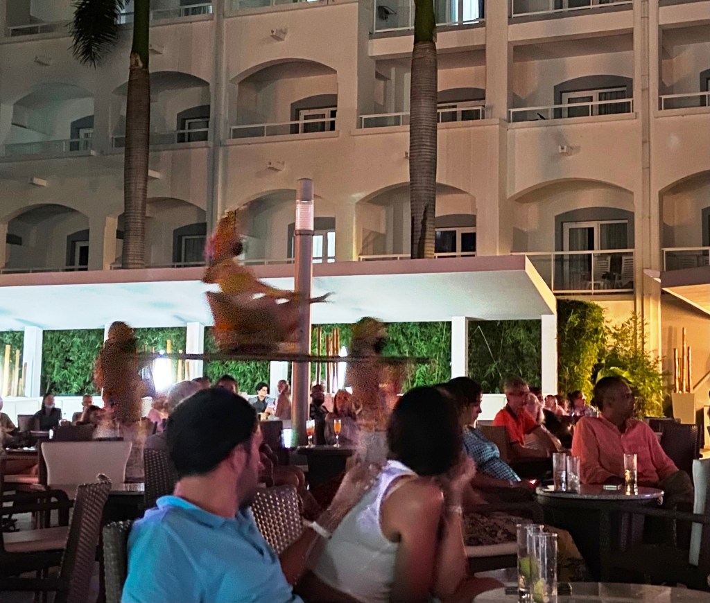 Here, these entertainers are dancing to YMCA while dressed like the Village People on the roof of one of the pool side bars. What fun!!!